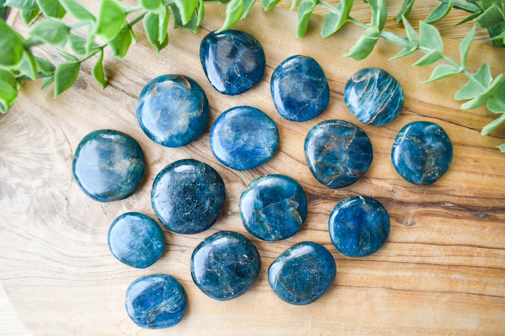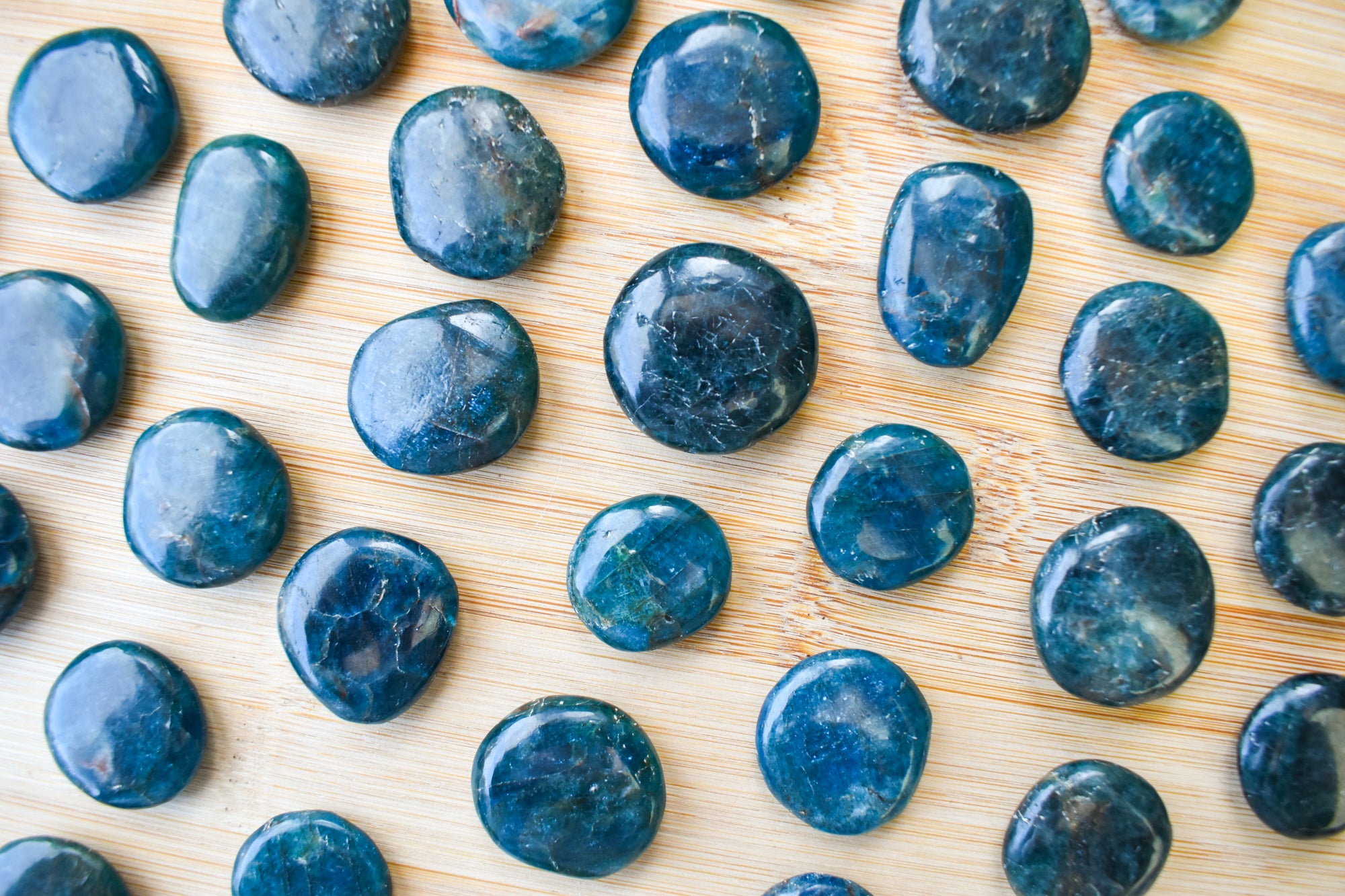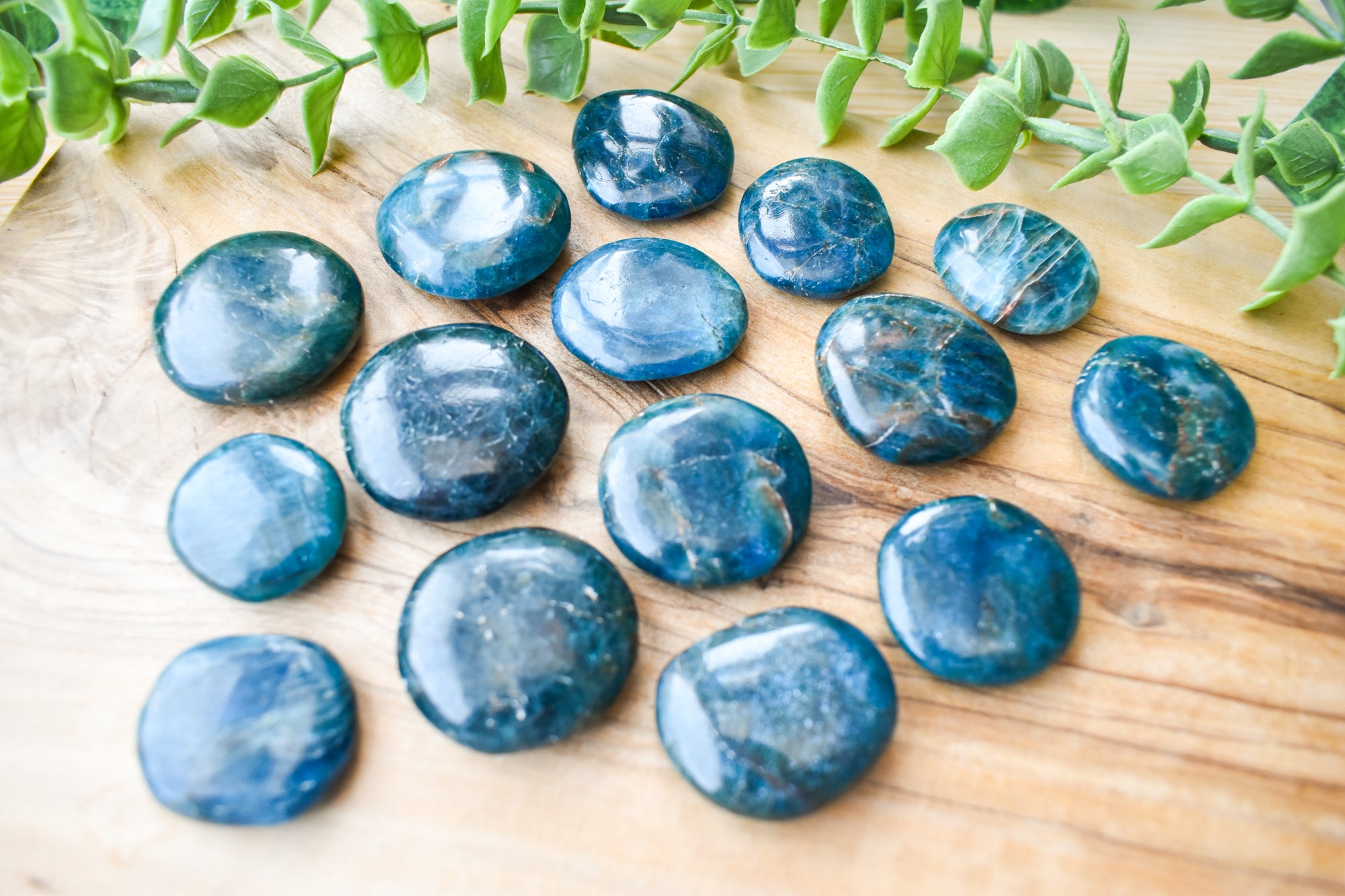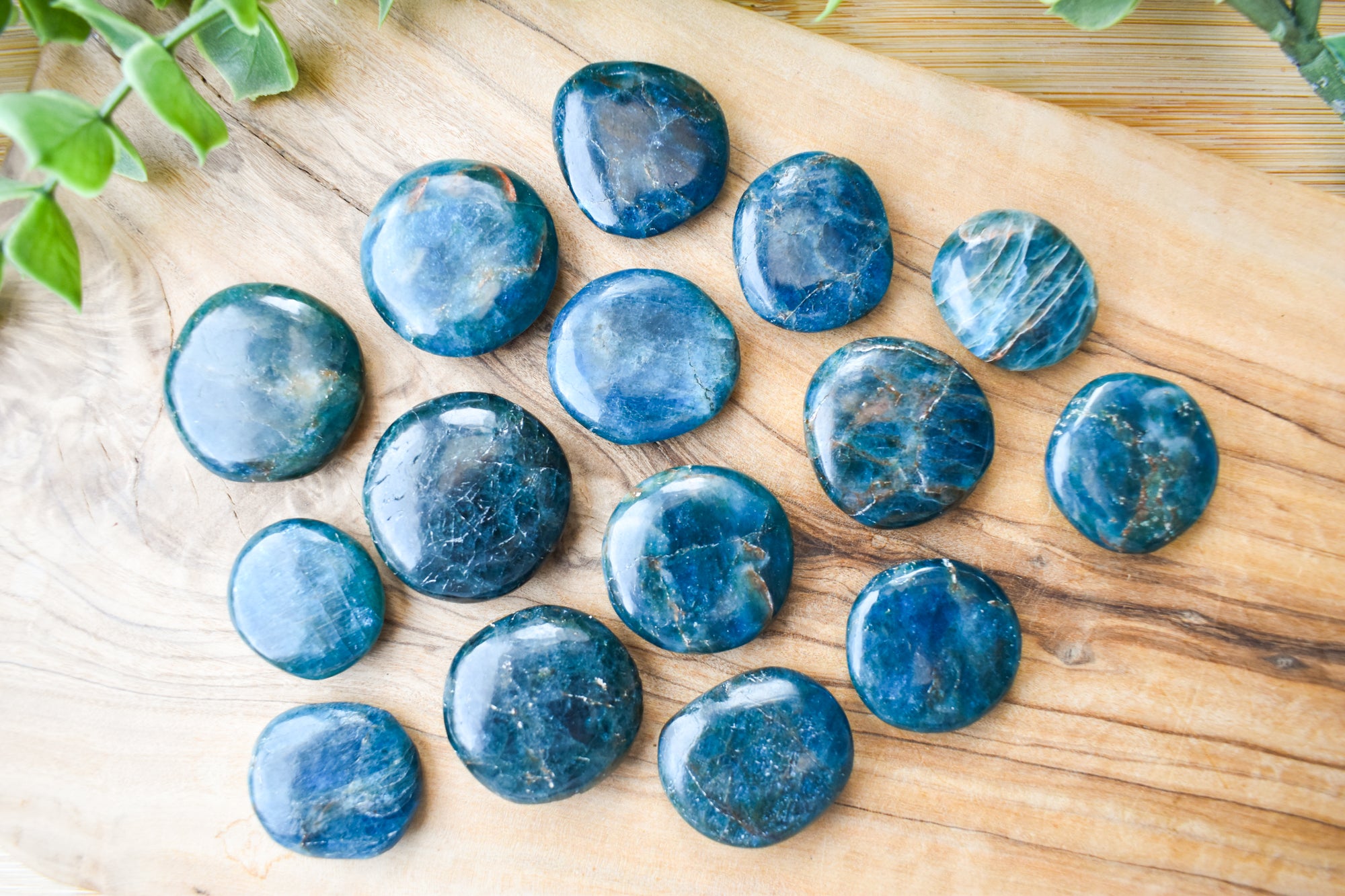 These are vibrant Blue Apatite flat stones, featuring striking ocean-blue to deep teal tones with natural translucency and subtle marbling flowing through each piece. Smoothly polished into comforting flat stones, they fit beautifully in the palm, making them perfect for carrying with you, placing on your desk, or adding to your sacred space. Every stone is completely unique, showcasing Blue Apatite’s refreshing colour and energising, crystal-clear presence. Ideal for your collection or as a meaningful gift filled with motivating, expressive energy.