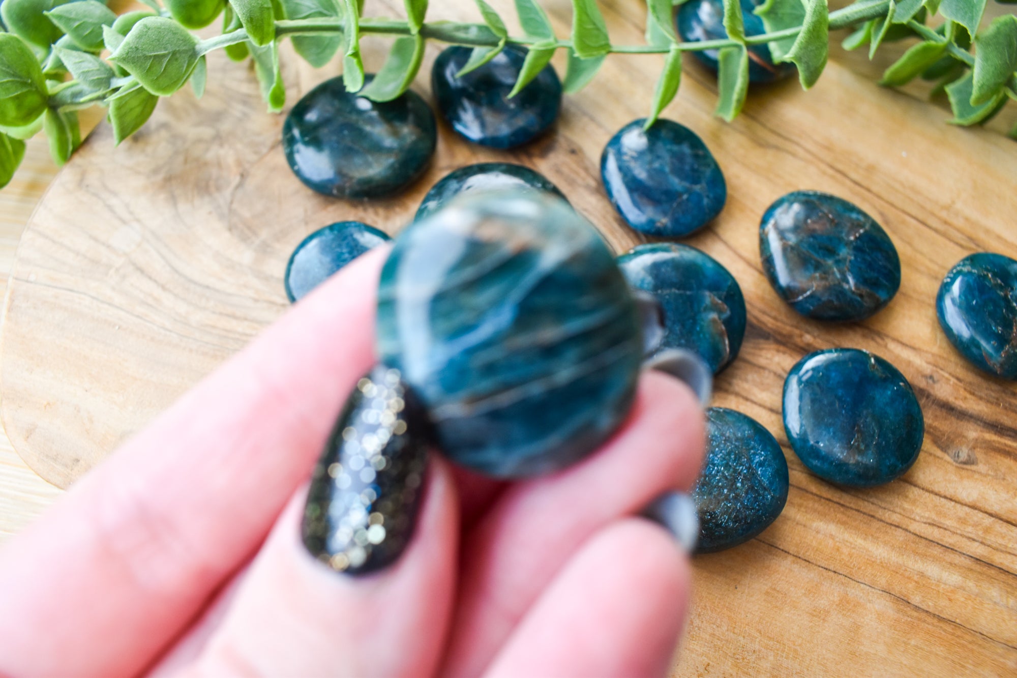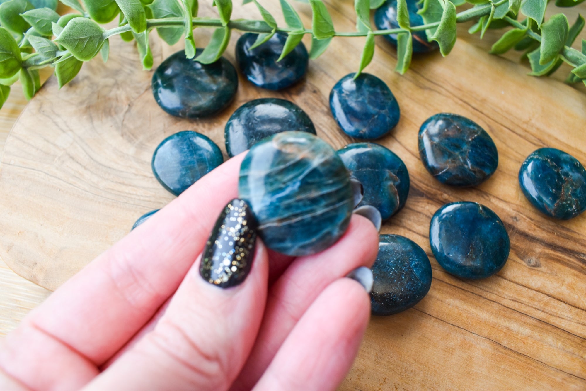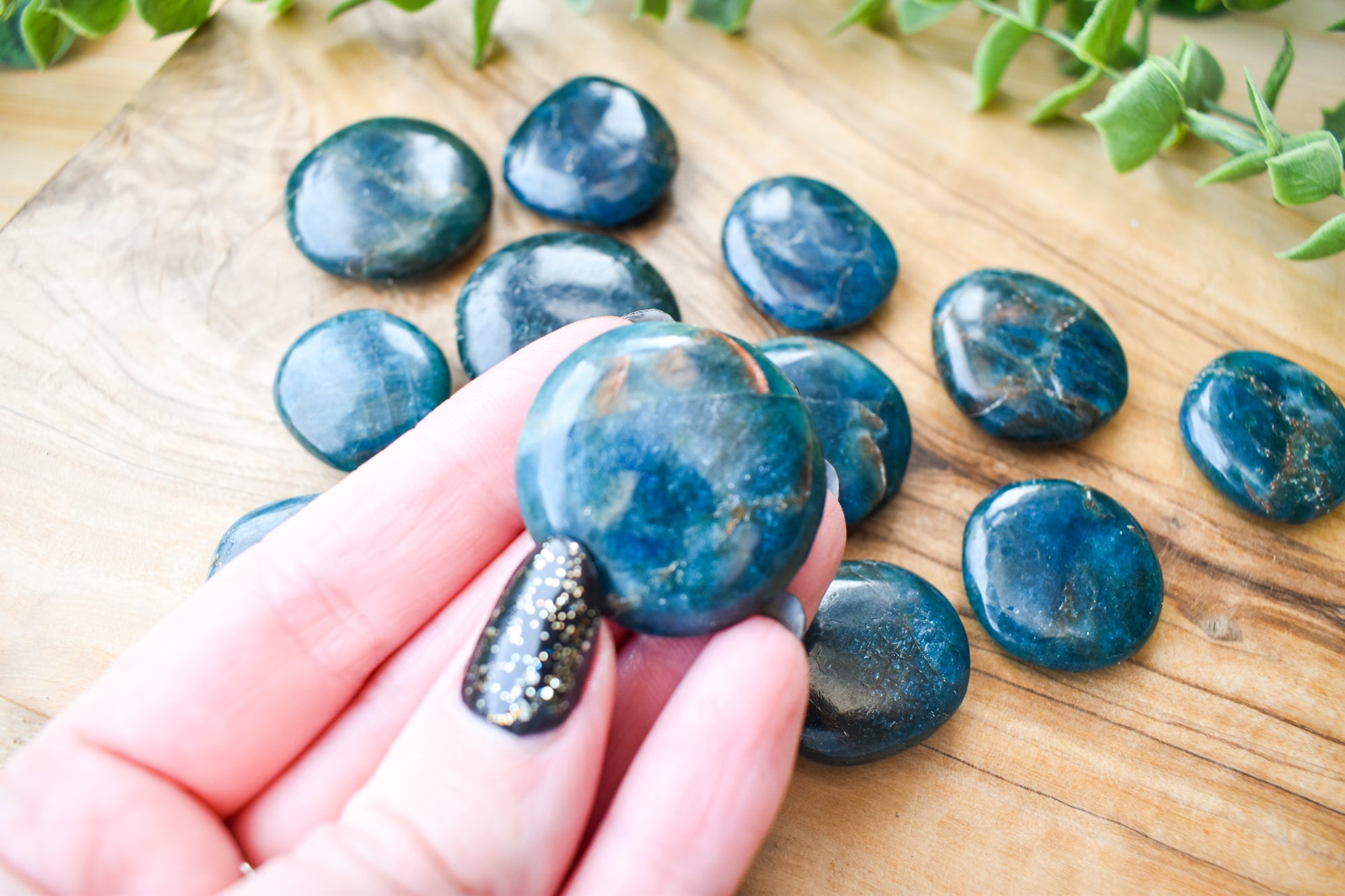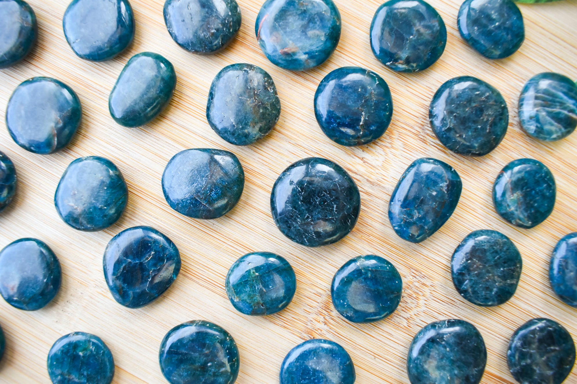 These are vibrant Blue Apatite flat stones, featuring striking ocean-blue to deep teal tones with natural translucency and subtle marbling flowing through each piece. Smoothly polished into comforting flat stones, they fit beautifully in the palm, making them perfect for carrying with you, placing on your desk, or adding to your sacred space. Every stone is completely unique, showcasing Blue Apatite’s refreshing colour and energising, crystal-clear presence. Ideal for your collection or as a meaningful gift filled with motivating, expressive energy.