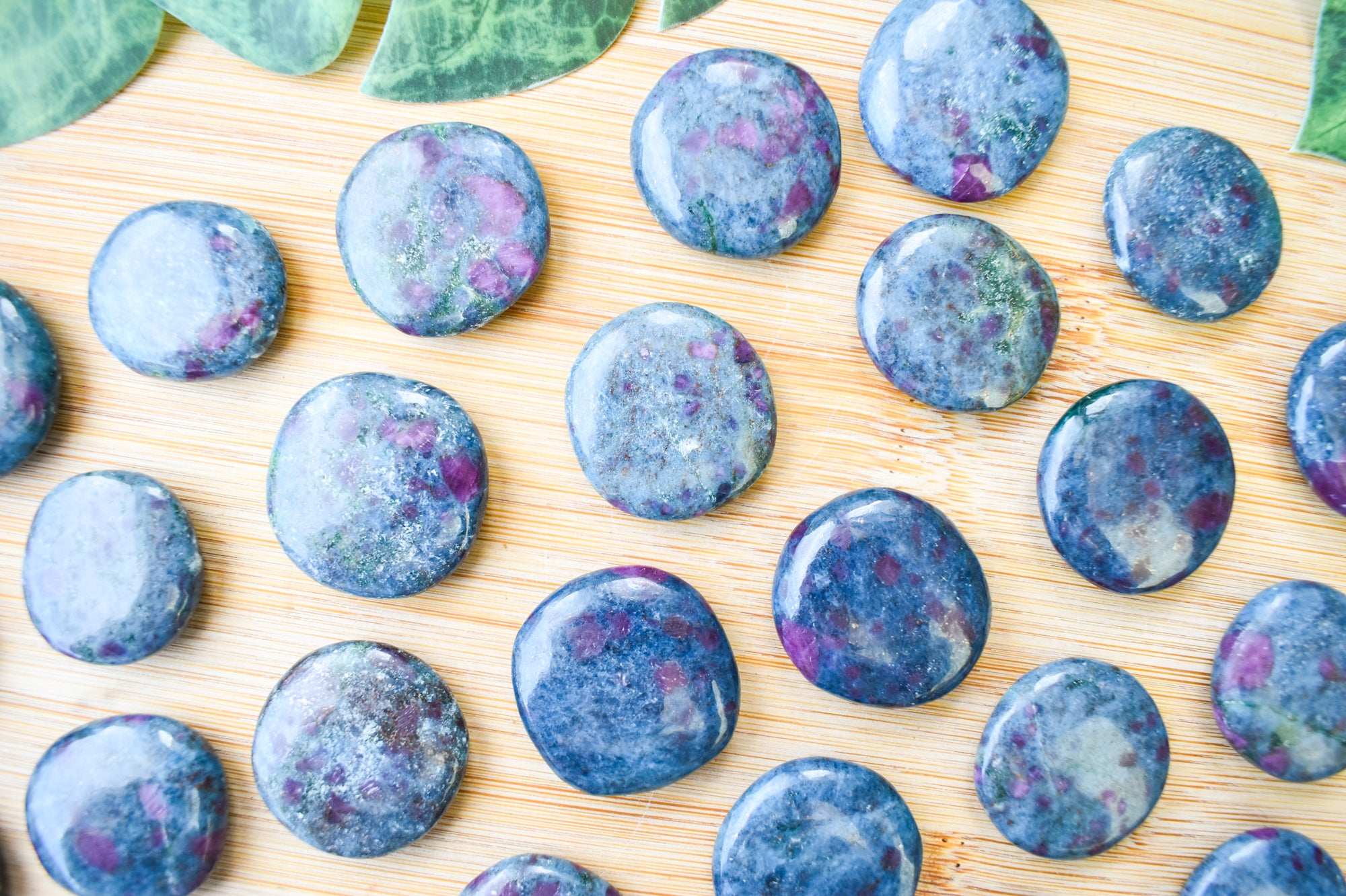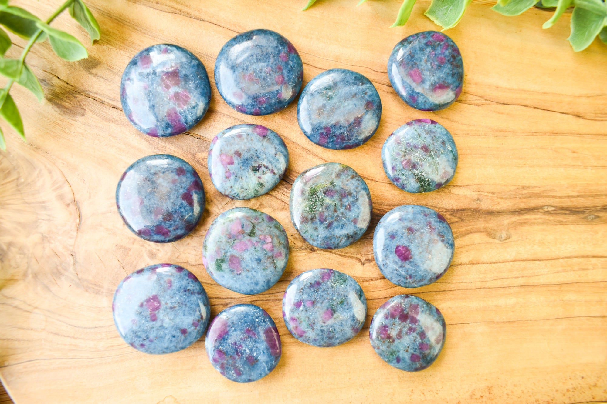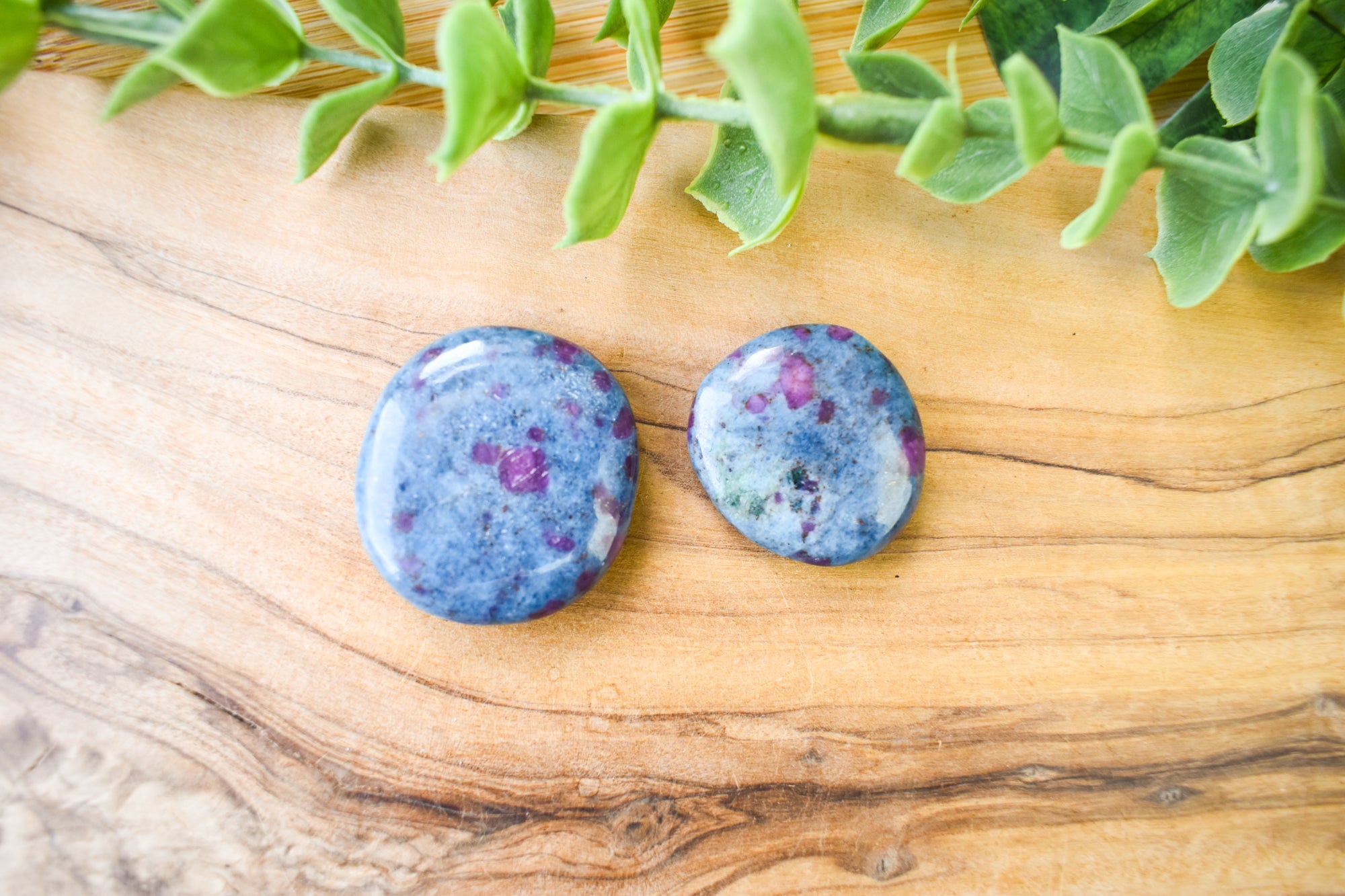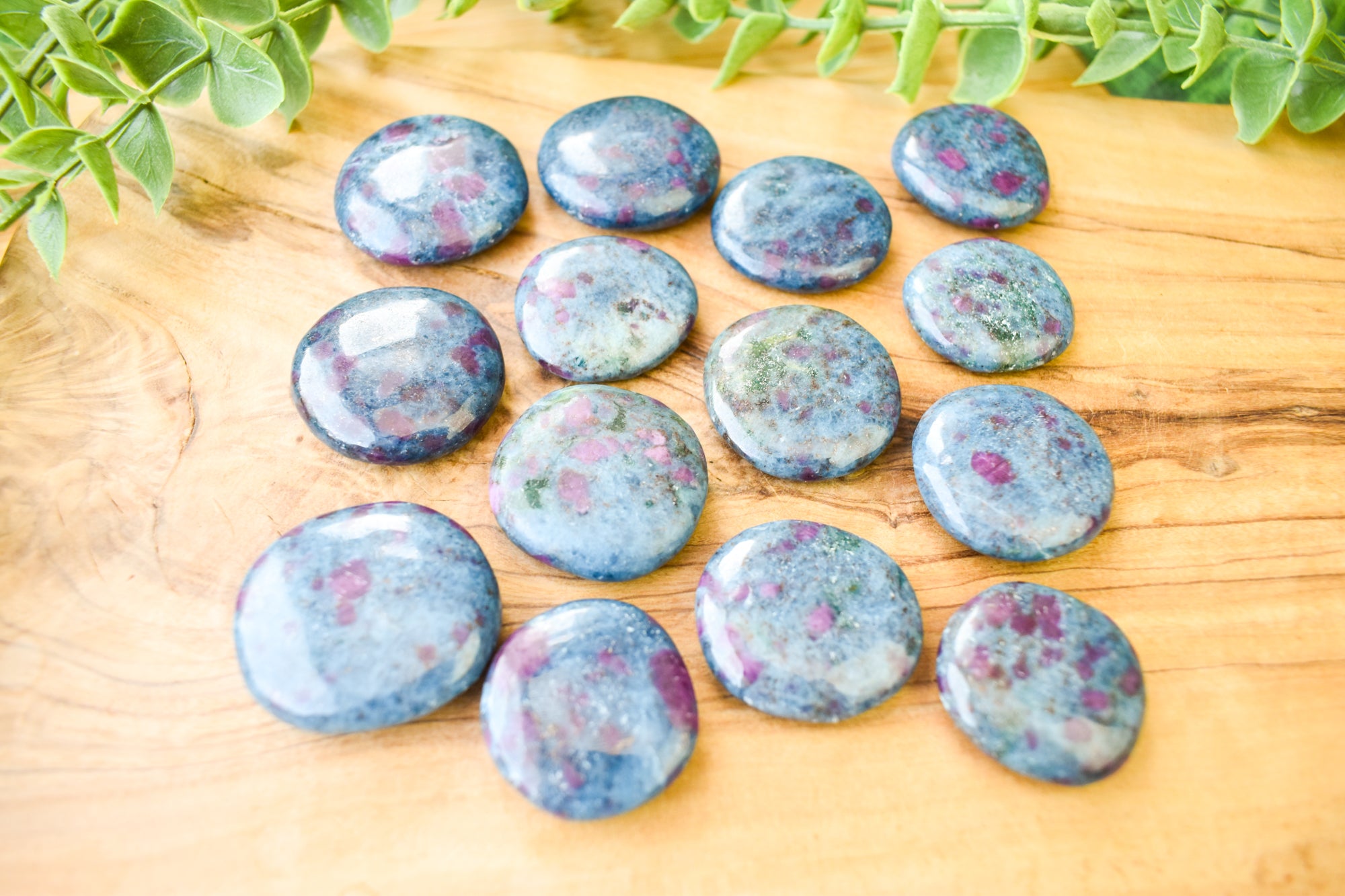 These are captivating Ruby Kyanite flat stones, featuring deep blue Kyanite beautifully contrasted with rich ruby inclusions in vibrant pink to red tones throughout each piece. Smoothly polished into comforting flat stones, they fit perfectly in the palm, making them ideal for carrying with you, placing on your altar, or adding to your sacred space. Every stone is completely unique, showcasing the striking fusion of bold colour and natural texture that makes Ruby Kyanite so distinctive. Perfect for your collection or as a meaningful gift filled with passionate, empowering energy.