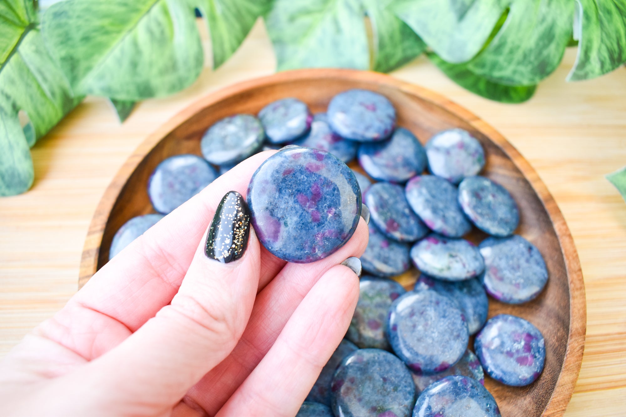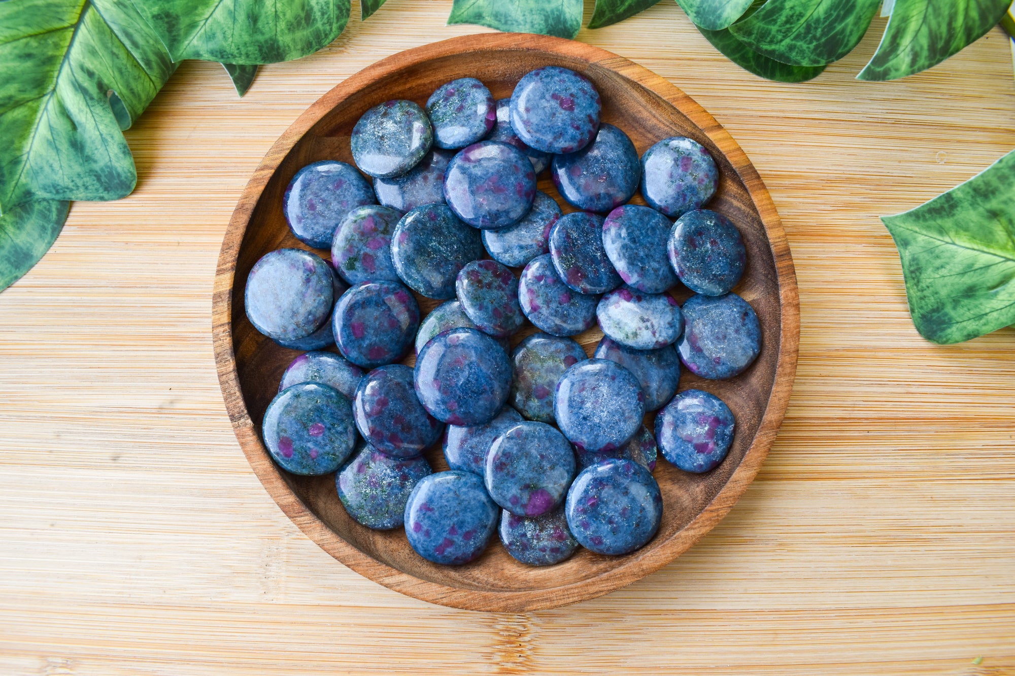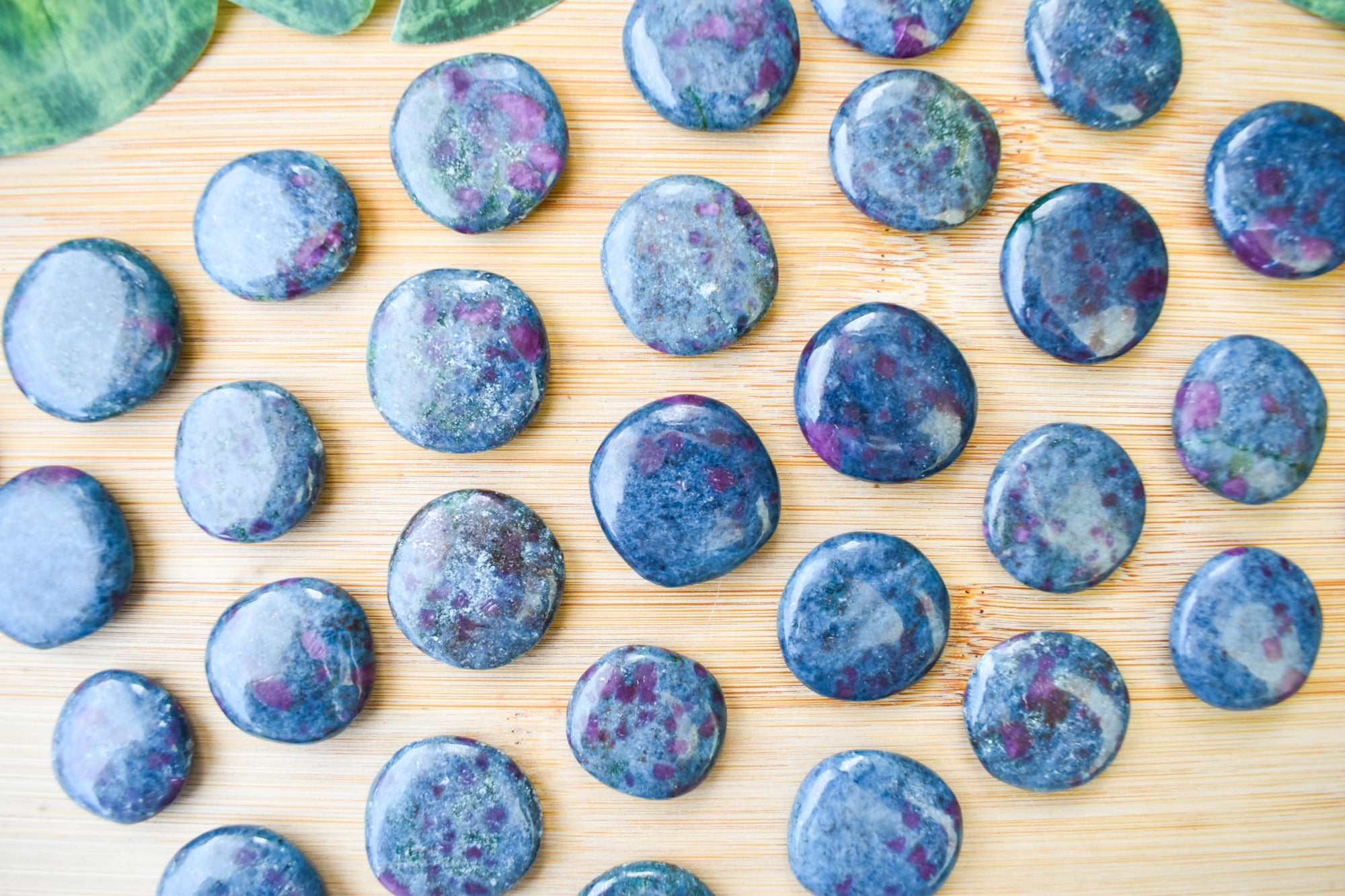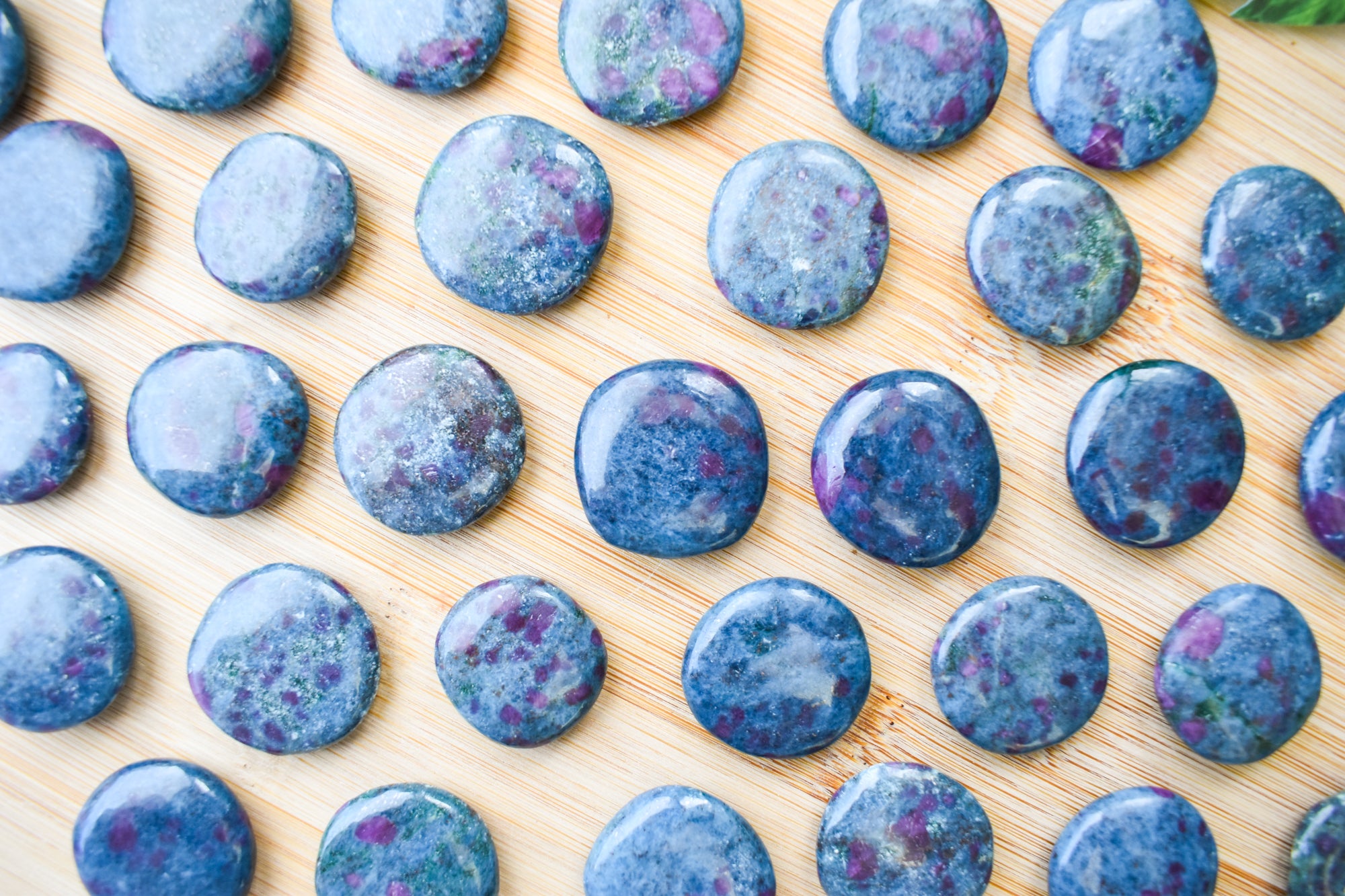 These are captivating Ruby Kyanite flat stones, featuring deep blue Kyanite beautifully contrasted with rich ruby inclusions in vibrant pink to red tones throughout each piece. Smoothly polished into comforting flat stones, they fit perfectly in the palm, making them ideal for carrying with you, placing on your altar, or adding to your sacred space. Every stone is completely unique, showcasing the striking fusion of bold colour and natural texture that makes Ruby Kyanite so distinctive. Perfect for your collection or as a meaningful gift filled with passionate, empowering energy.