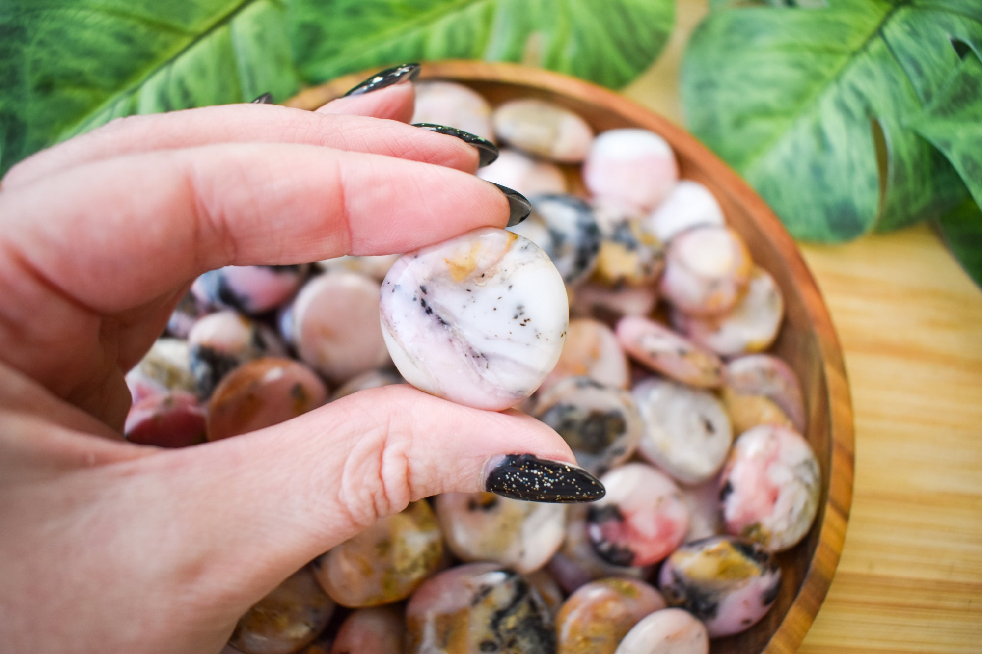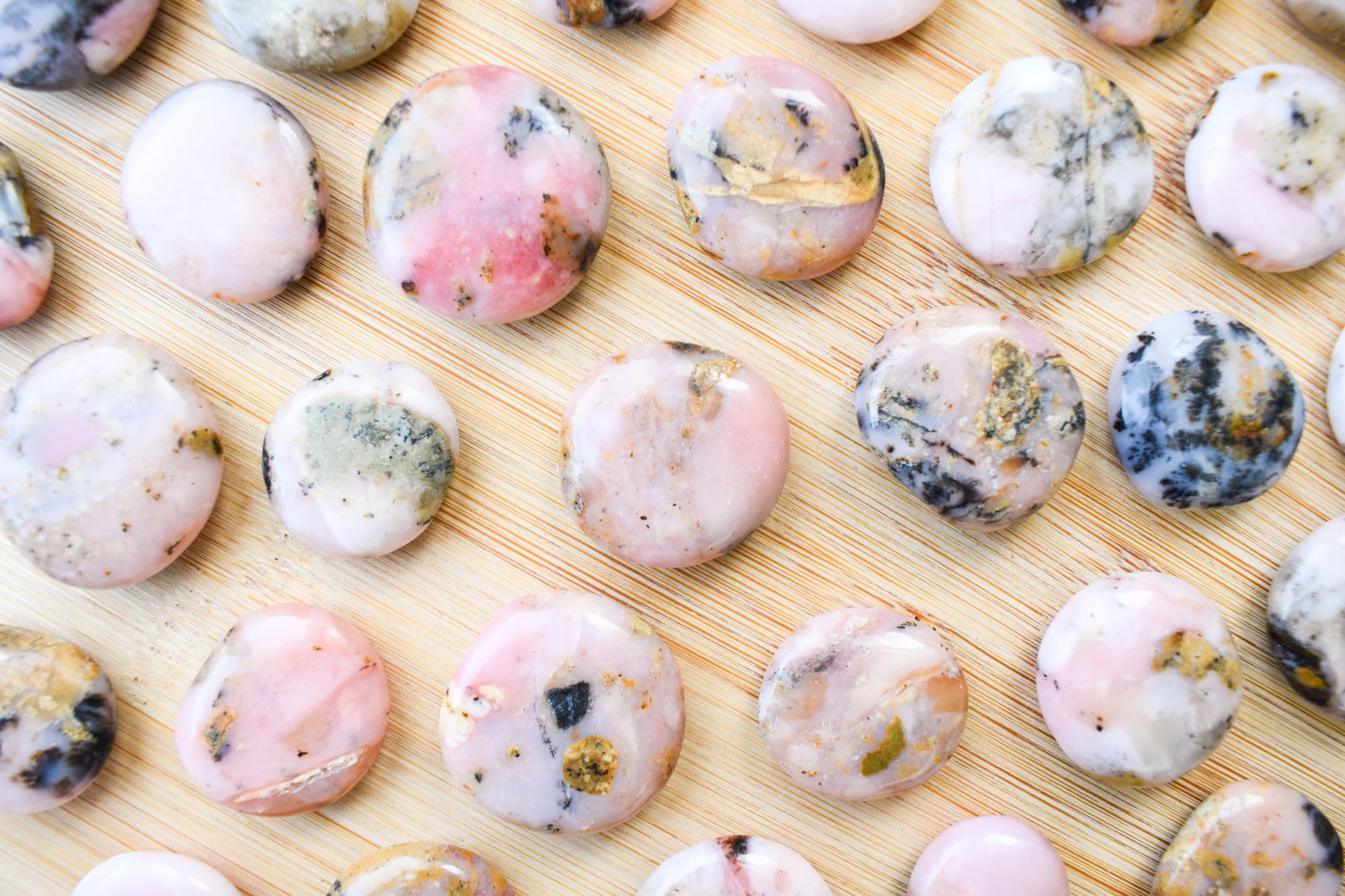 These are delicate Peruvian Pink Opal flat stones, featuring soft blush to dusty rose tones with gentle marbling and creamy undertones flowing through each piece. Smoothly polished into comforting flat stones, they fit beautifully in the palm, making them perfect for carrying with you, placing under your pillow, or adding to your sacred space. Every stone is completely unique, highlighting the opal’s soothing colour and tender, nurturing presence. Ideal for your collection, altar, bedside table, or as a meaningful gift filled with loving, heart-healing energy.