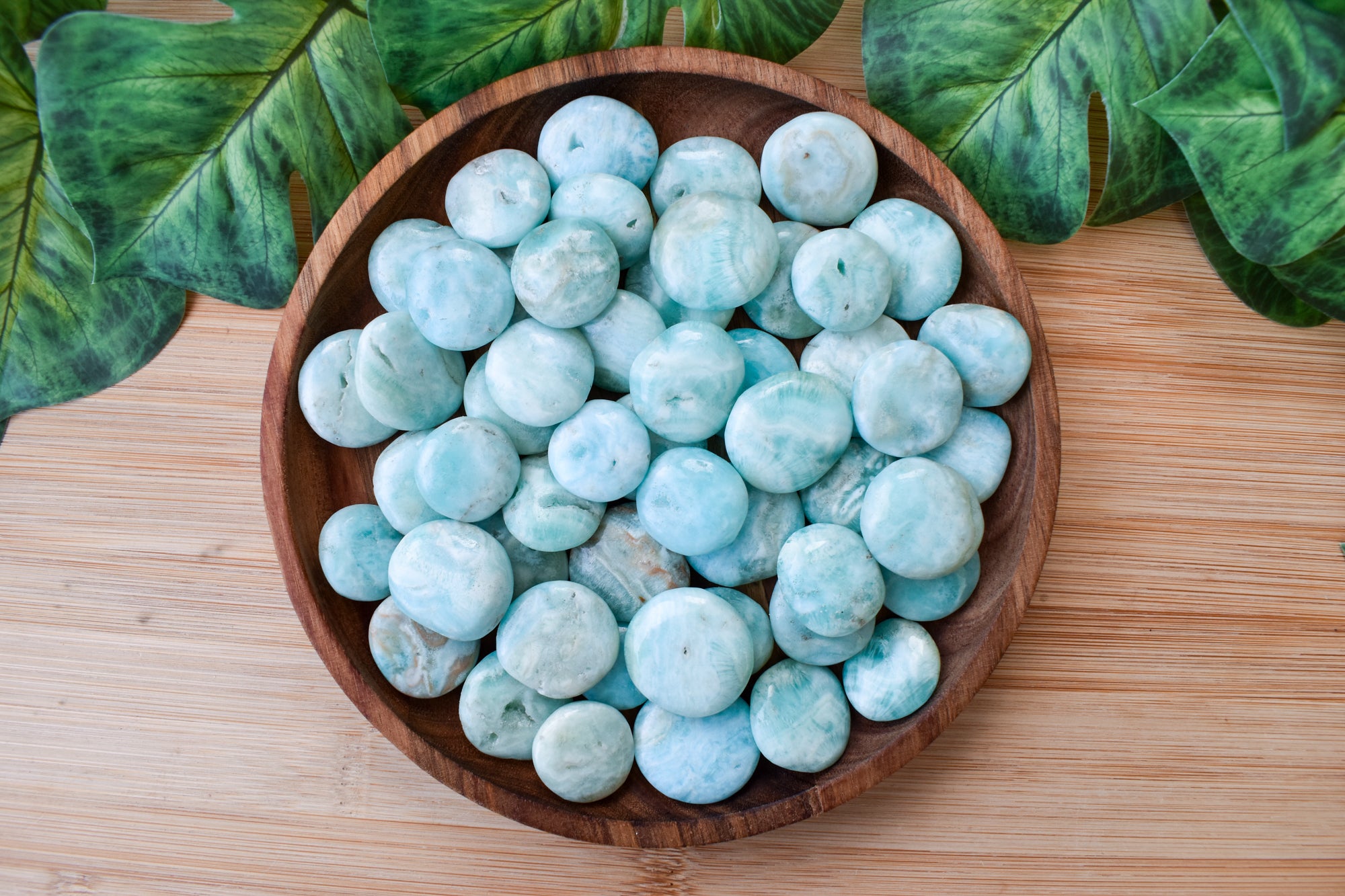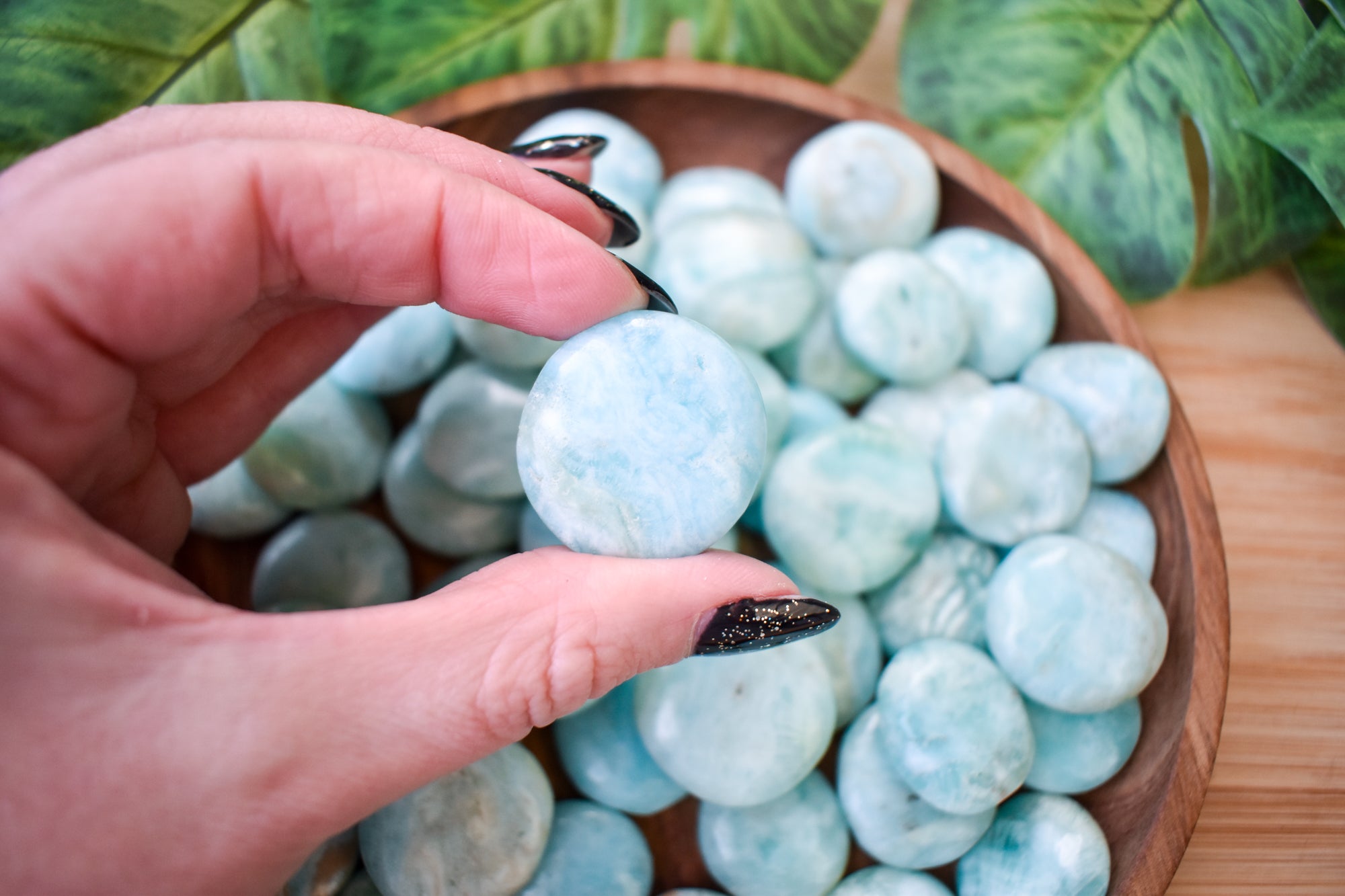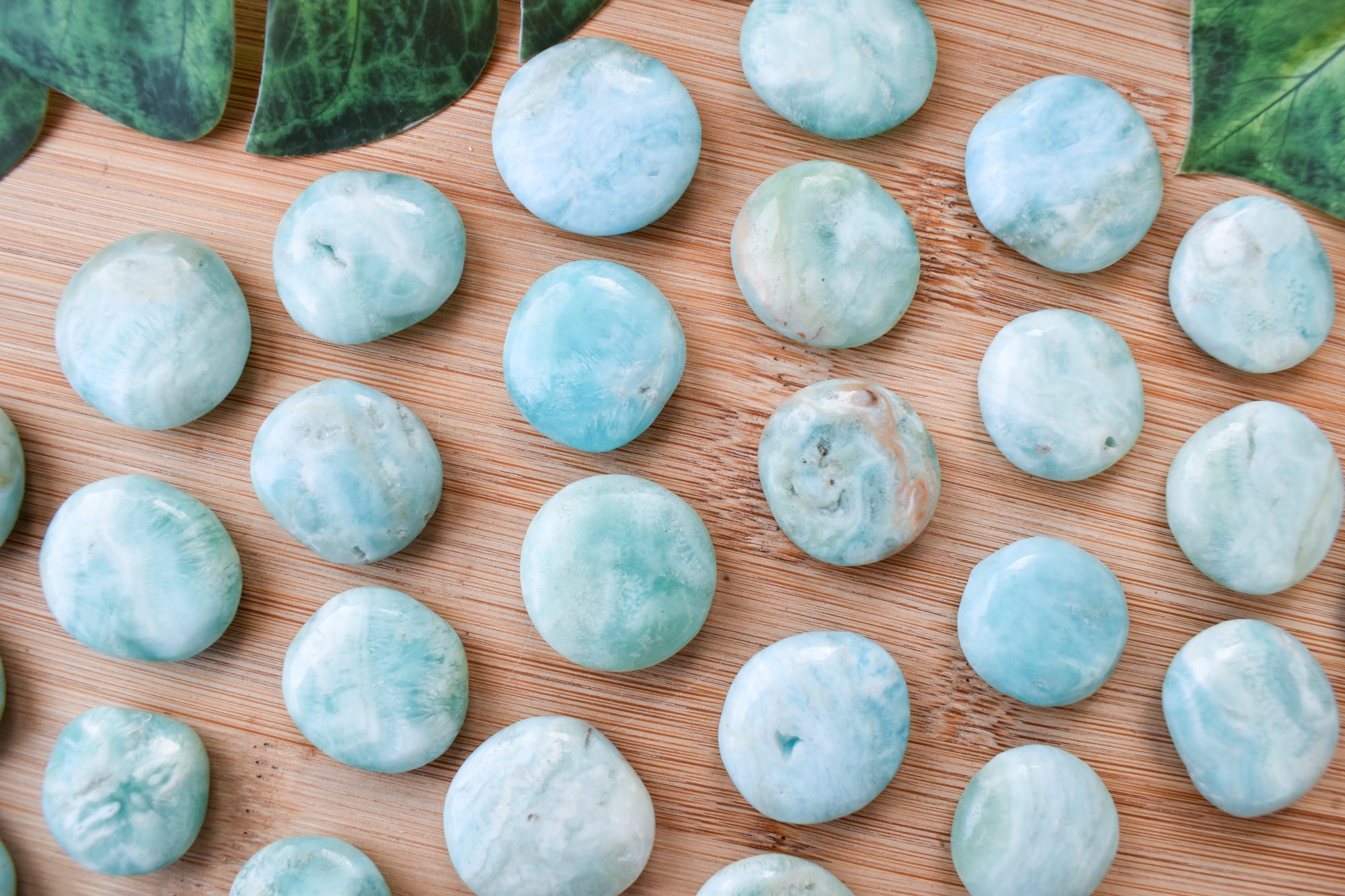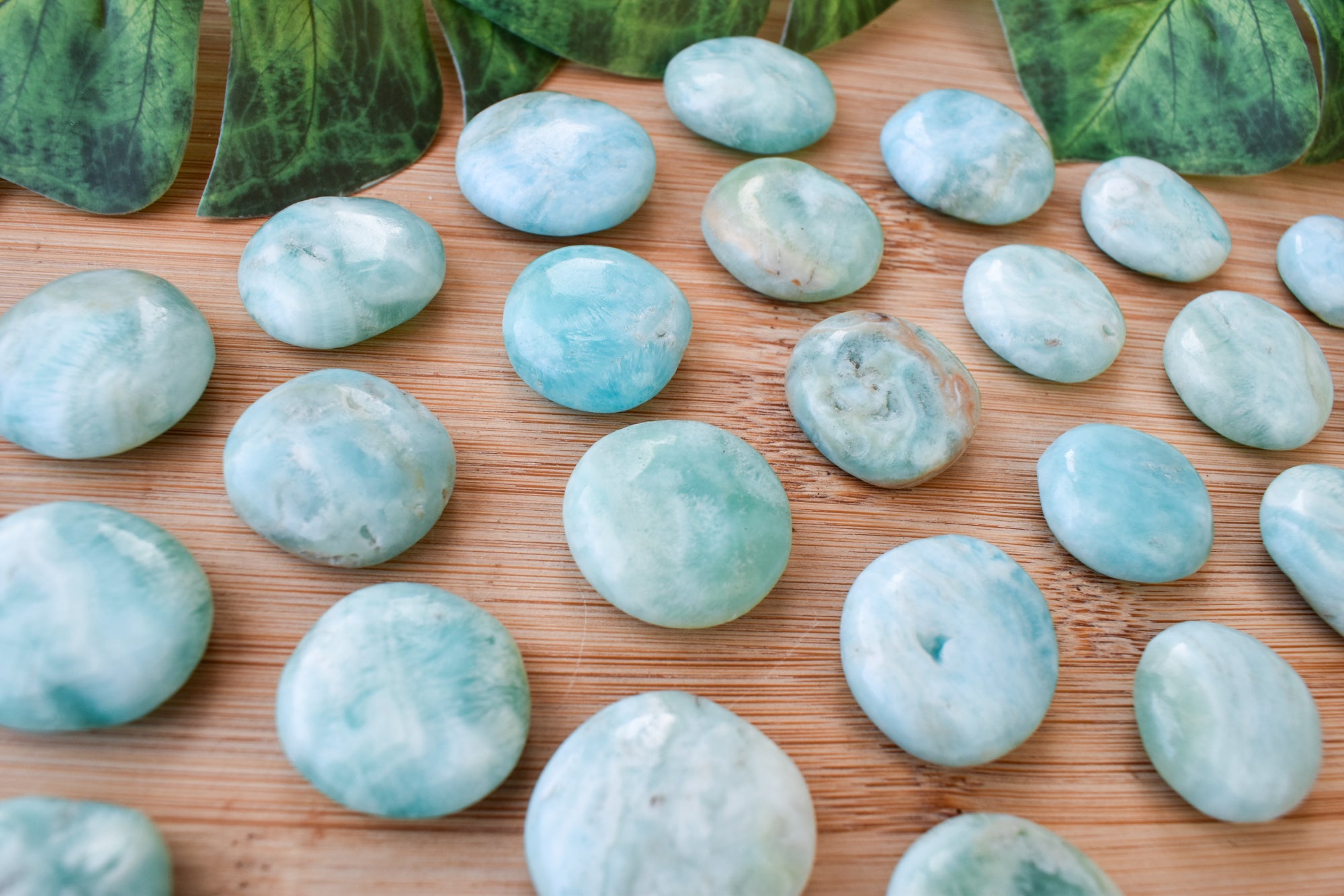 These are soothing Caribbean Calcite flat stones, featuring dreamy ocean-blue tones blended with soft sandy beige and creamy white patterns flowing through each piece. Smoothly polished into comforting flat stones, they rest beautifully in the palm, making them perfect for carrying with you, placing on your bedside table, or adding to your sacred space. Every stone is completely unique, showcasing Caribbean Calcite’s tranquil, beach-like appearance and calming, airy energy. Ideal for your collection or as a meaningful gift filled with peaceful, uplifting vibrations.