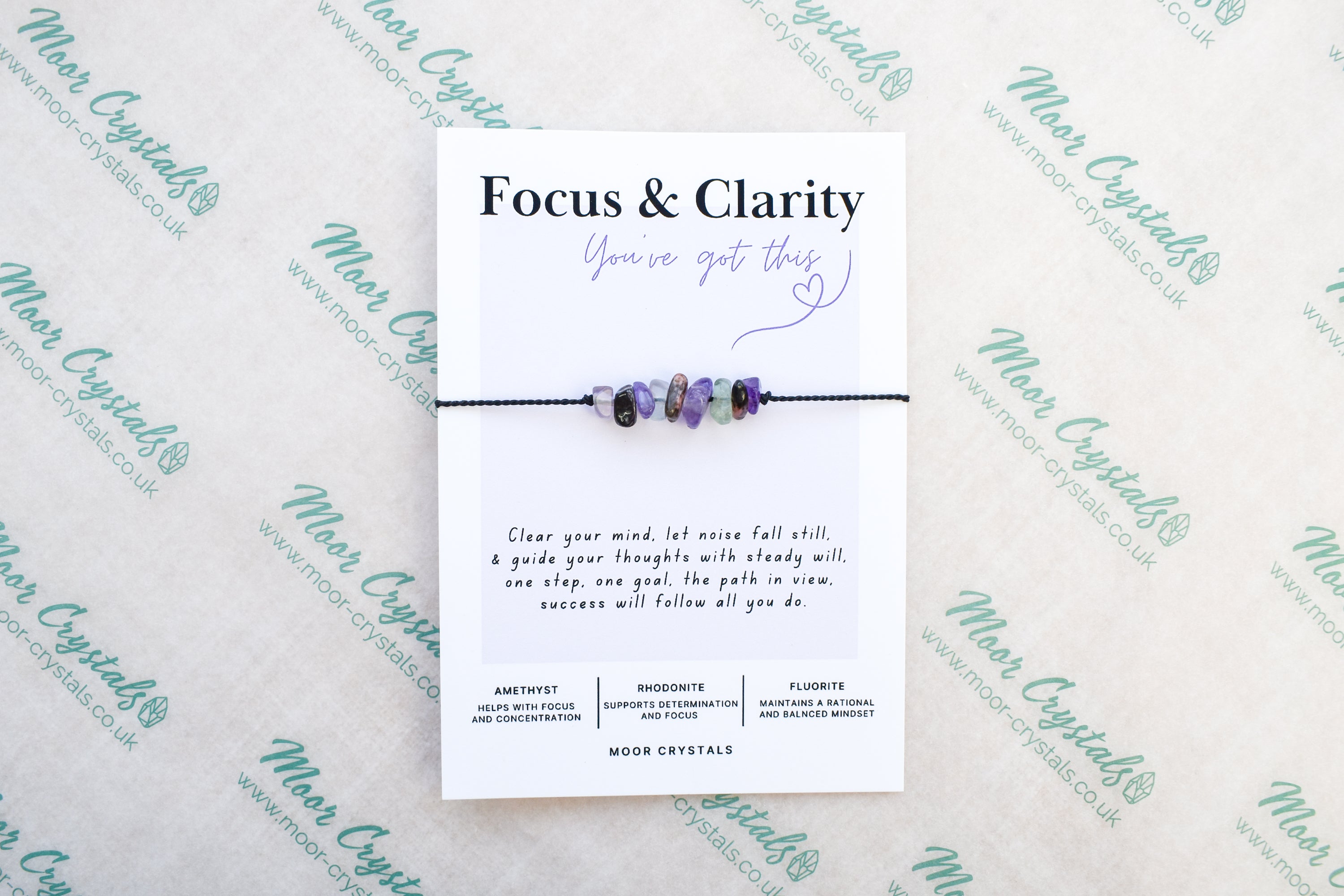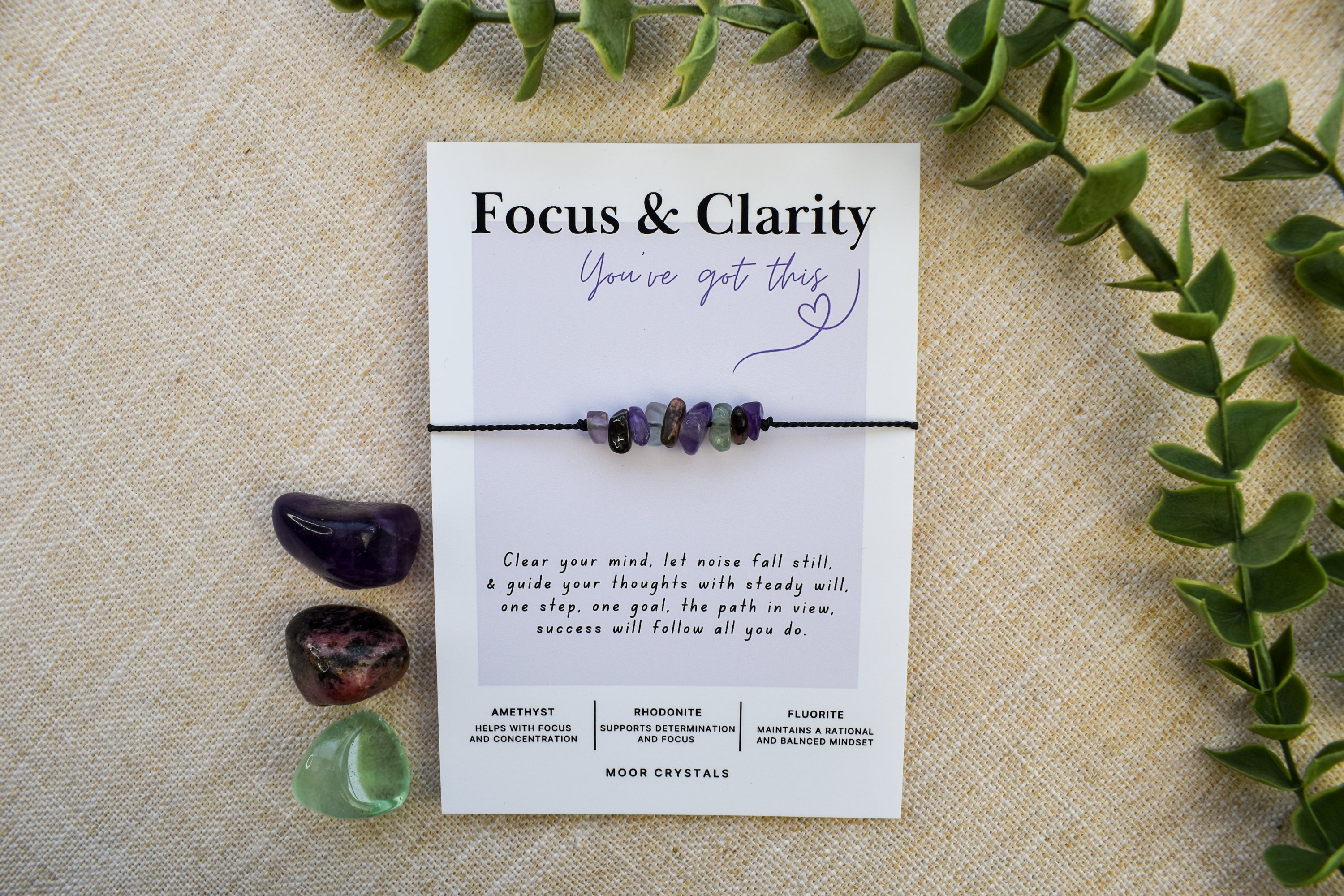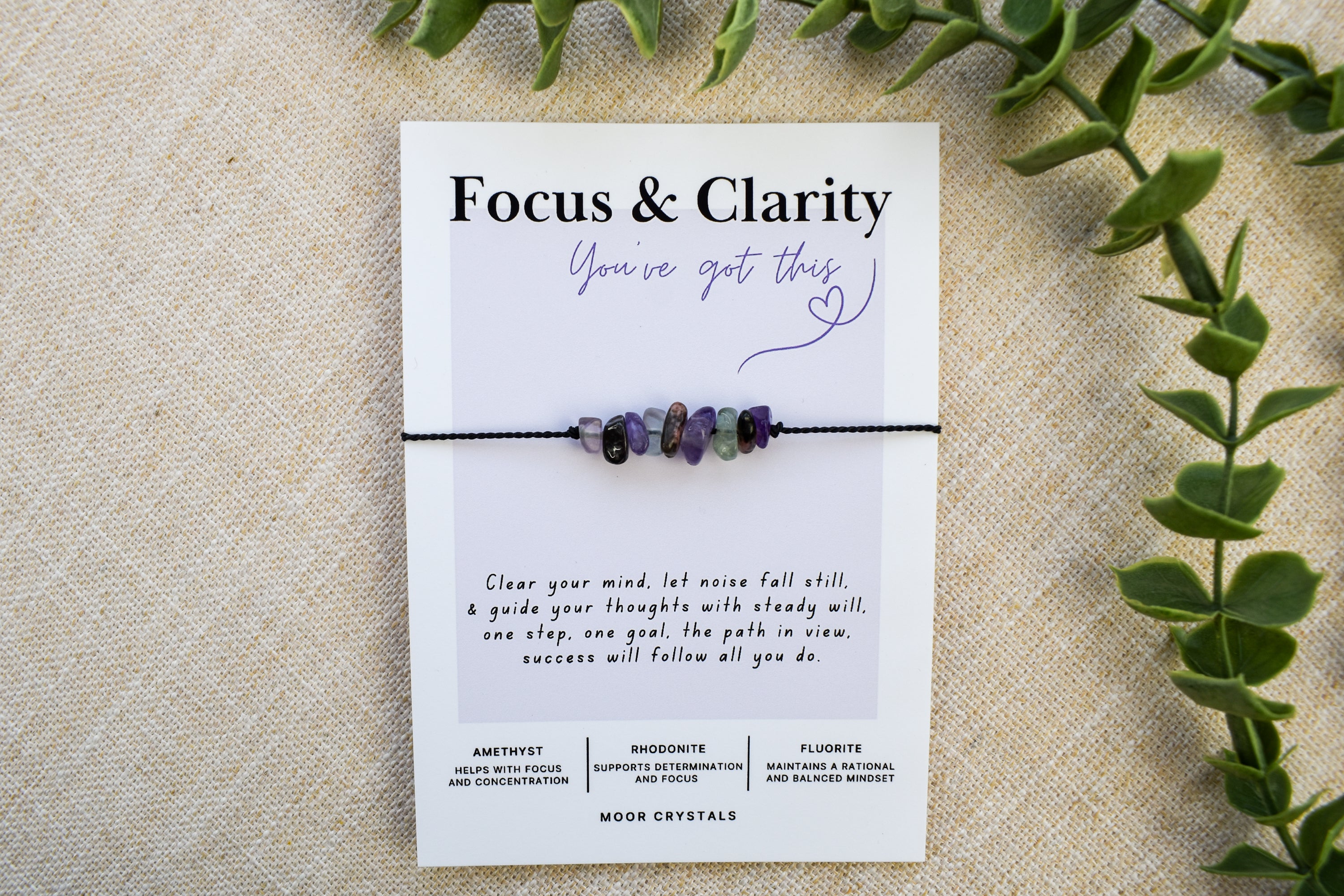 Your Focus & Clarity bracelet / anklet will be presented on a beautiful card that includes a thoughtful poem and also gives information on the crystals used. It also comes beautifully packaged as shown in the photos using 100% eco packaging.