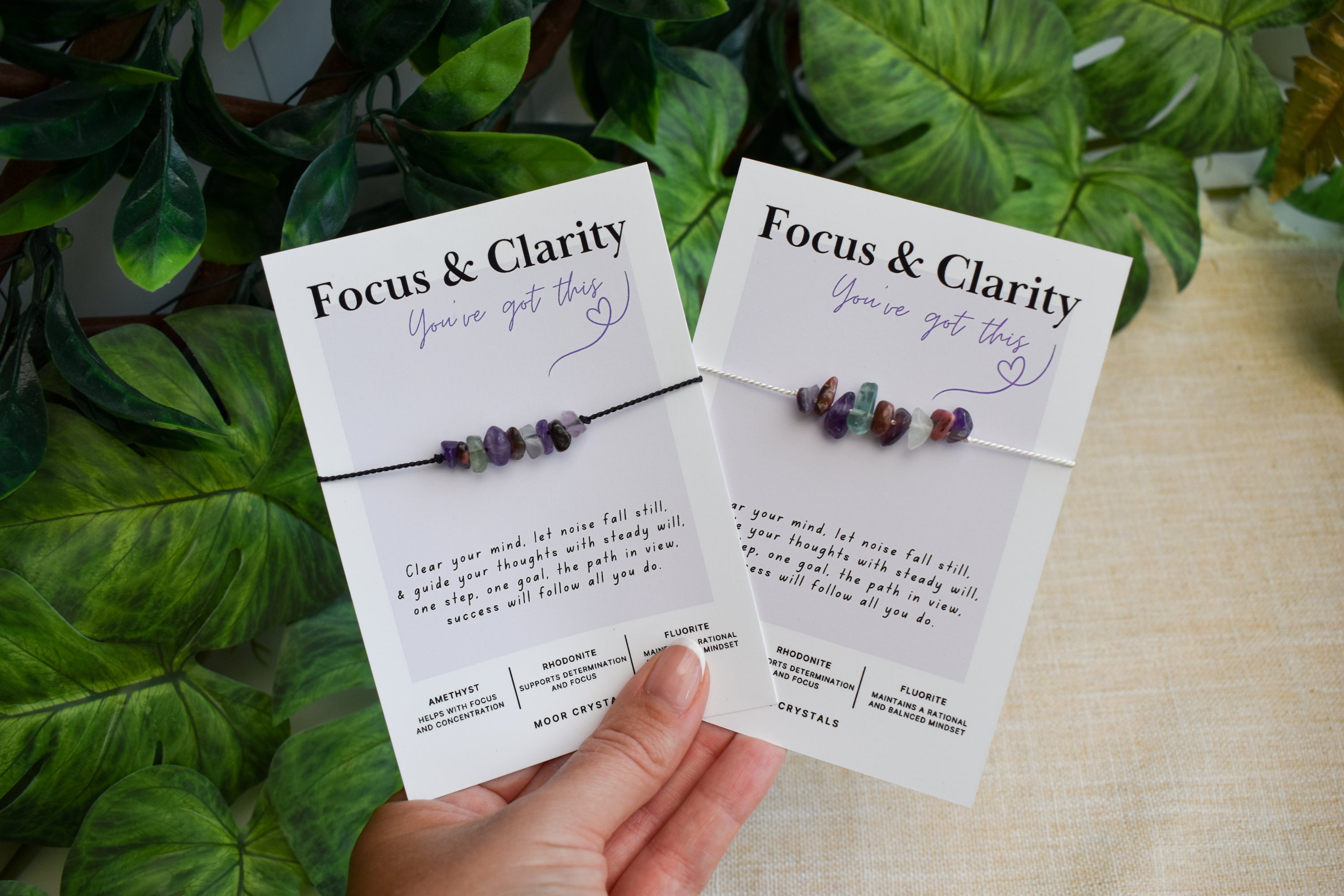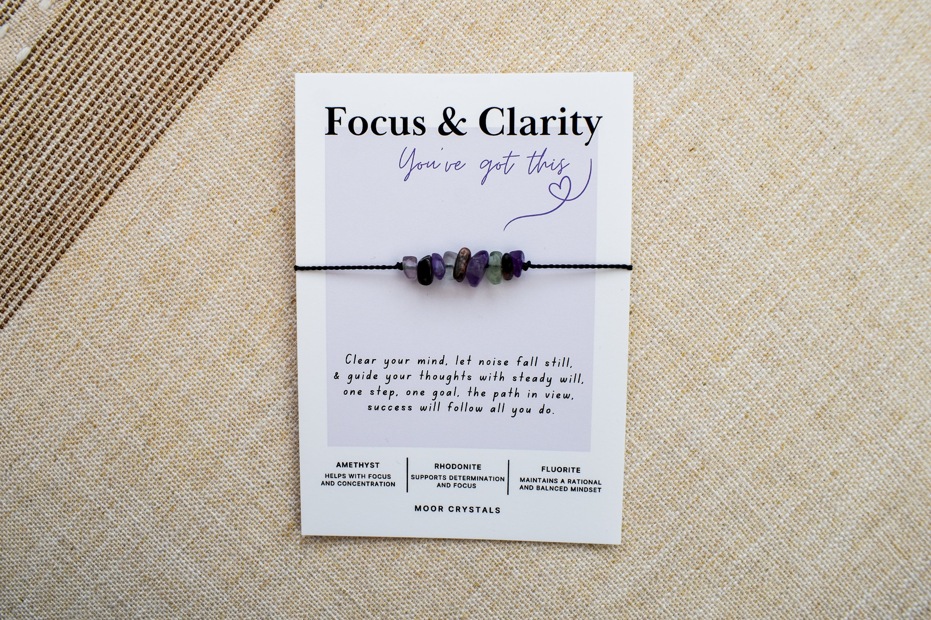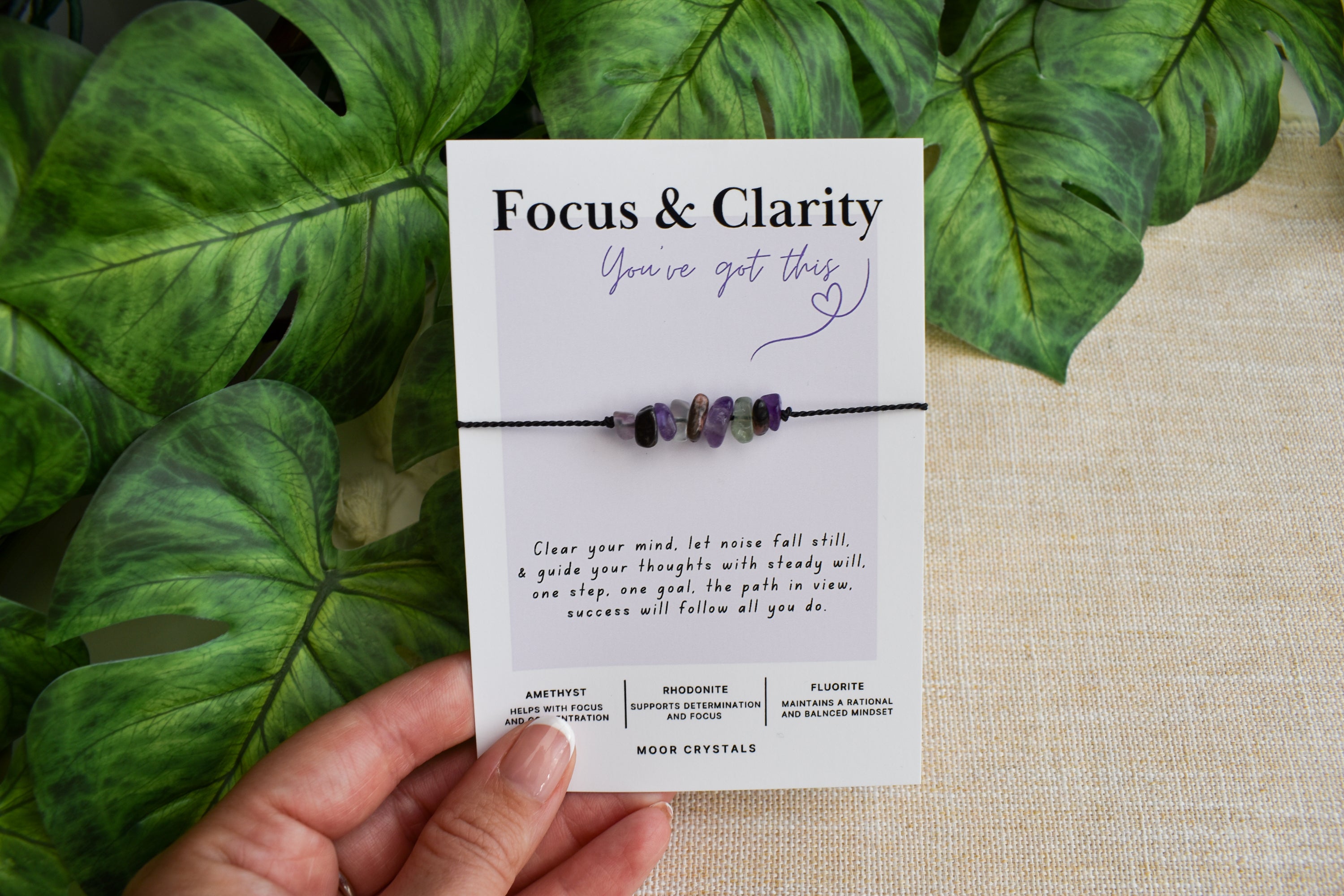 Your Focus & Clarity bracelet / anklet will be presented on a beautiful card that includes a thoughtful poem and also gives information on the crystals used. It also comes beautifully packaged as shown in the photos using 100% eco packaging.
