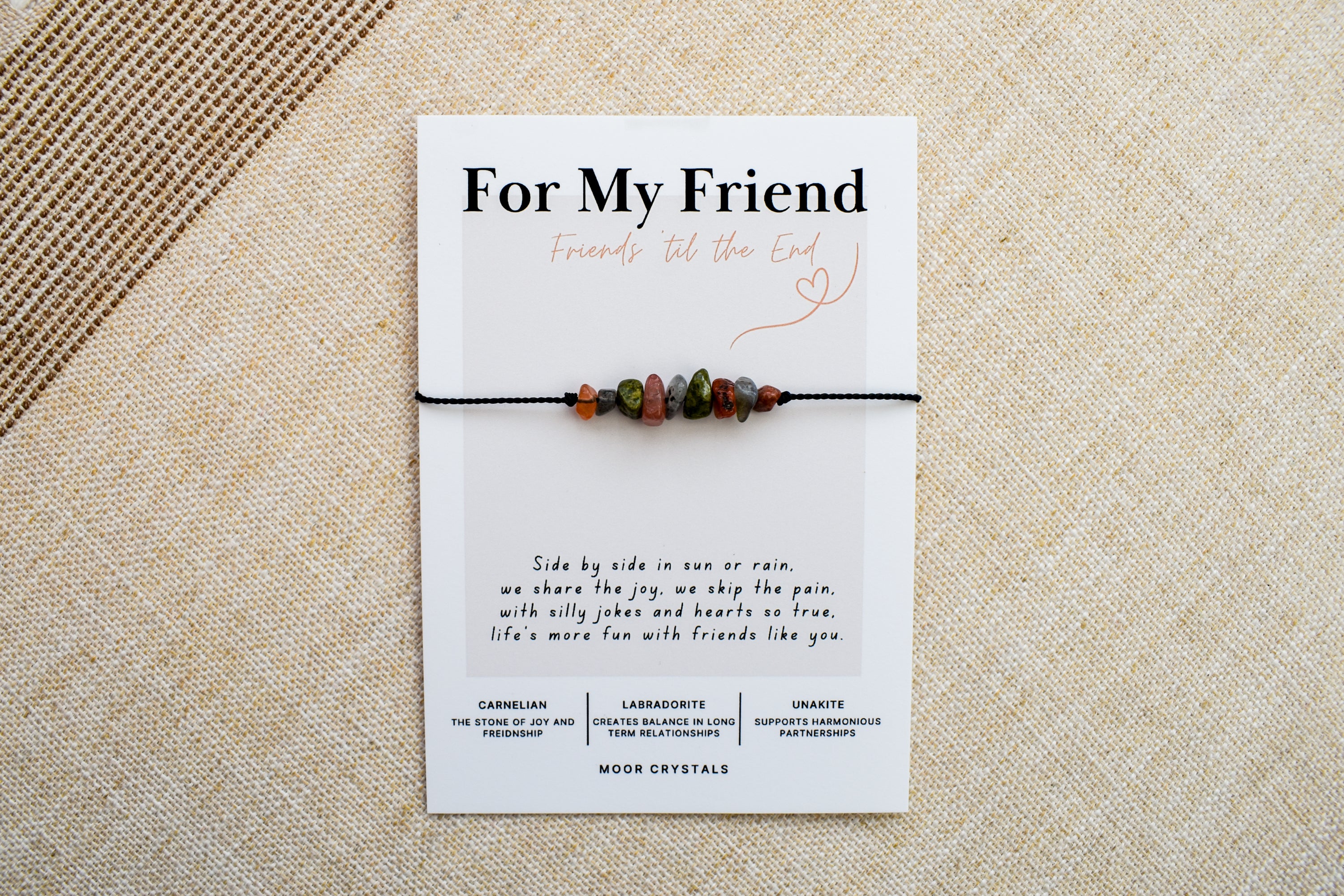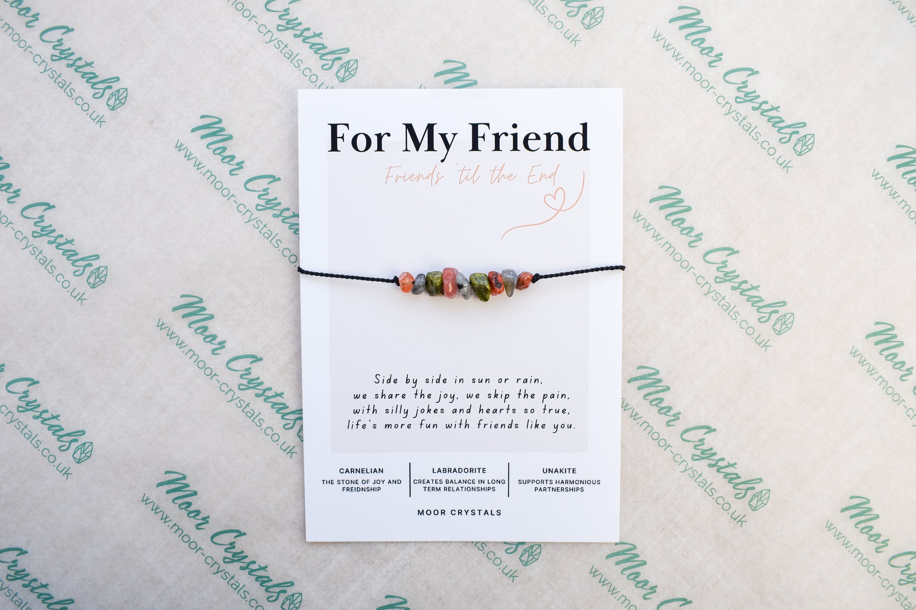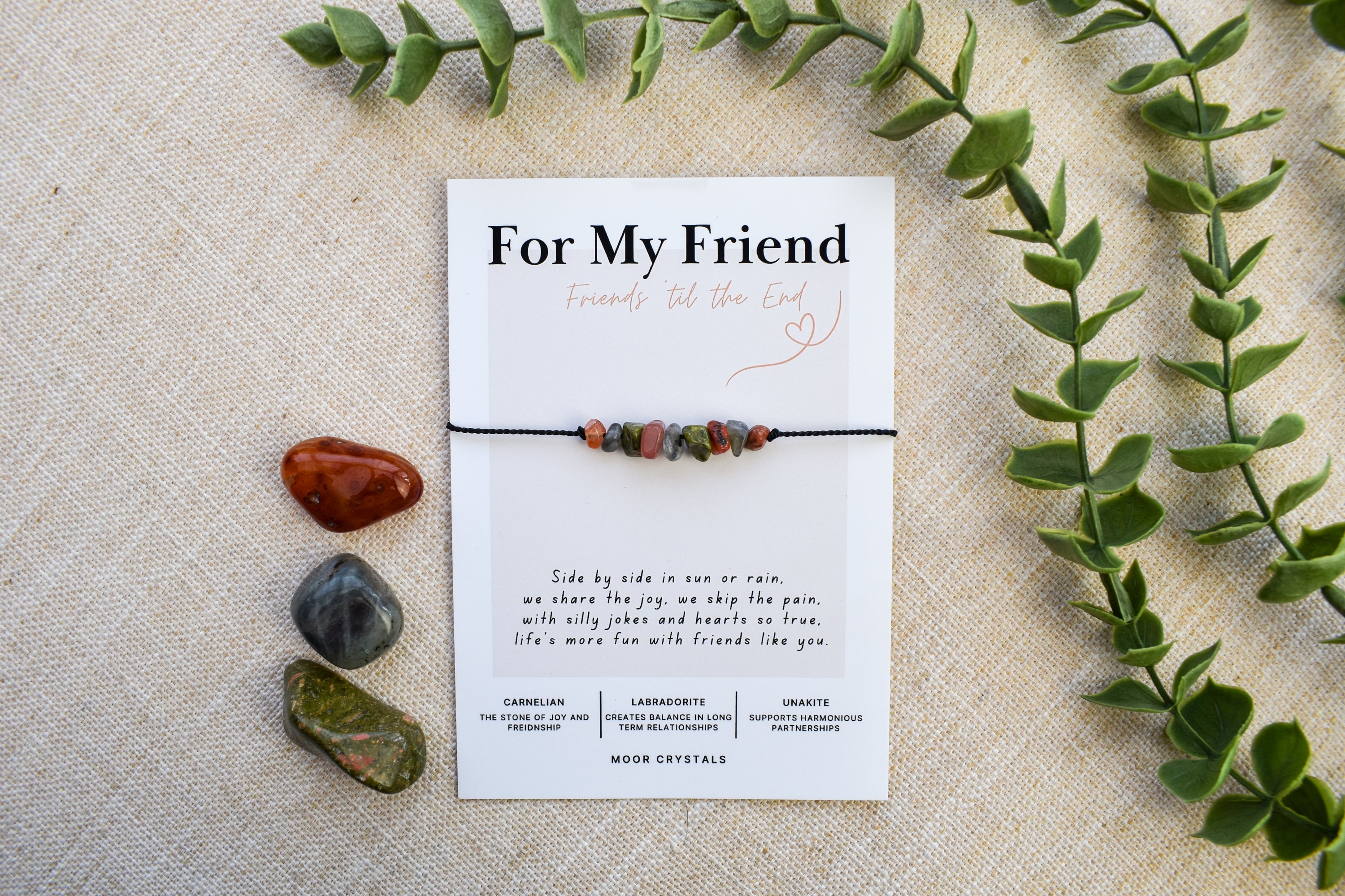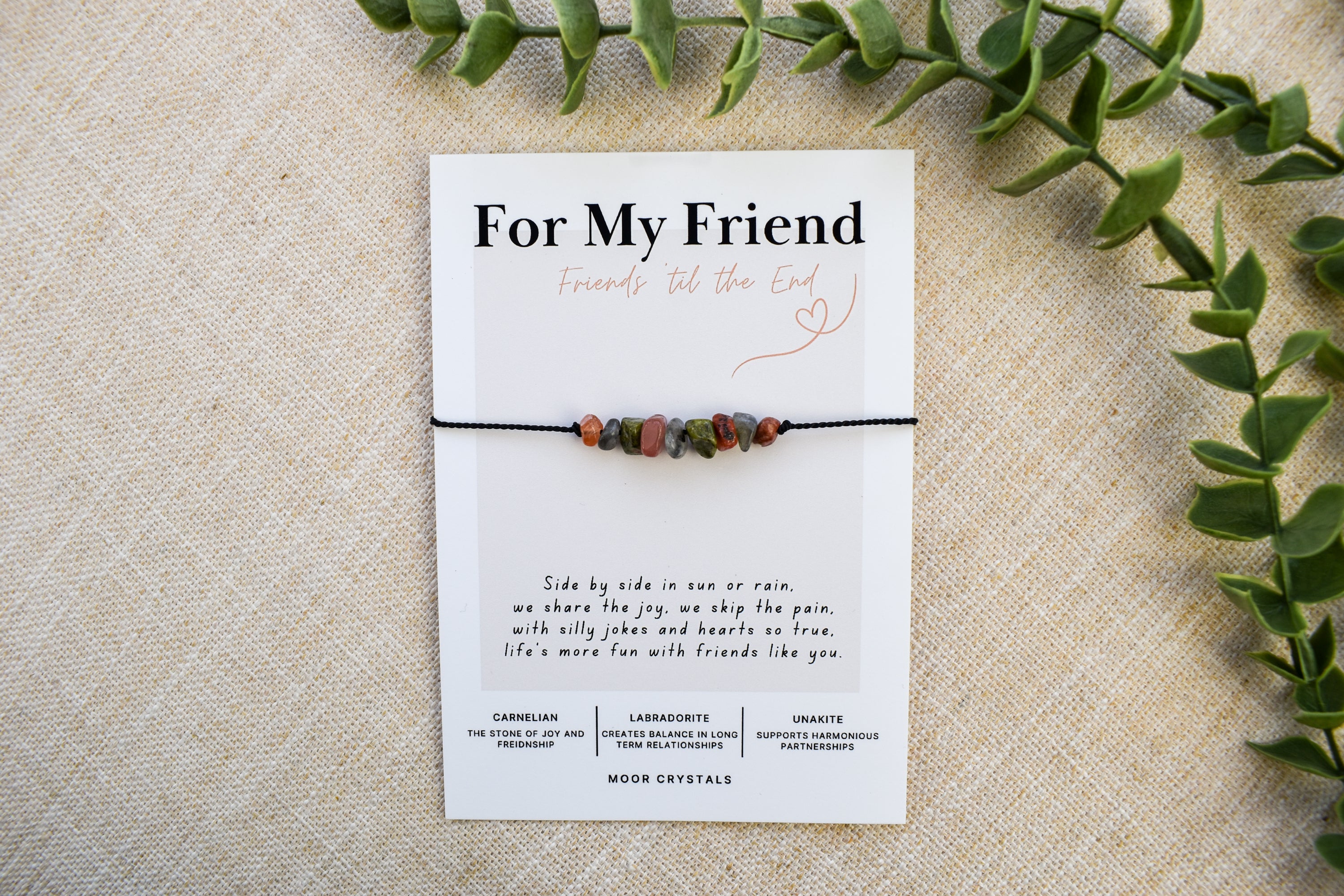 Your for my friend bracelet / anklet will be presented on a beautiful card that includes a thoughtful poem and also gives information on the crystals used. It also comes beautifully packaged as shown in the photos using 100% eco packaging.