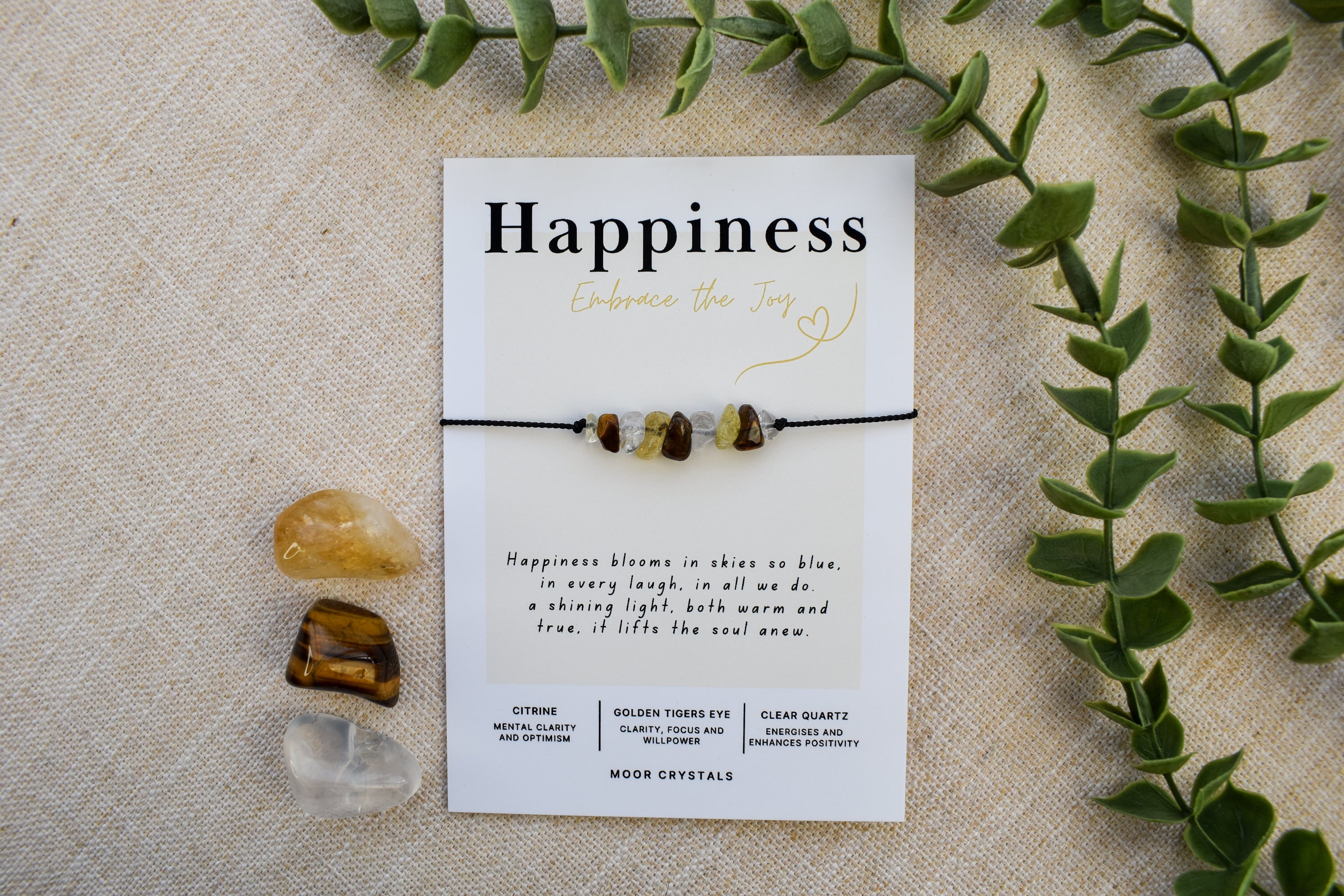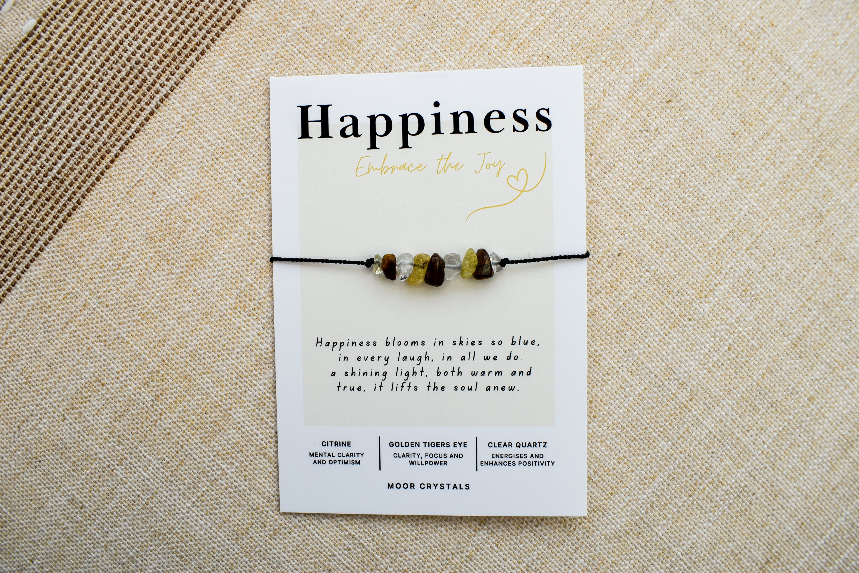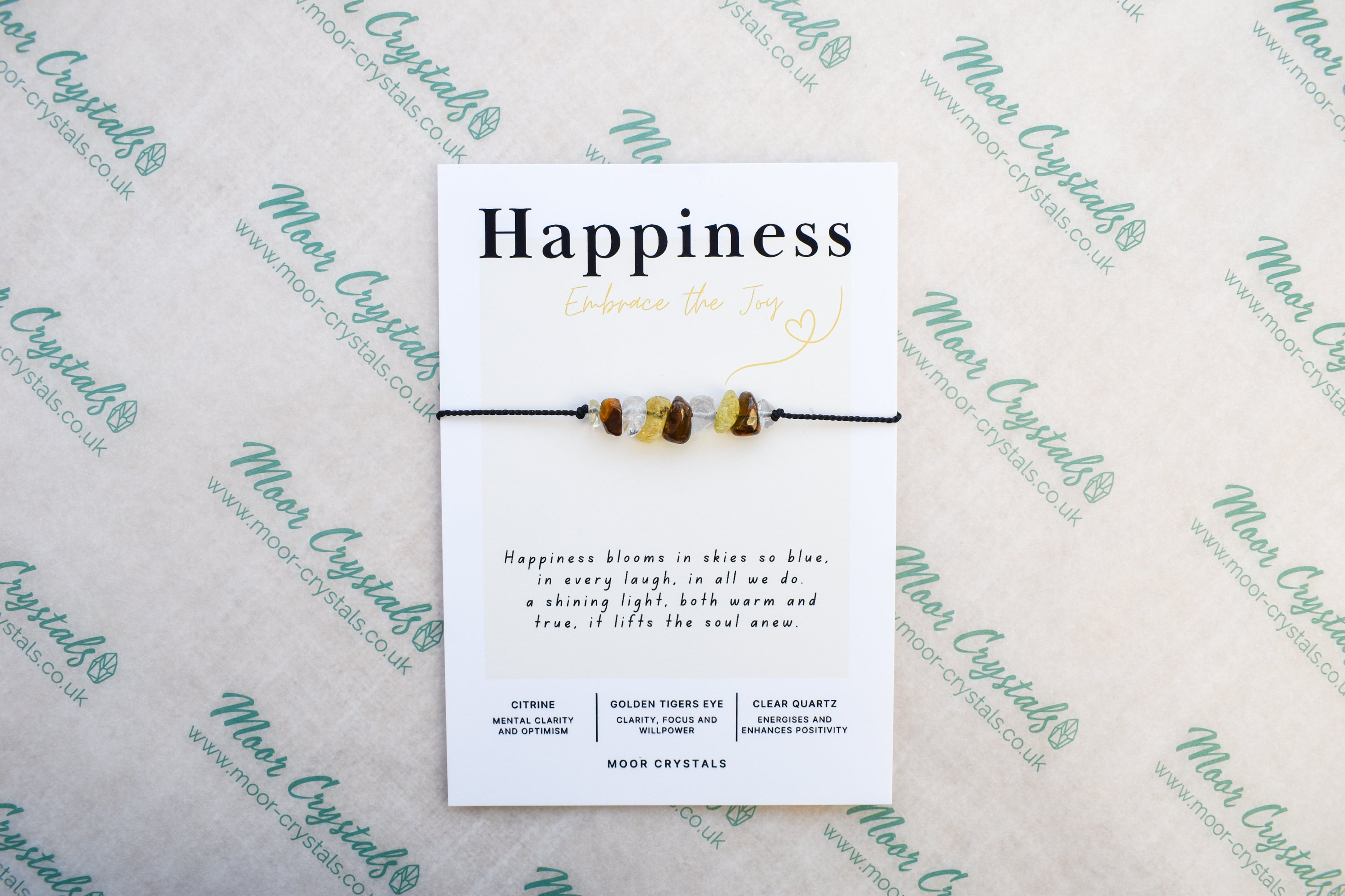 Your happiness bracelet / anklet will be presented on a beautiful card that includes a thoughtful poem and also gives information on the crystals used. It also comes beautifully packaged as shown in the photos using 100% eco packaging.