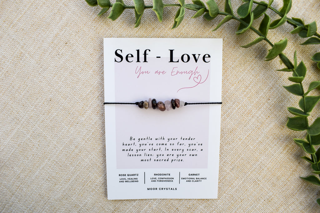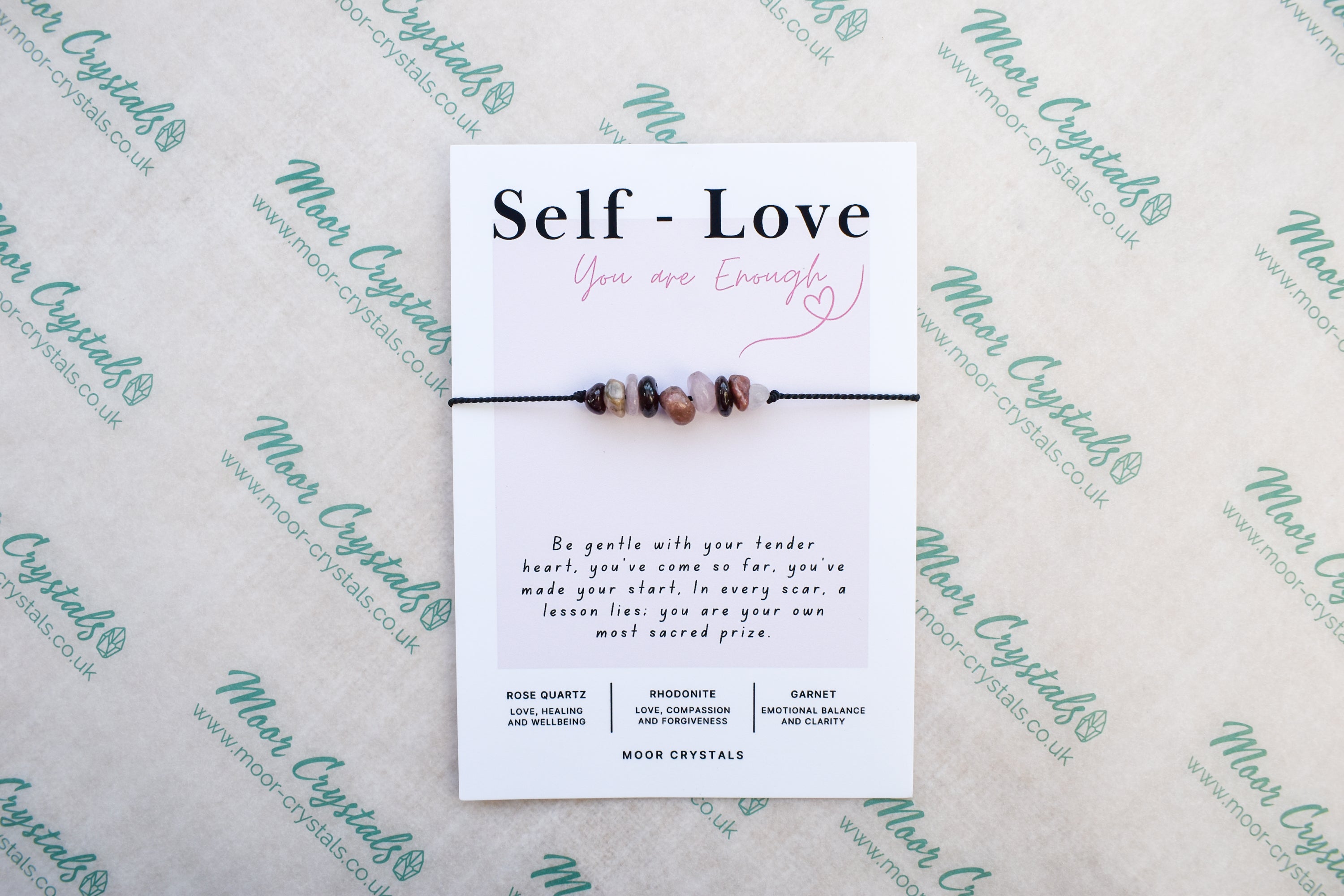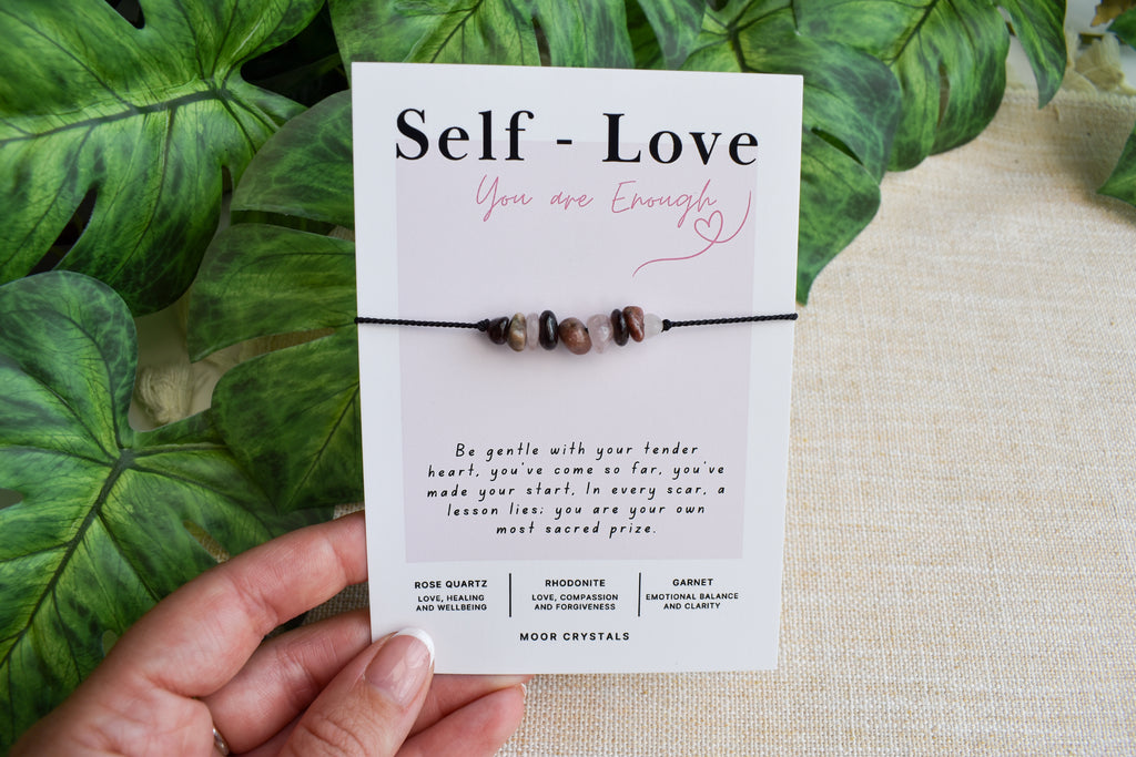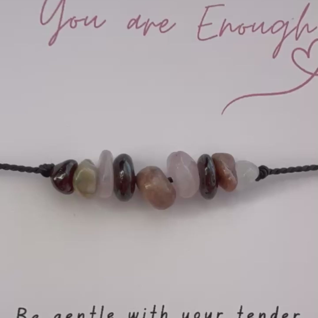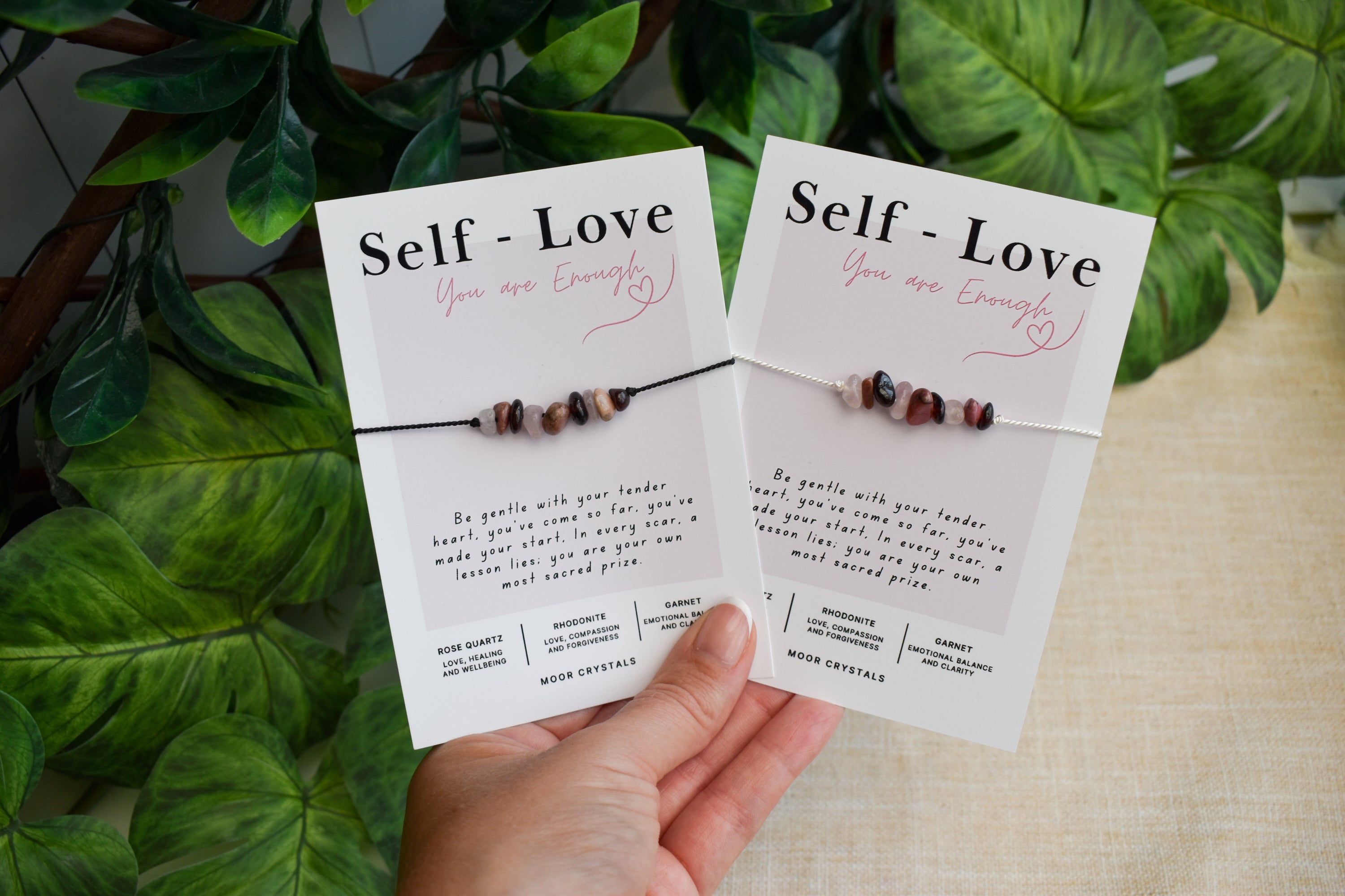 Your self love bracelet / anklet will be presented on a beautiful card that includes a thoughtful poem and also gives information on the crystals used. It also comes beautifully packaged as shown in the photos using 100% eco packaging.