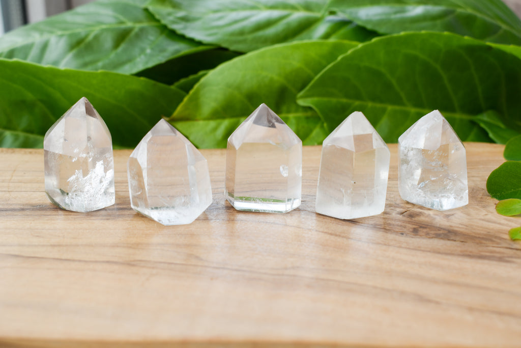 These are high quality, stunning clear quartz towers or standing points from Madagascar. The crystals are beautifully polished with beautiful clarity and small amounts of frosting in some of the points.