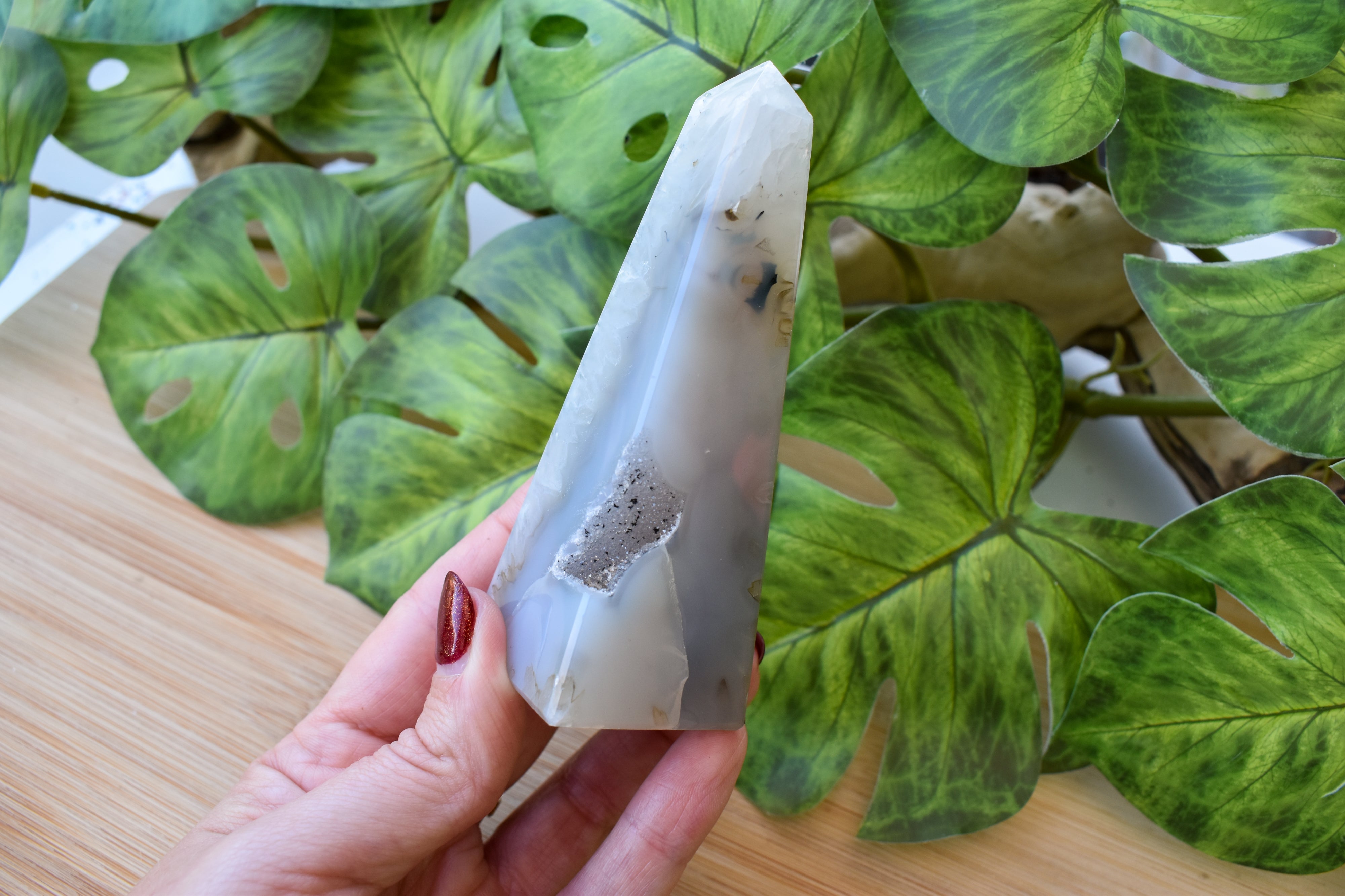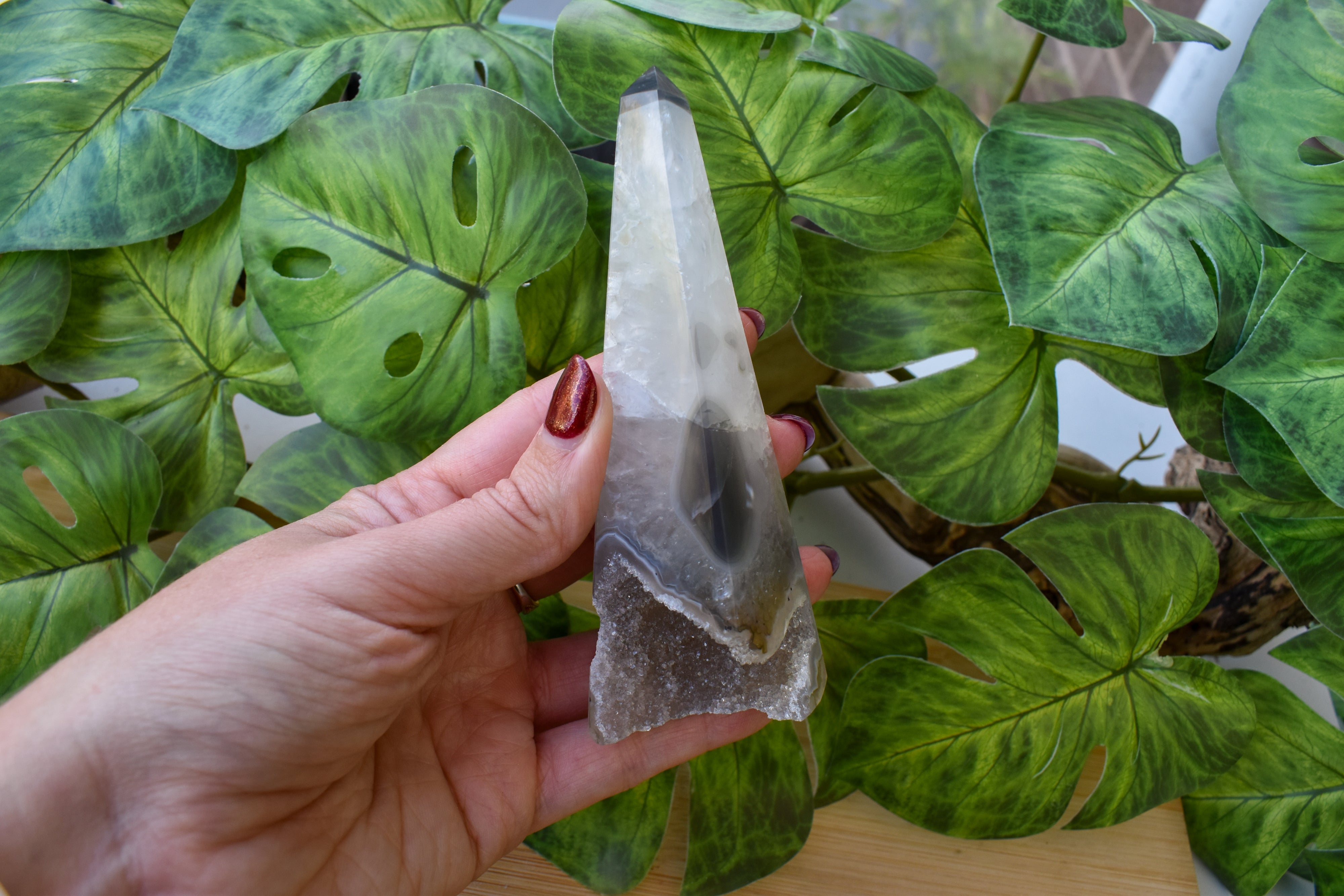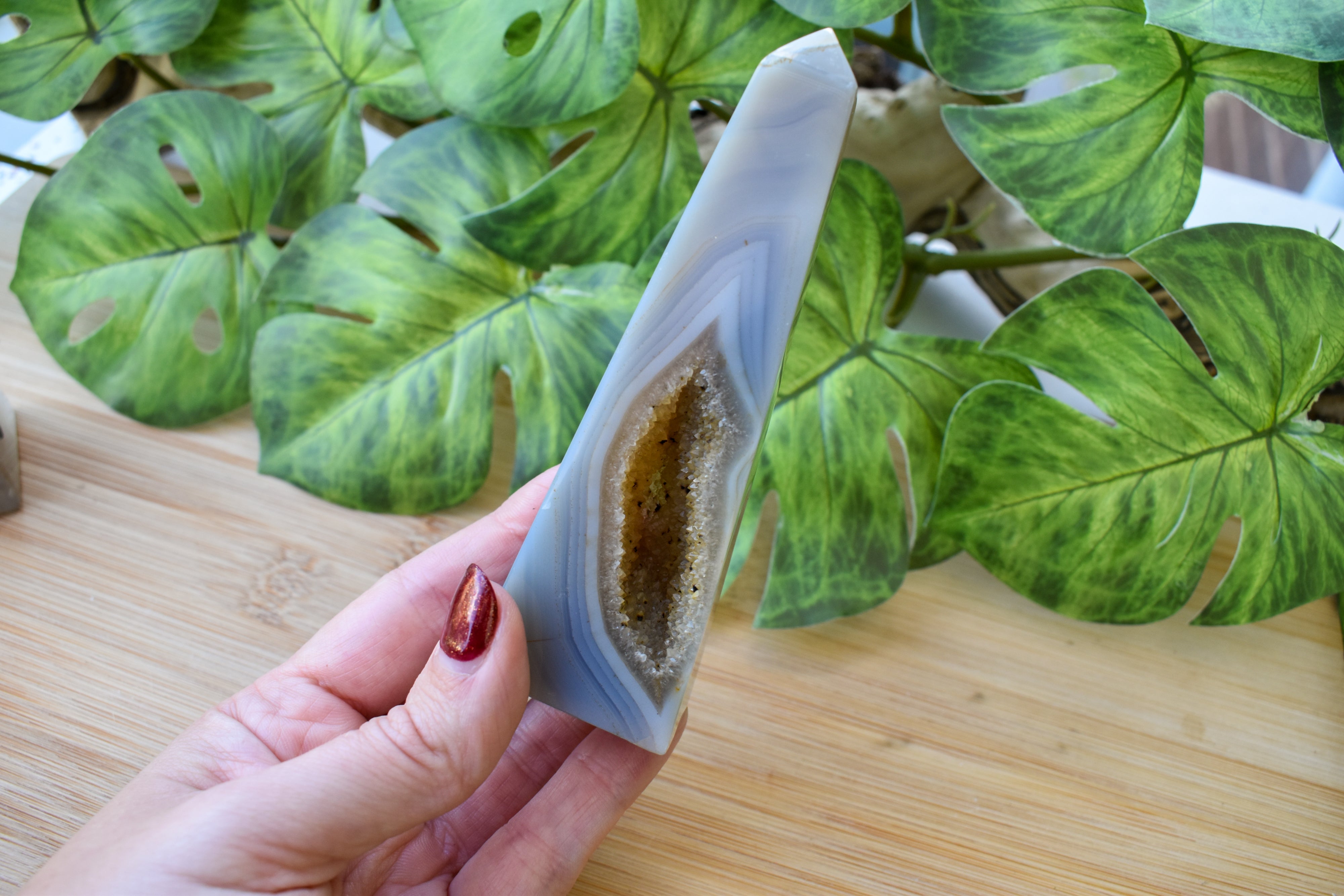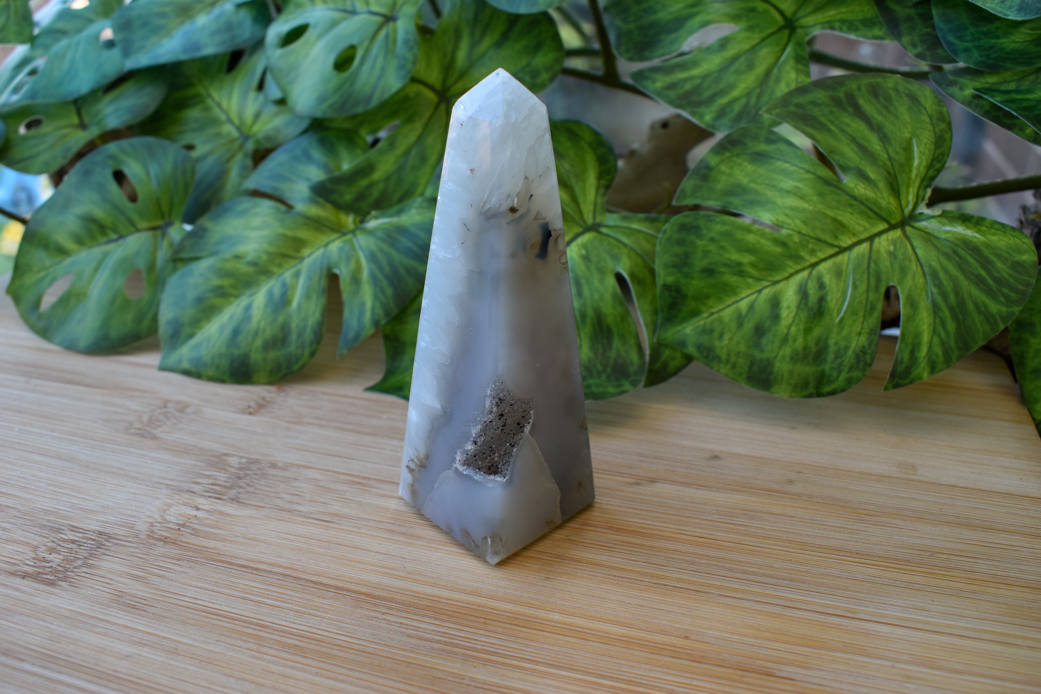 These are stunning druzy banded Agate obelisks from Brazil. The obelisks are beautifully polished with very high quality, dazzling crystal formations and gorgeous banding across the towers.