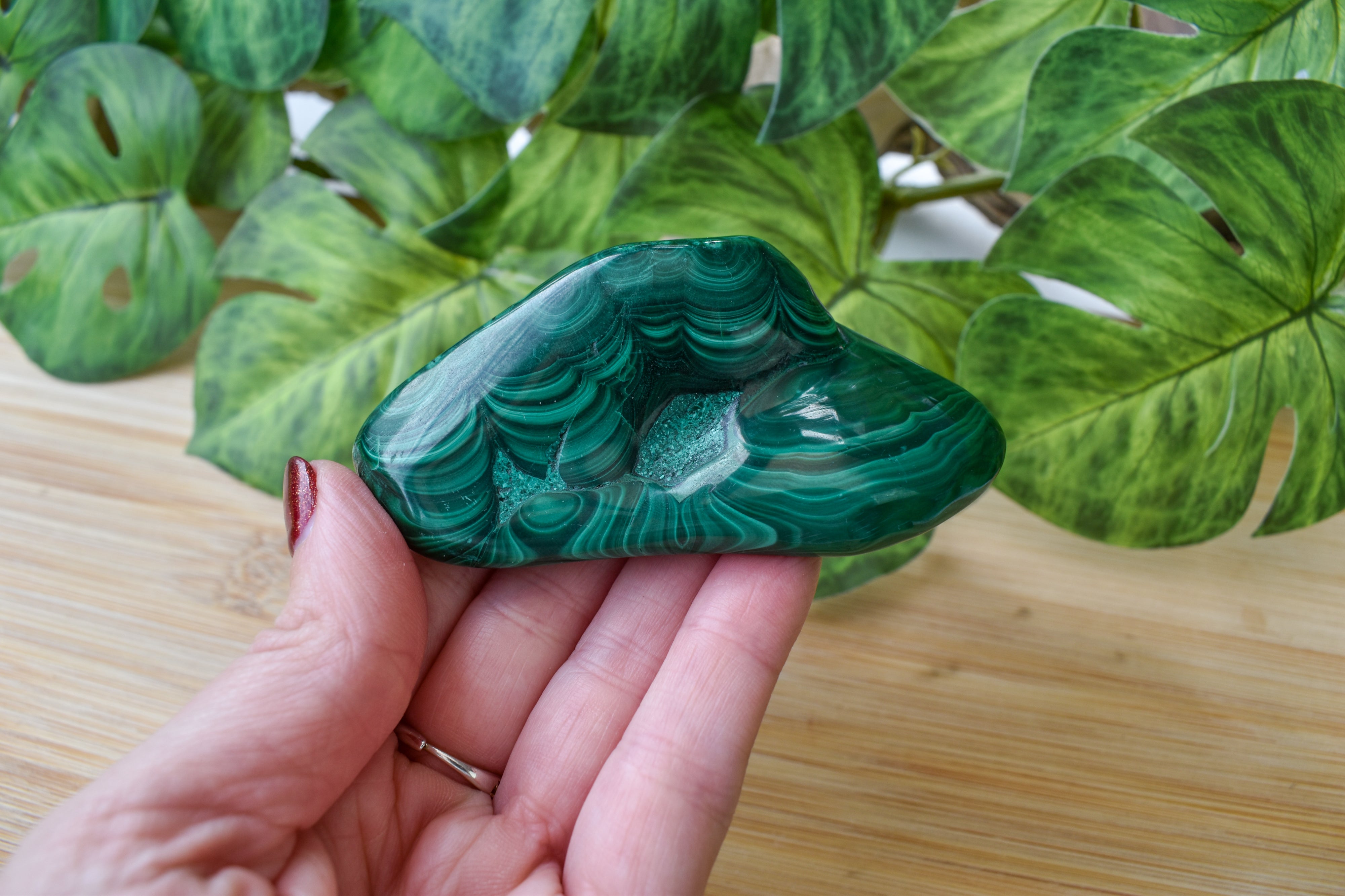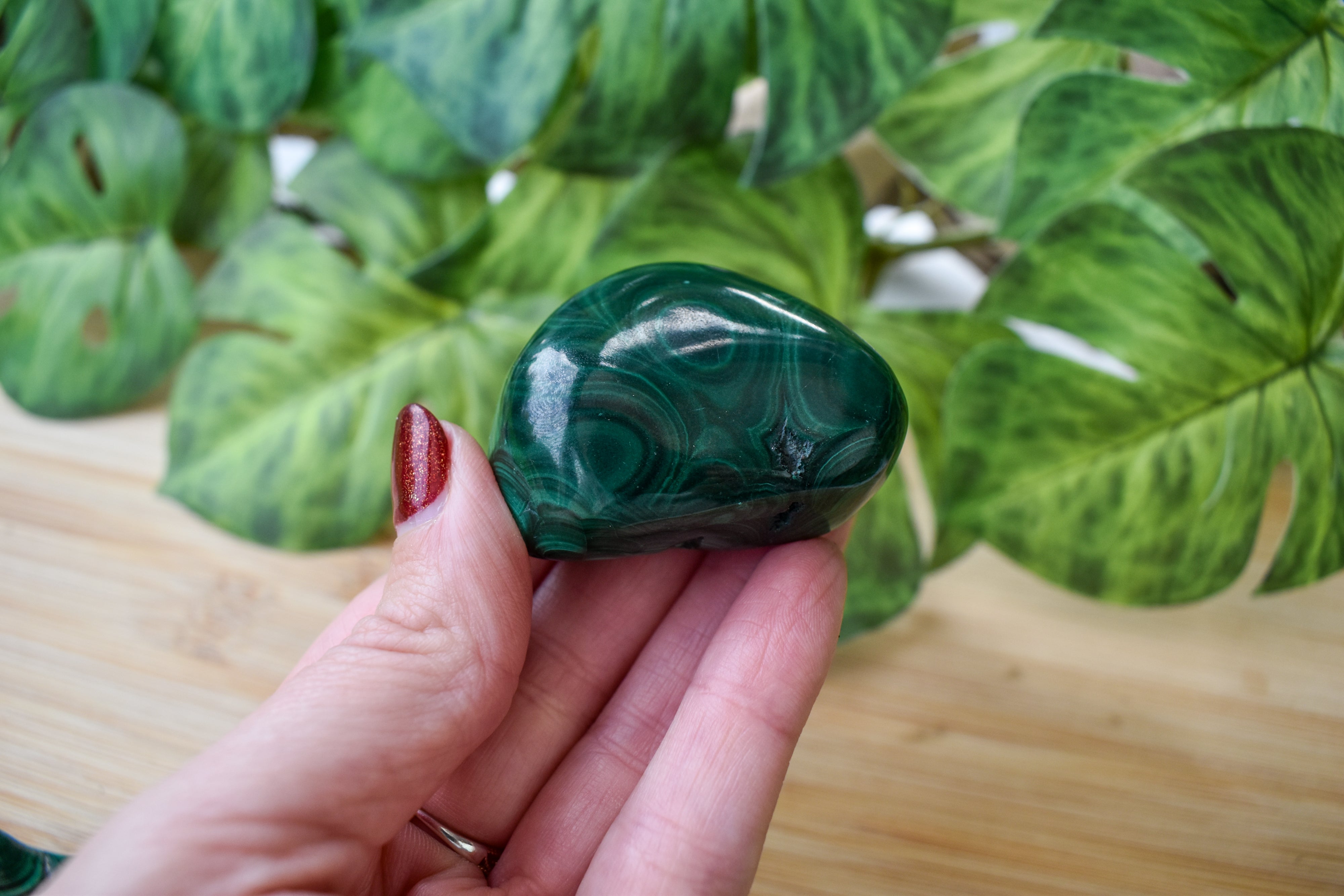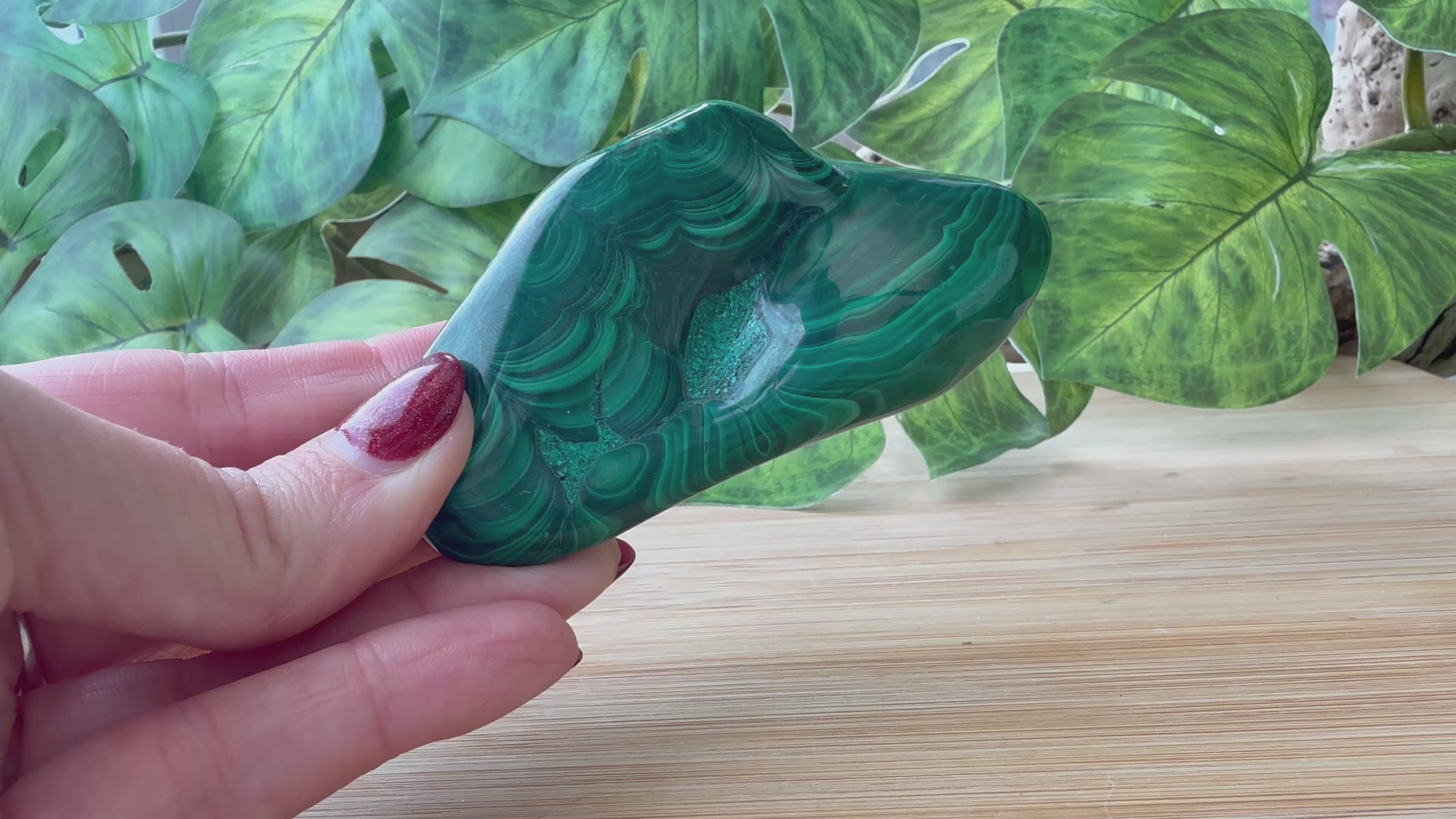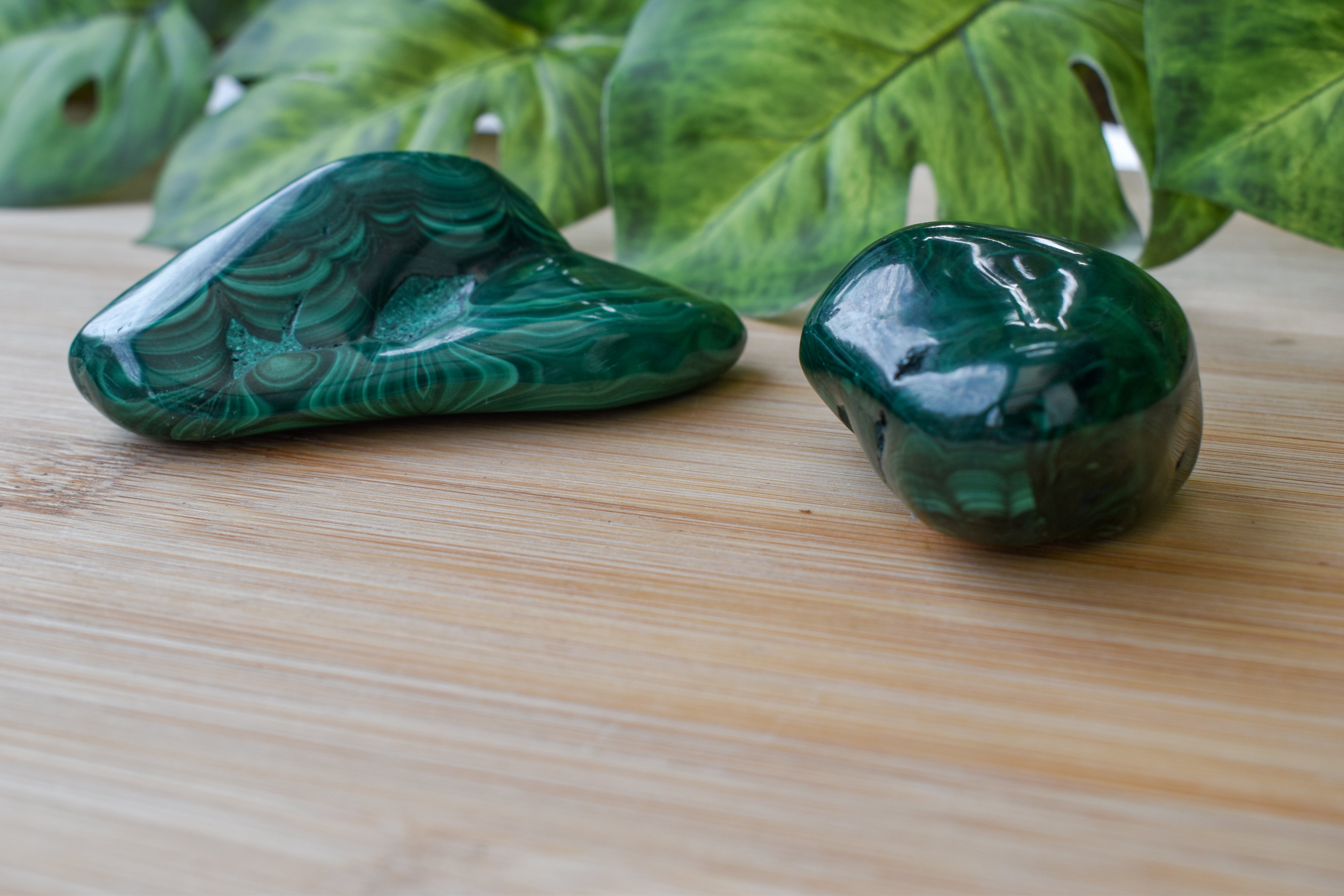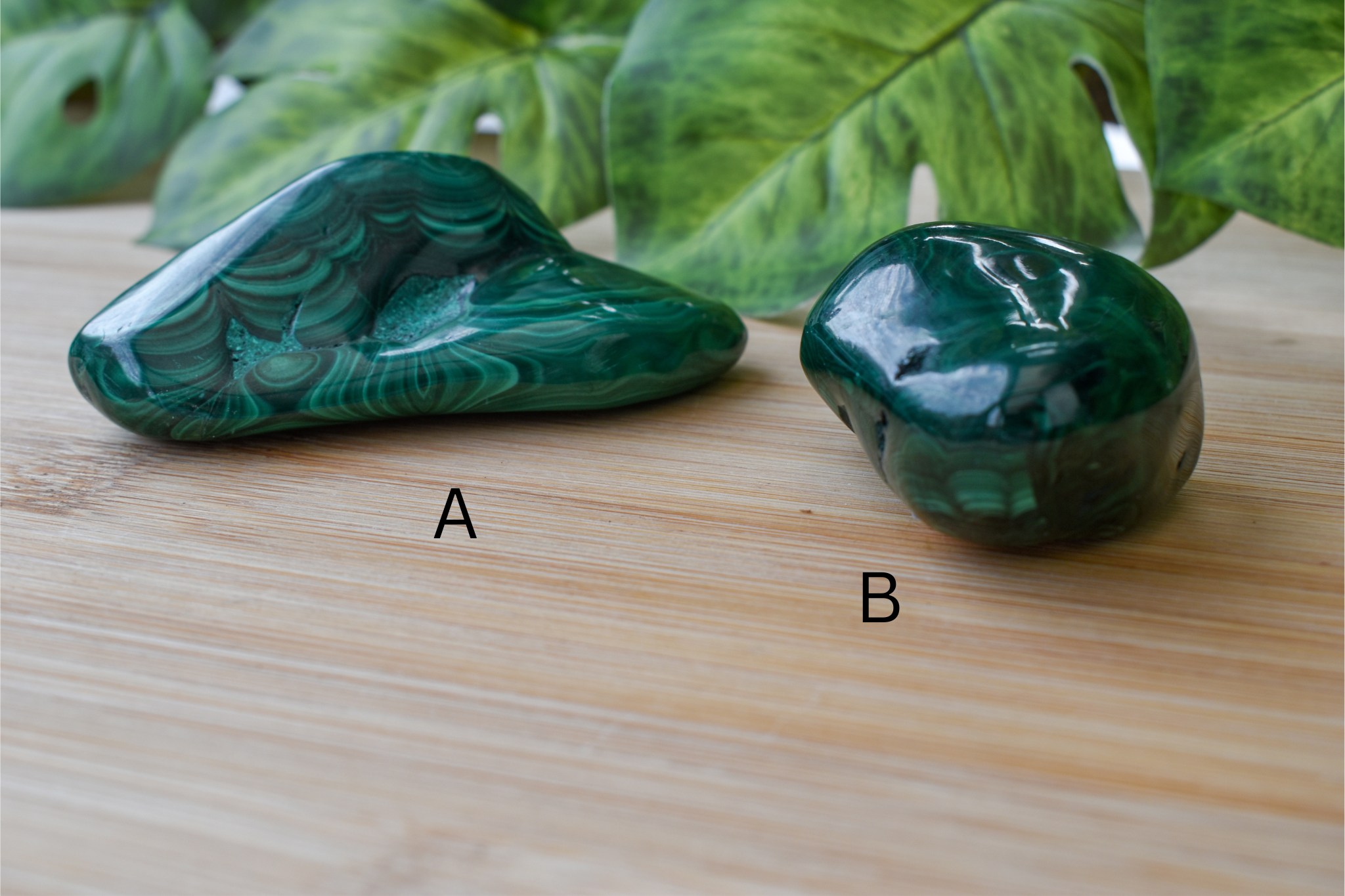 These are gorgeous high-grade polished Malachite freeform pieces, showcasing the stone’s signature rich green hues and striking banded patterns. Each piece is uniquely shaped and polished to a smooth, glossy finish, making it a stunning addition to any crystal collection, display, or meditation space.