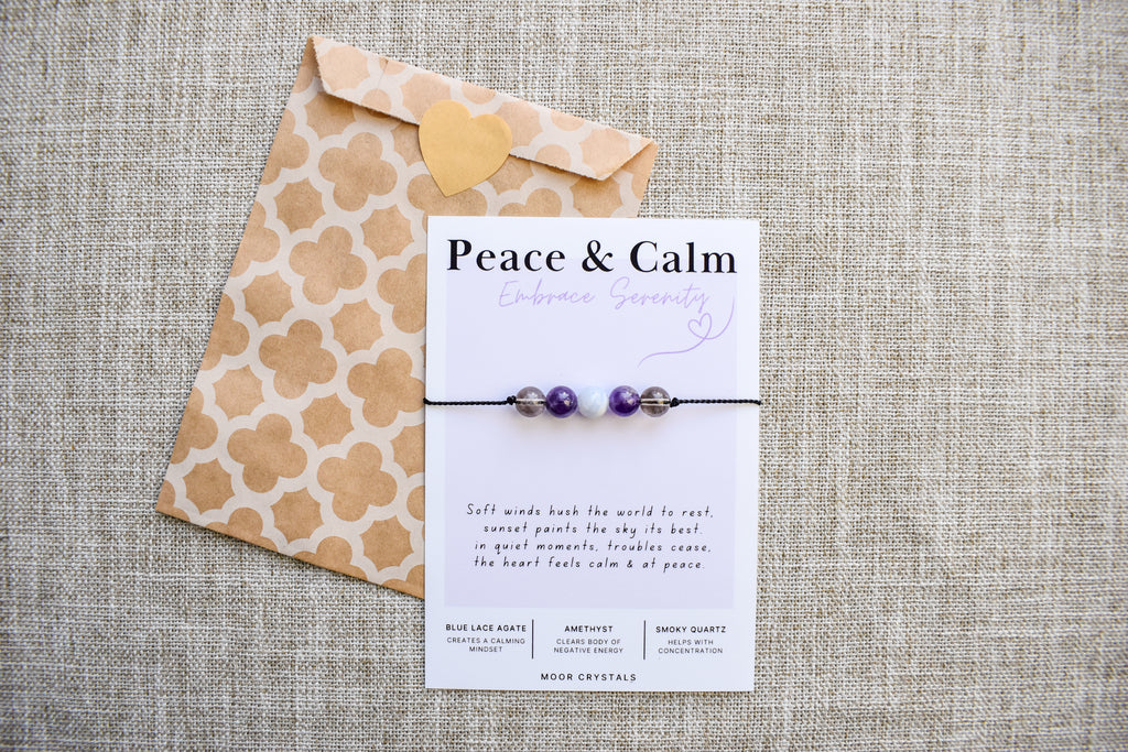 Peace & Calm Crystal Bracelet / Anklet: Black or White Silk Cord