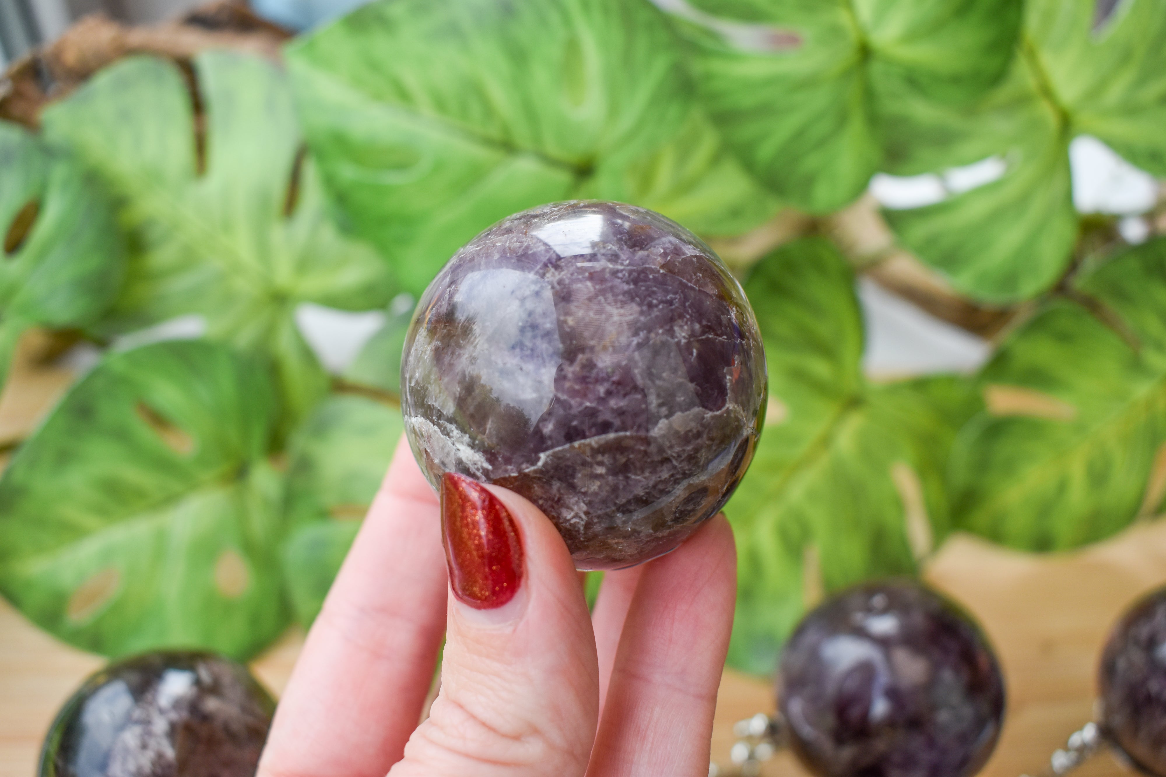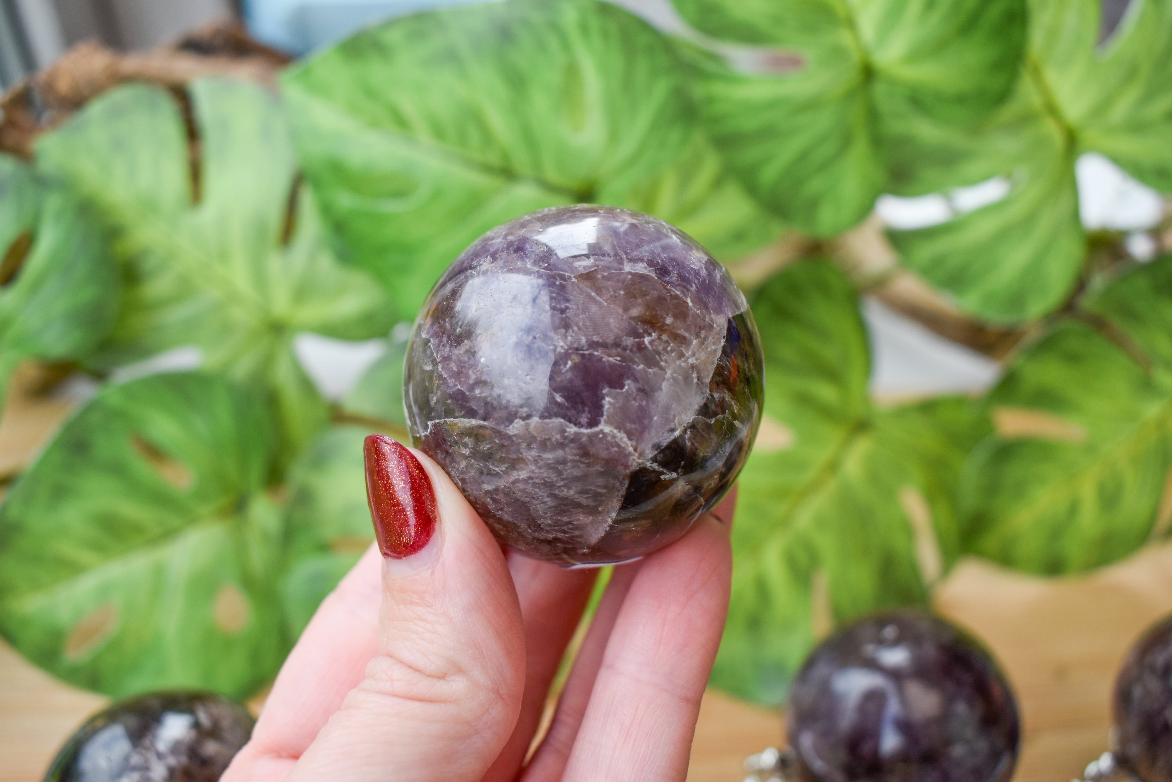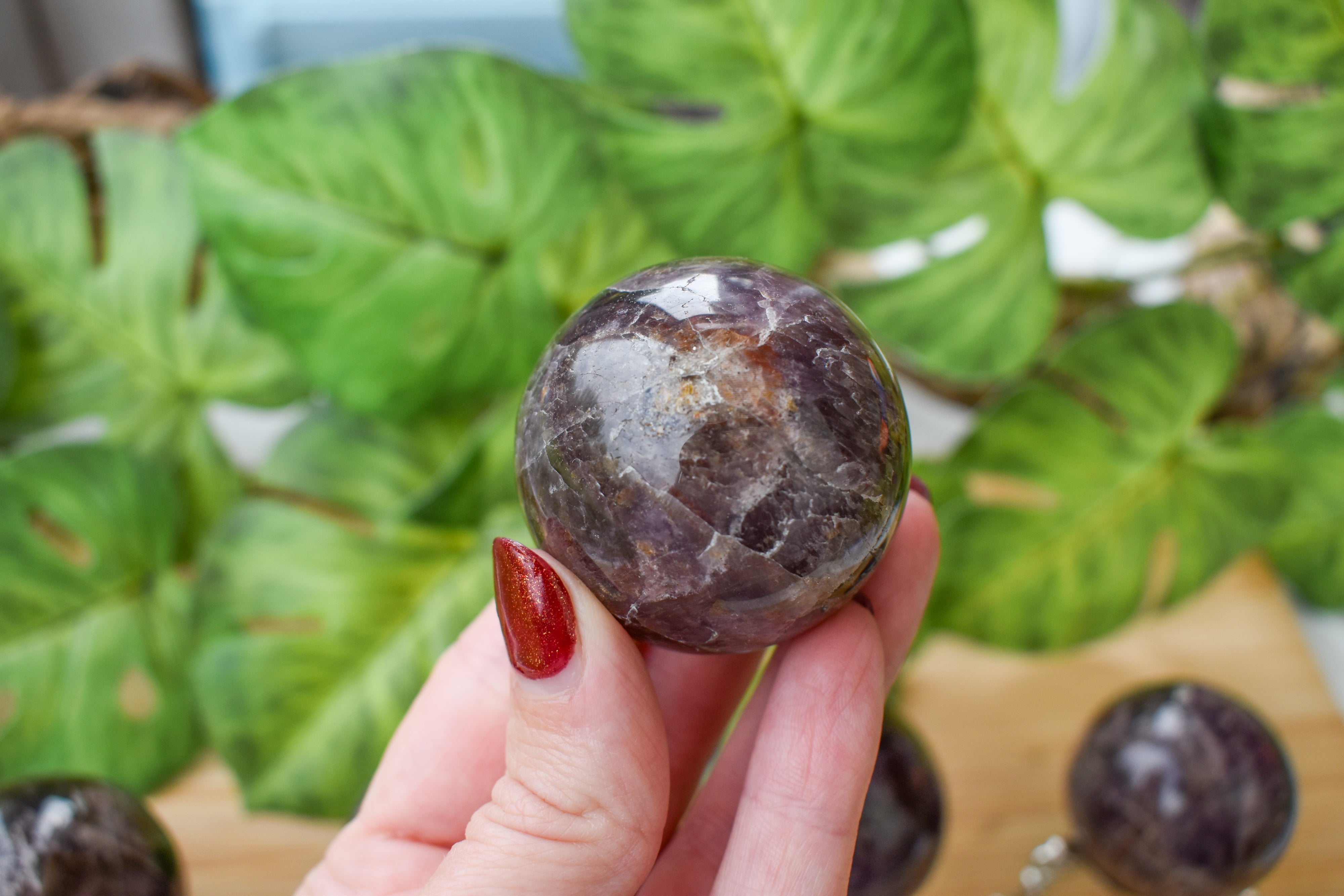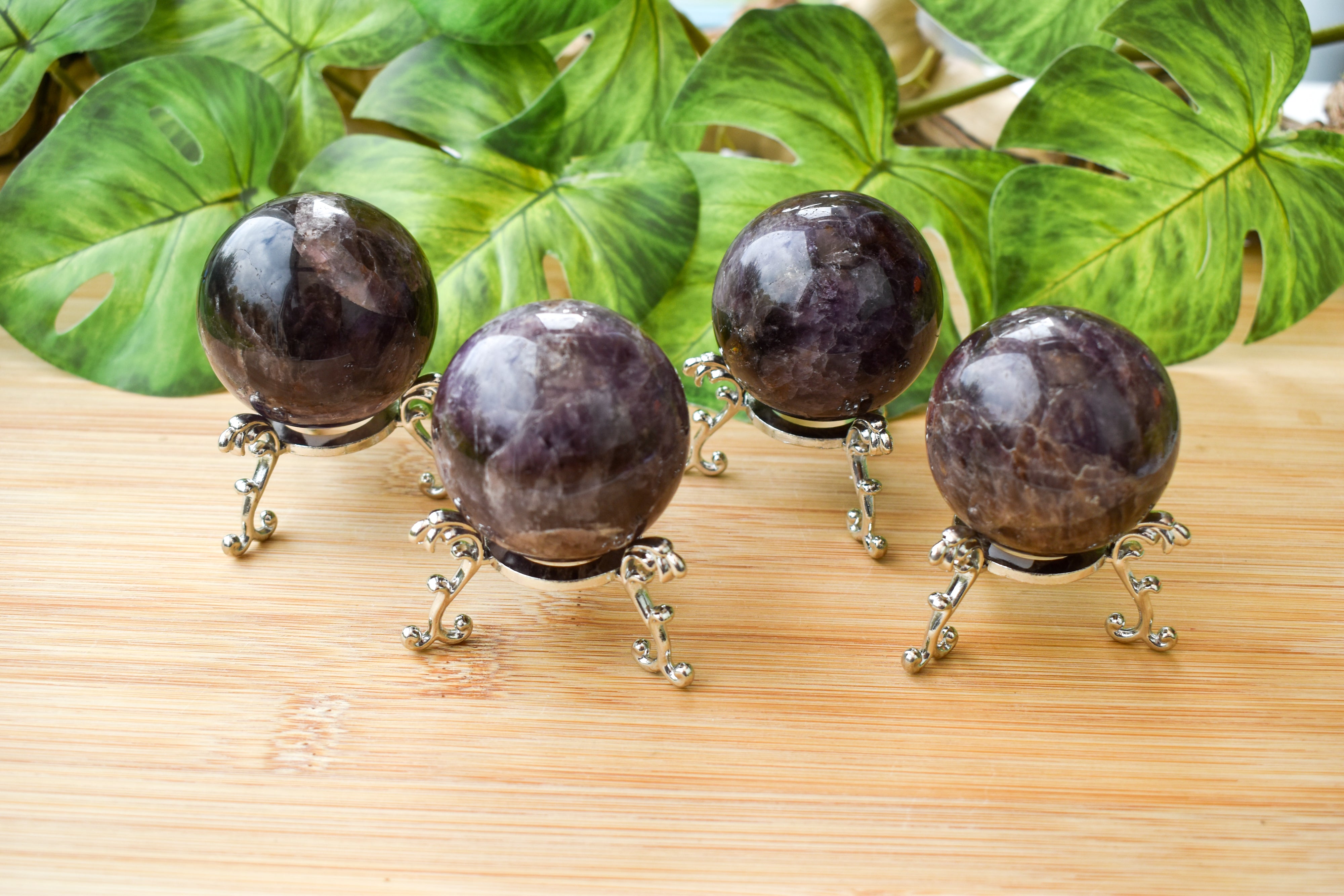 These are stunning Grade A, Super Seven spheres sourced from Brazil. The spheres are all very high quality with beautiful patterns and colouring typical of this rare crystal combination stone.