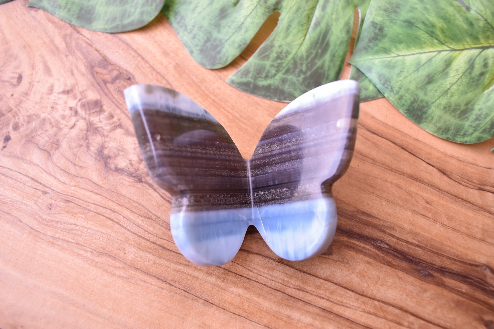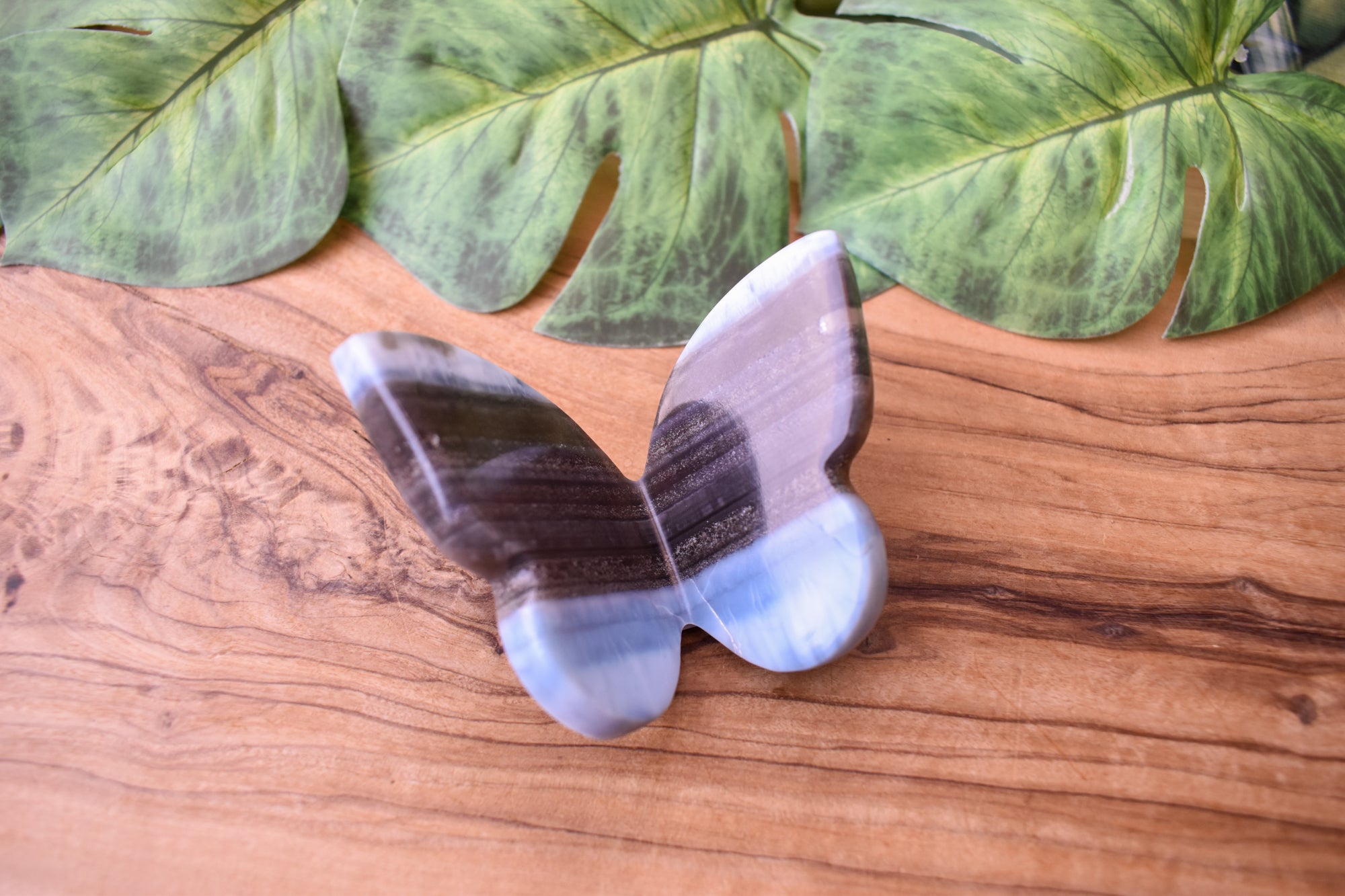Along with your Blue Opal 3D Butterfly, you will also receive one of our helpful crystal description cards, providing information about this beautiful and nurturing stone.