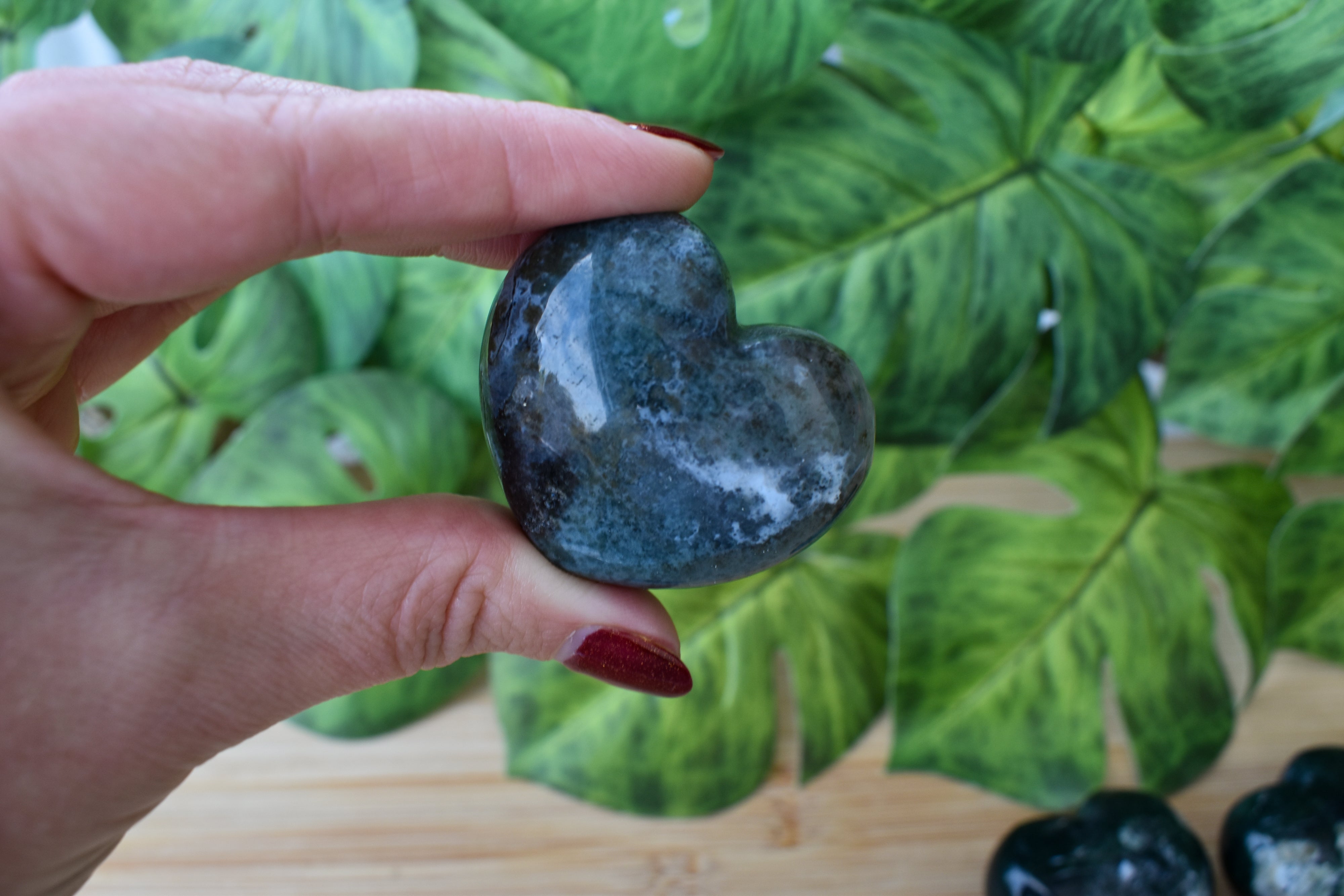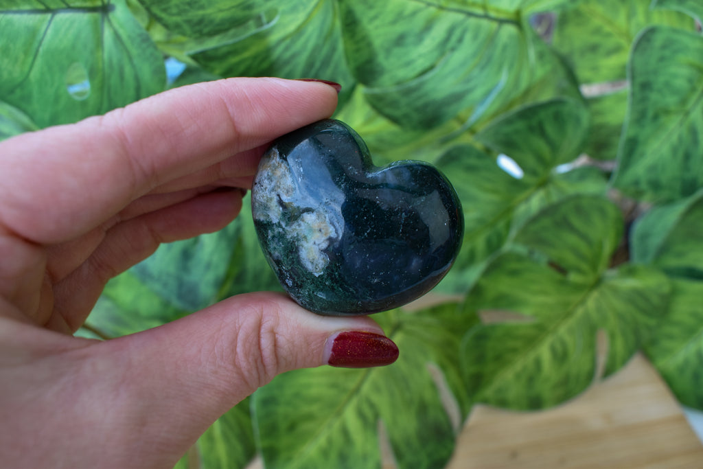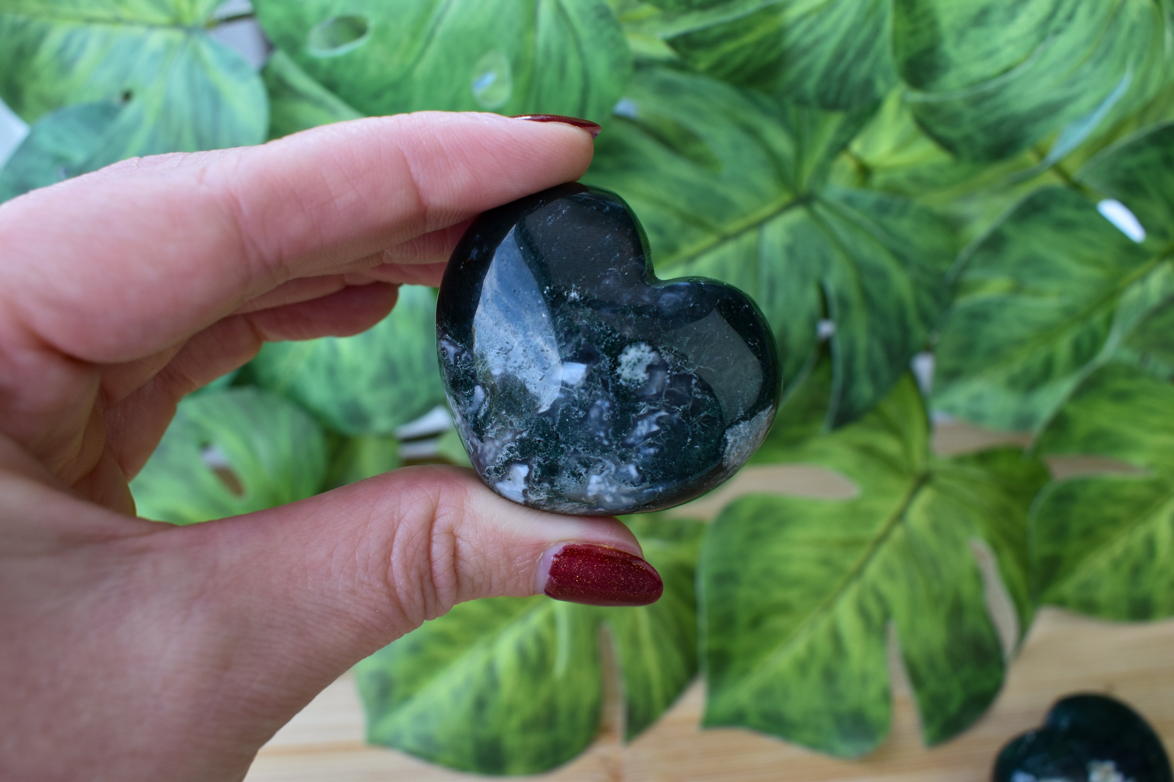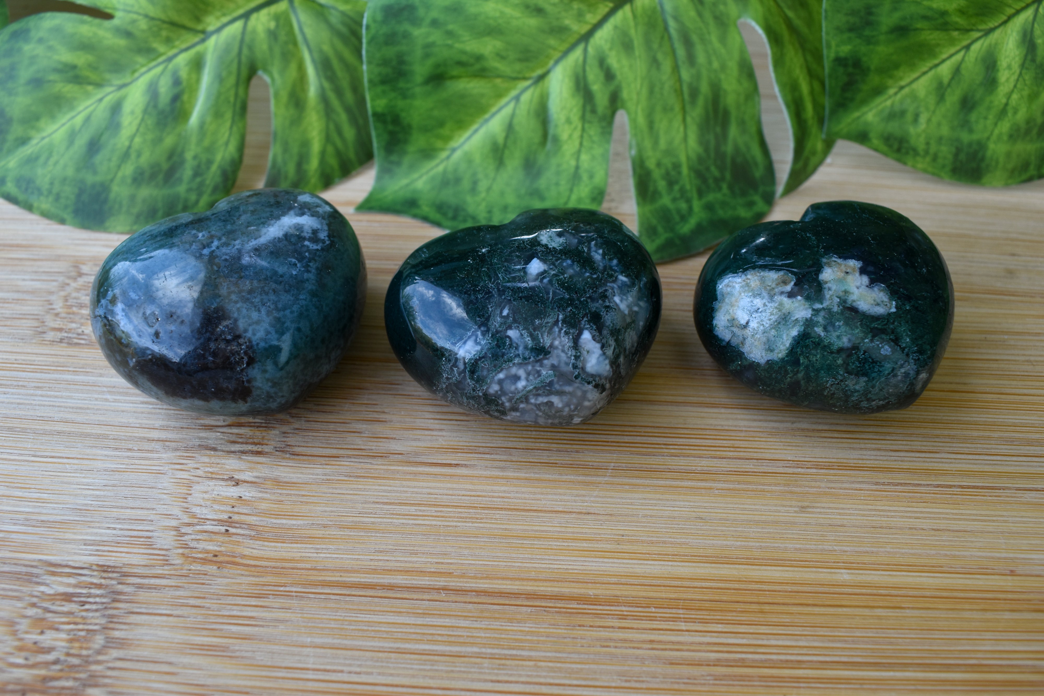 These are high quality green moss agate hearts. They are a lovely dark green colour with beautiful light green and blue hues.