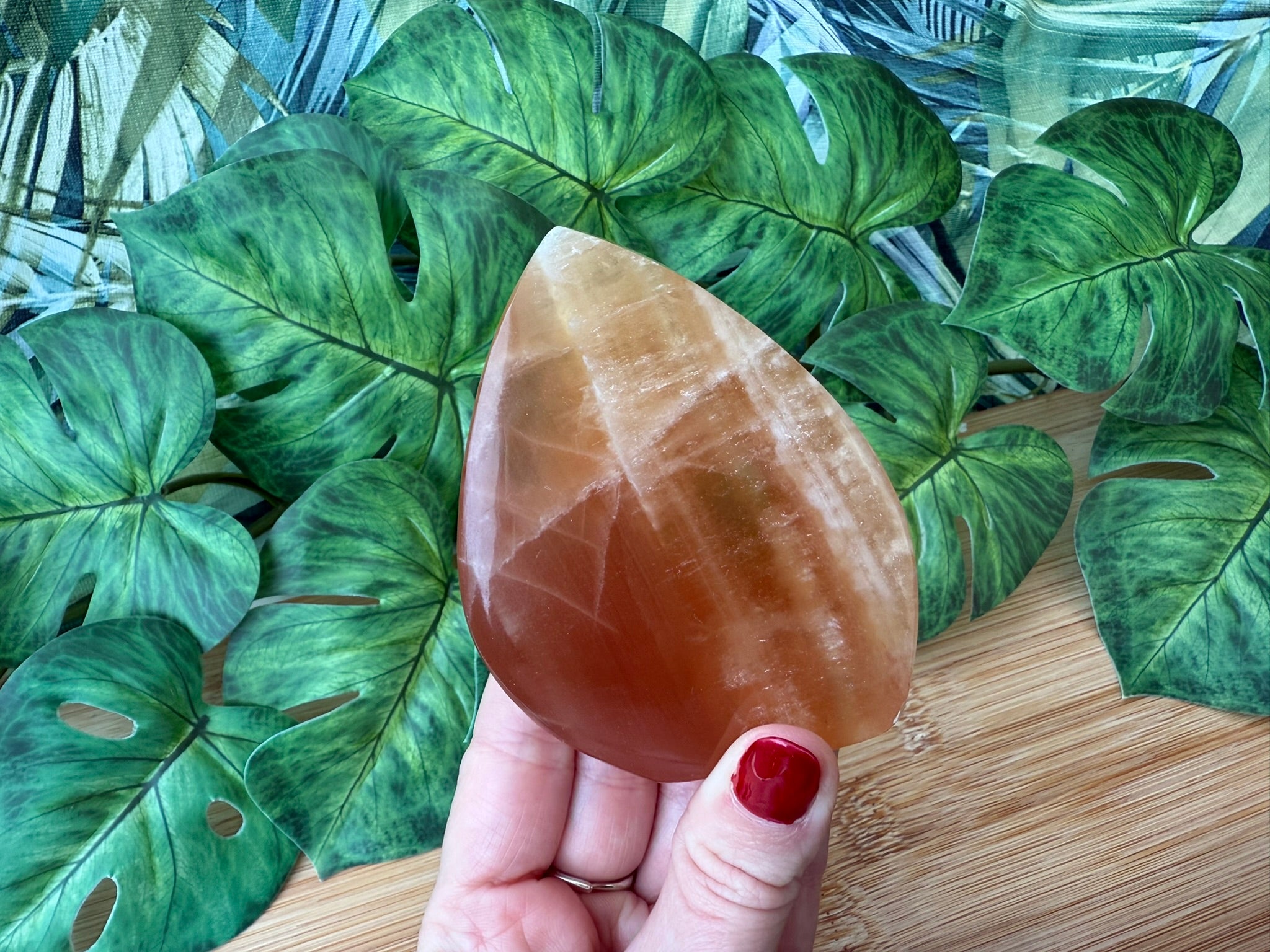 Carved into a flame, this piece symbolises inspiration, vitality, and transformation. The flame shape amplifies Honey Calcite’s energising qualities, making it a striking addition to meditation spaces, altars, or decorative displays. This crystal flame radiates warmth and motivation, bringing light and encouragement to any environment.