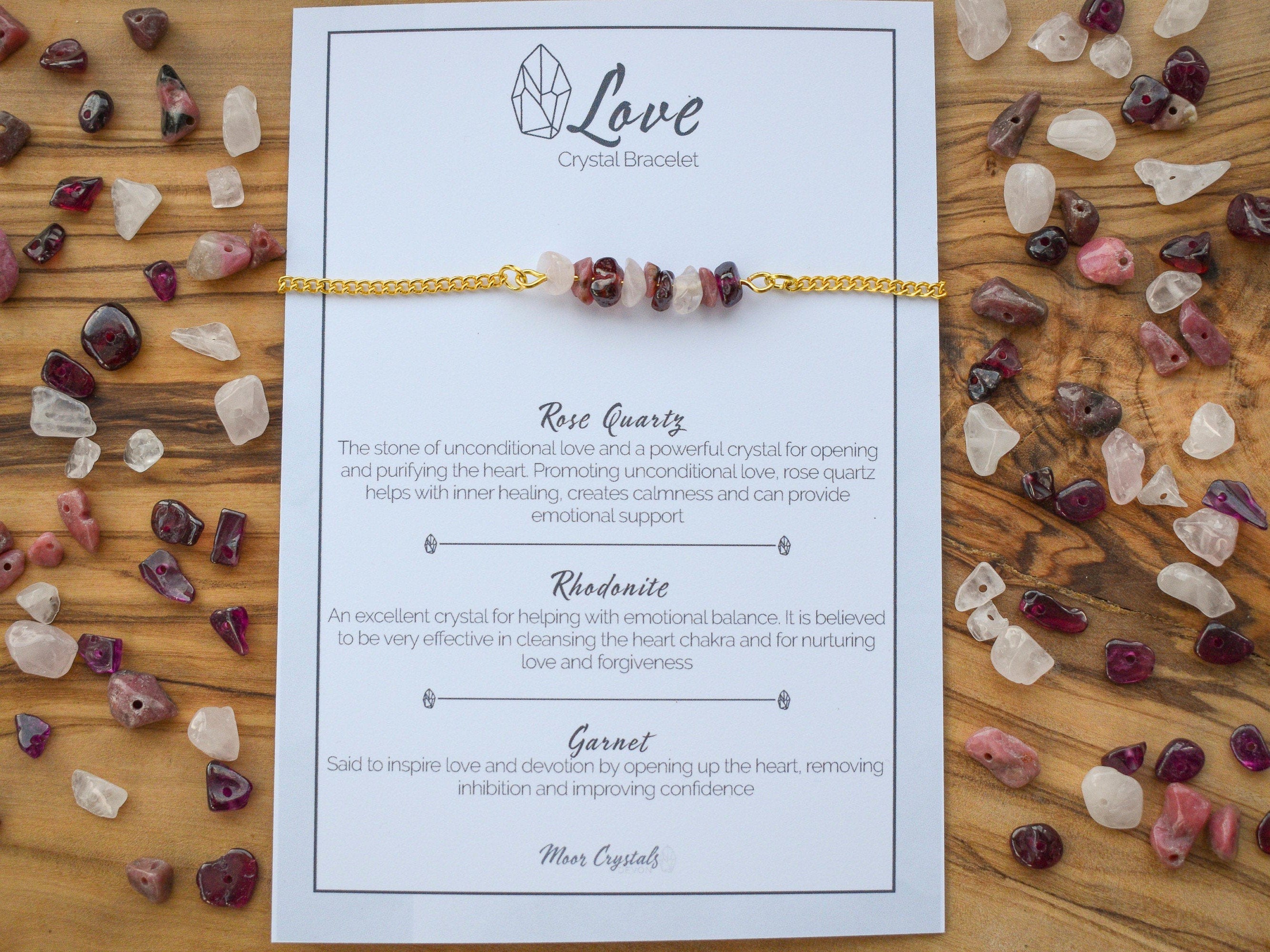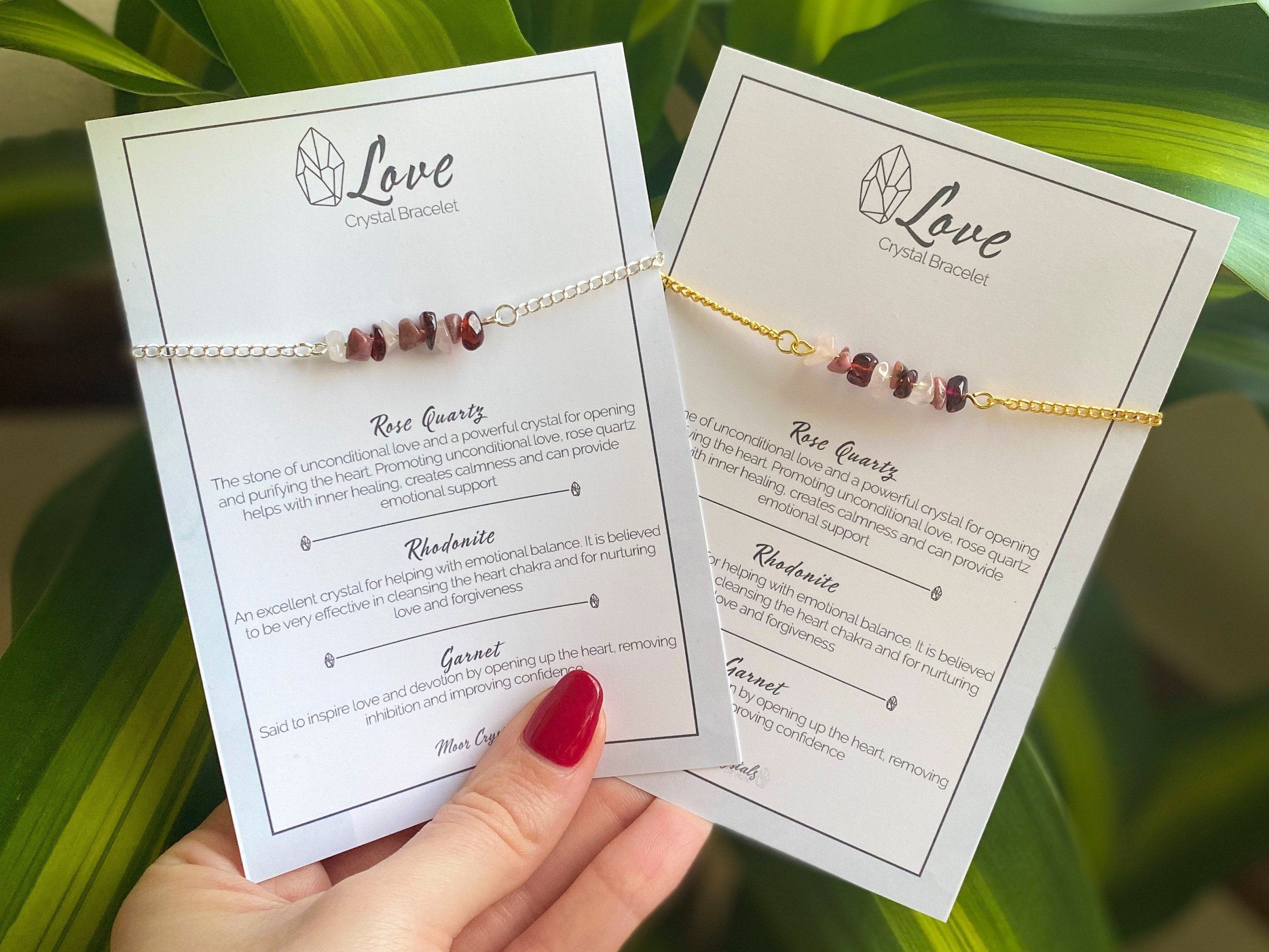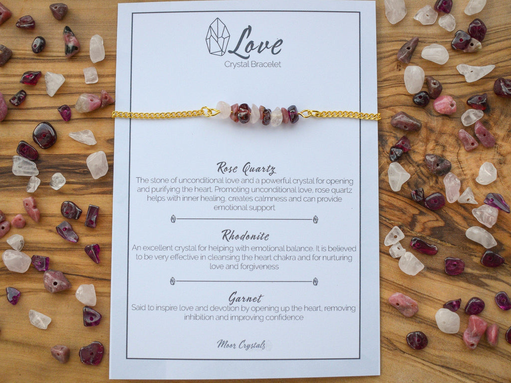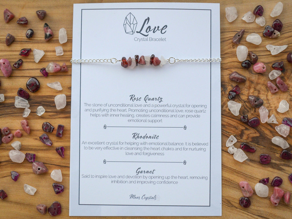 This handmade crystal bracelet is made up of unique crystals especially selected for their properties in supporting love and companionship. The crystals are individually selected to make a perfect present for a loved one or a gift to yourself to help you encourage love into your life.
