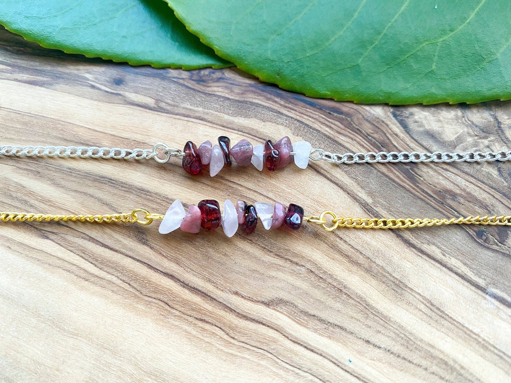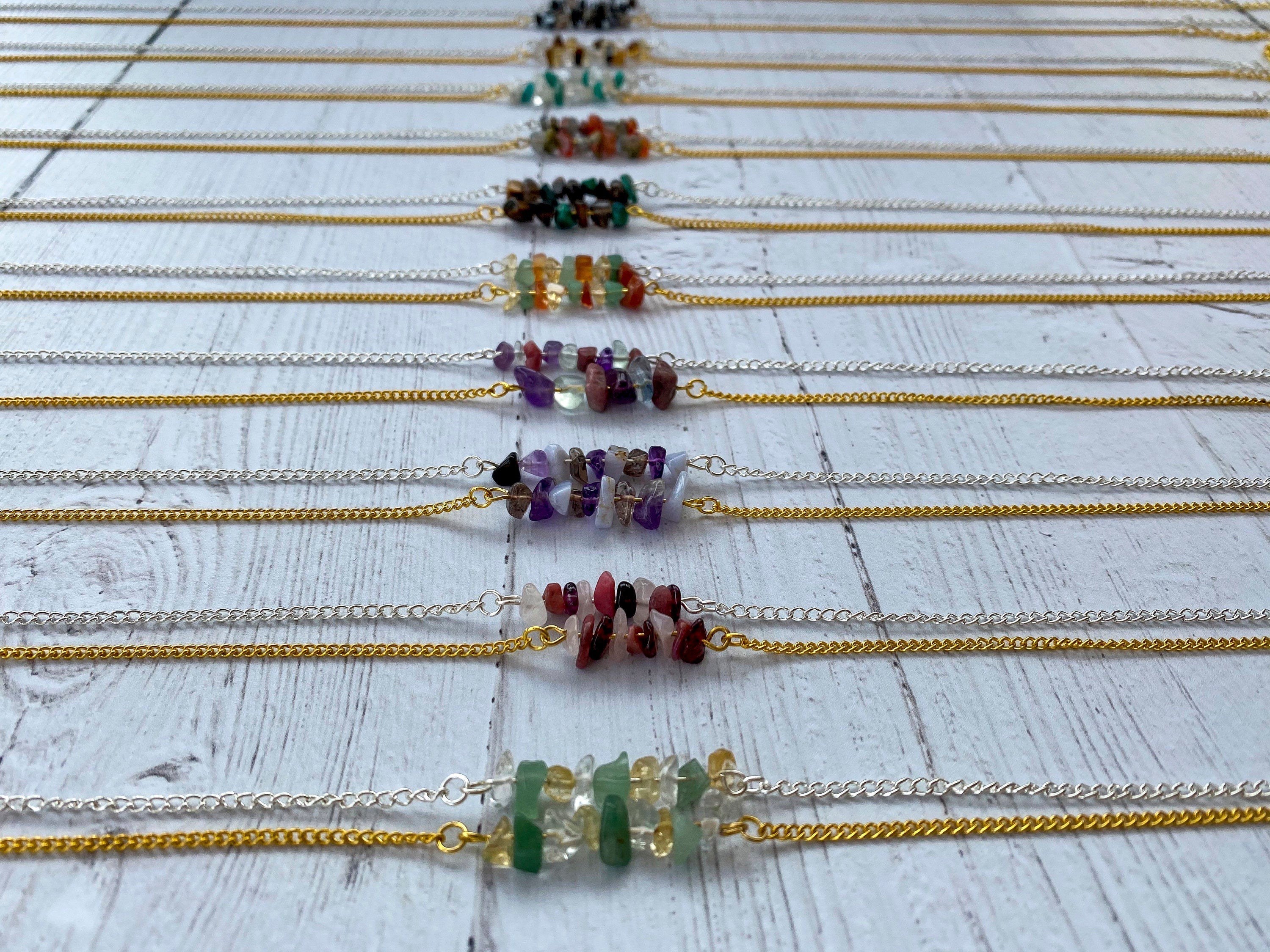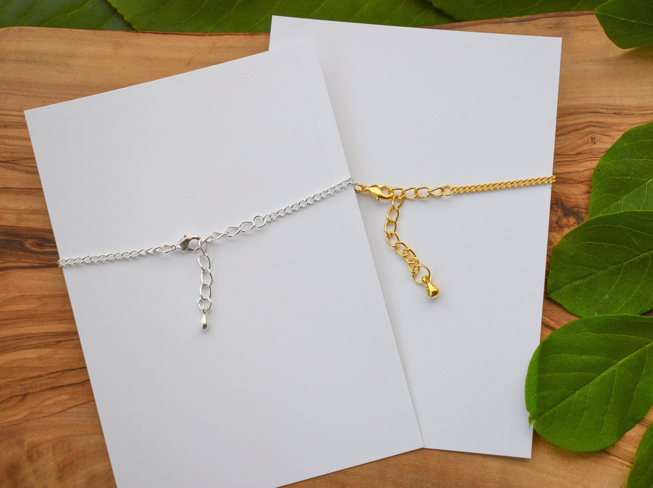I make these bracelets with either 9 or 6 individual crystals, 3 or 2 of each crystal type, I use either 9 smaller or 6 larger crystals depending on what I have available. Made using gold and silver plated chain to make my jewellery affordable for all. Available in your choice of either gold or silver plated chain with an extension chain and clasp to adjust the length of the bracelet for the perfect fit.