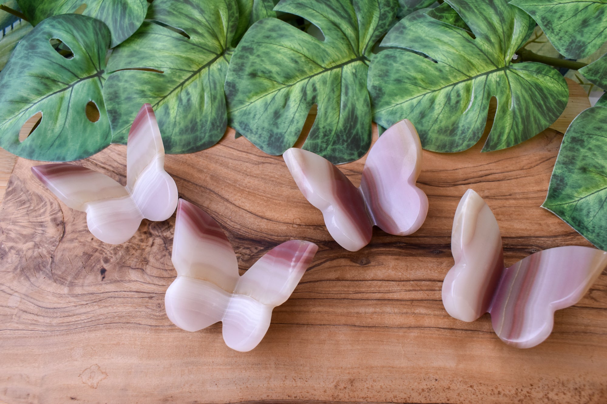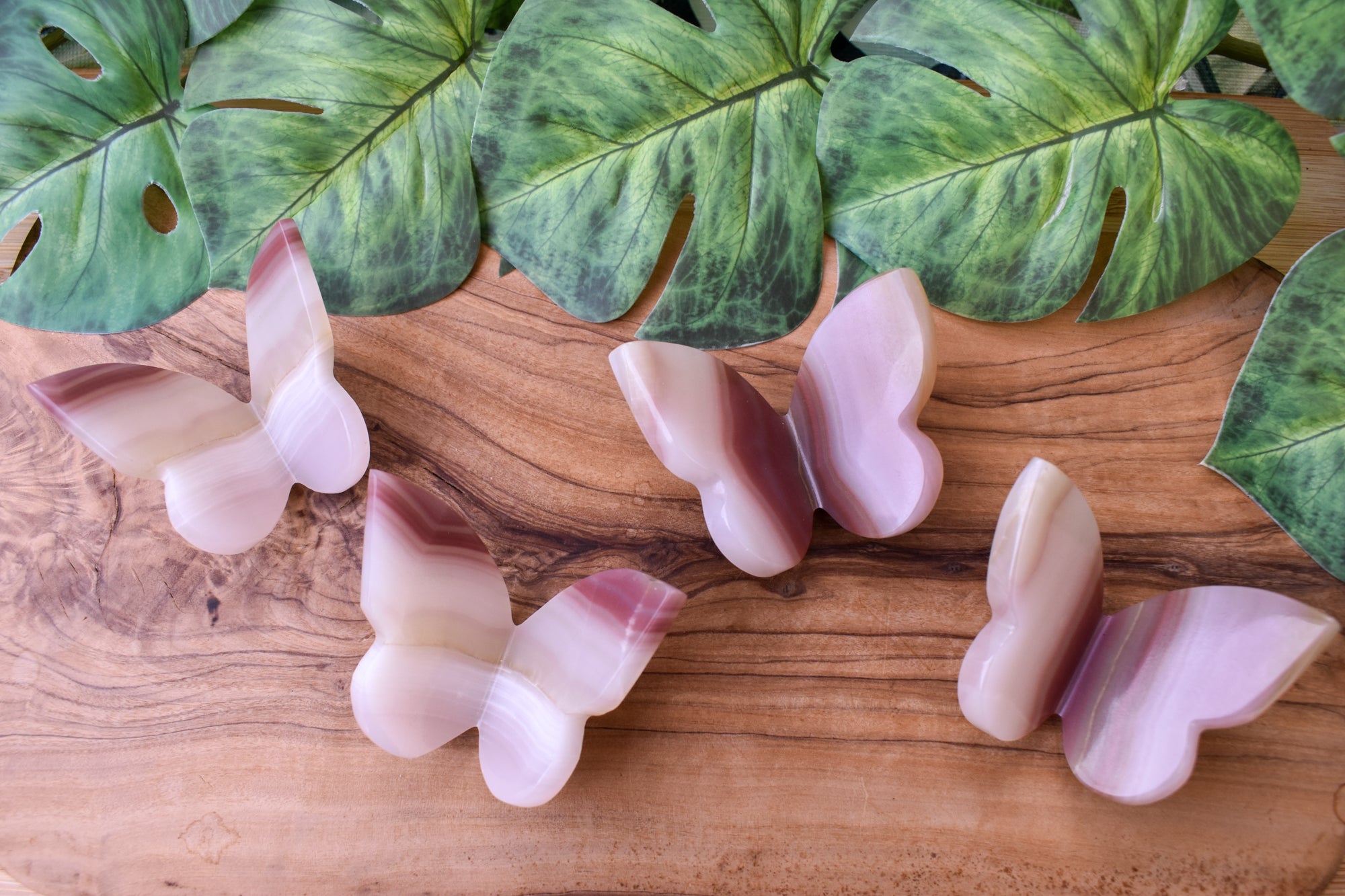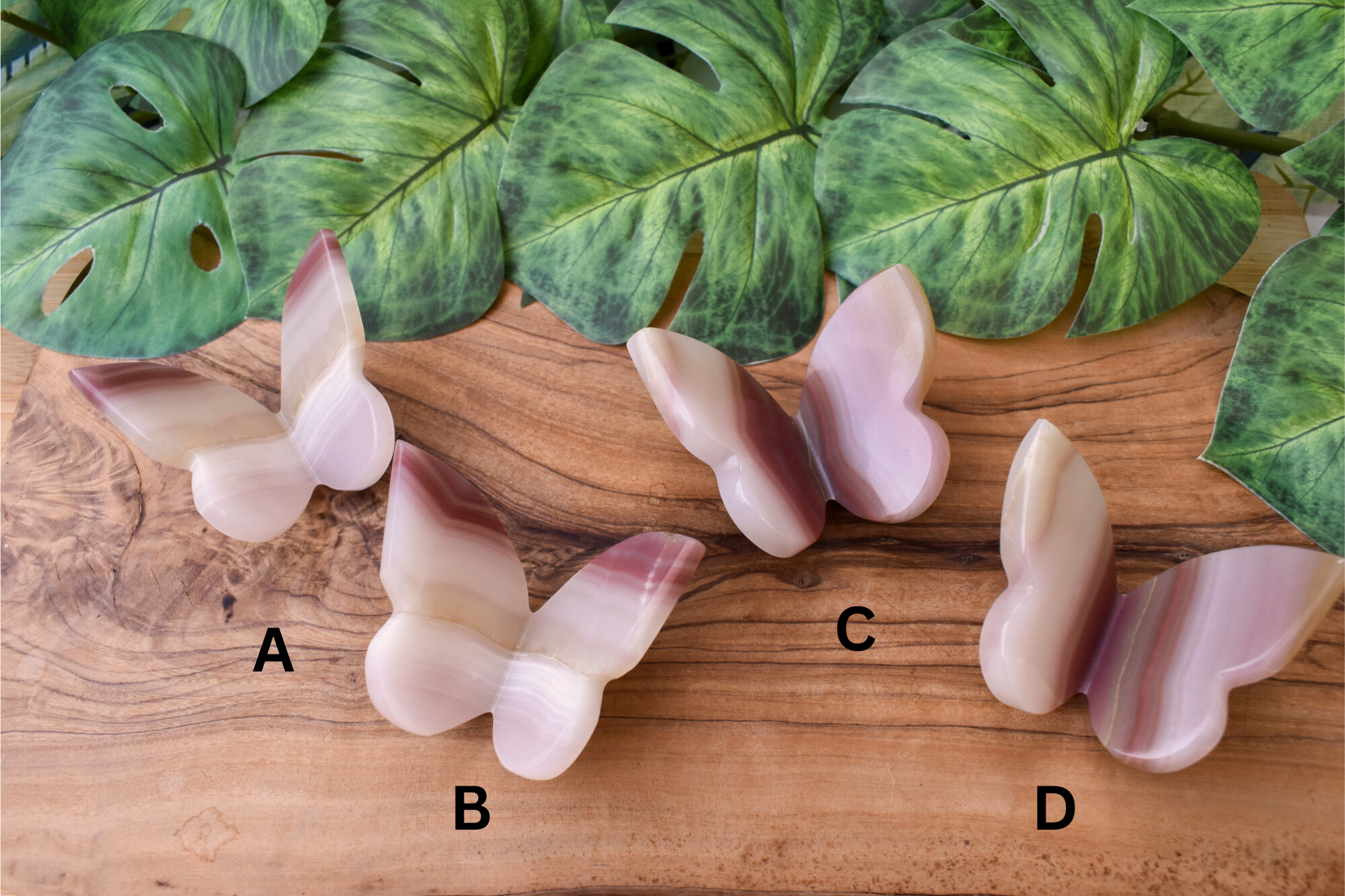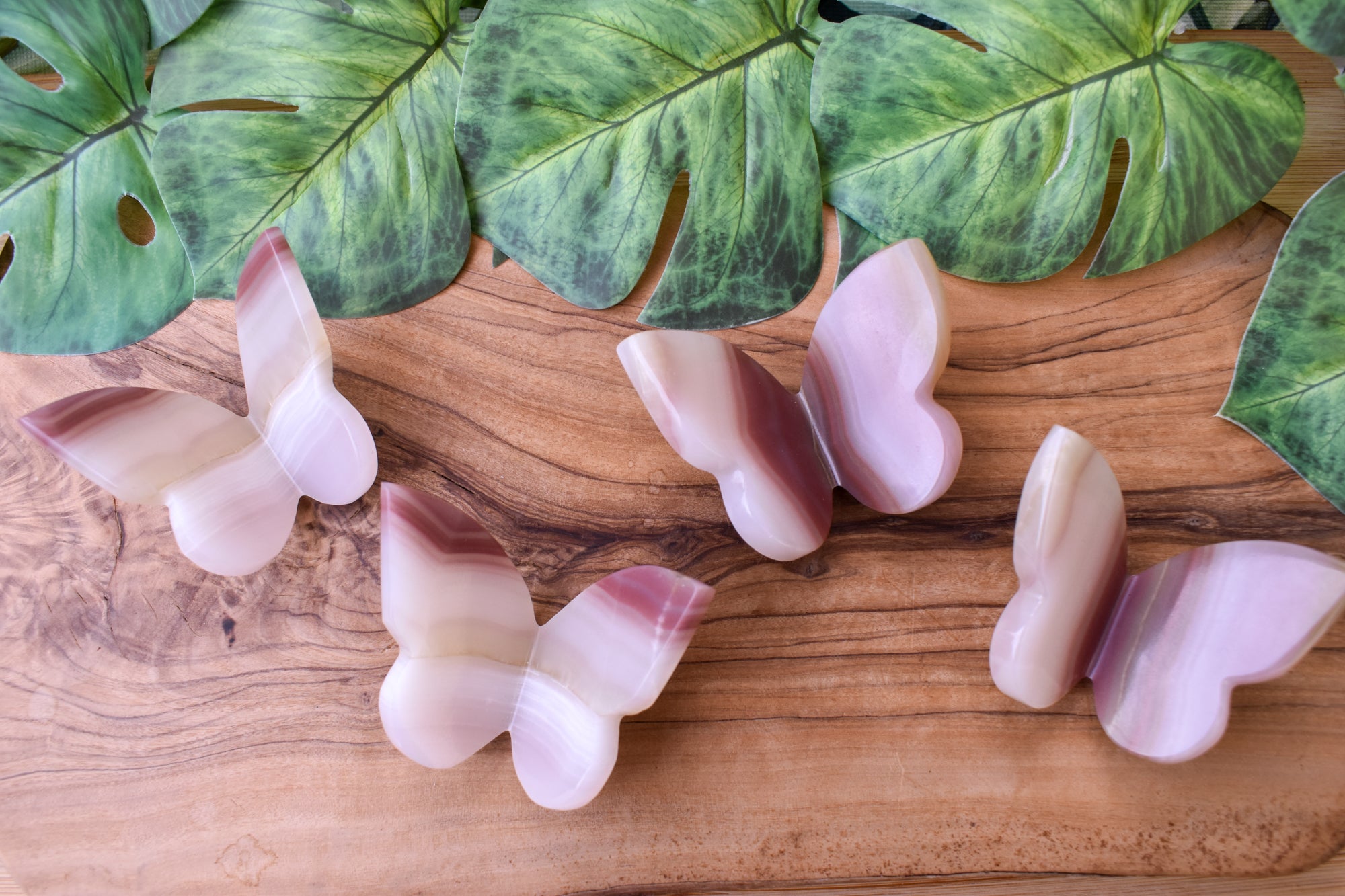 Along with your Pink Banded Calcite 3D Crystal Butterfly, you will also receive one of our helpful crystal description cards, providing information about this gentle and comforting stone.