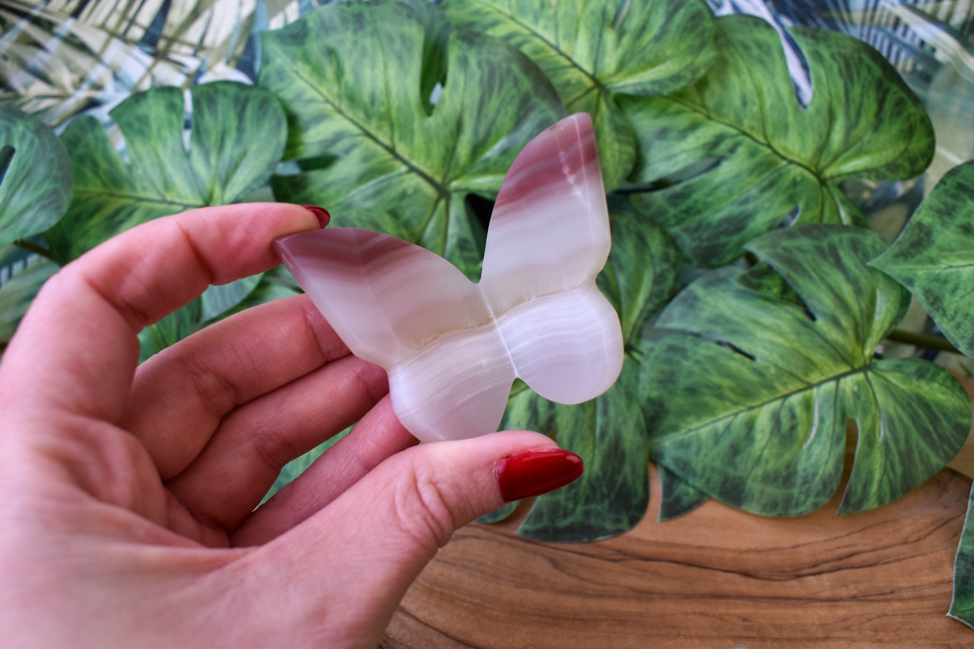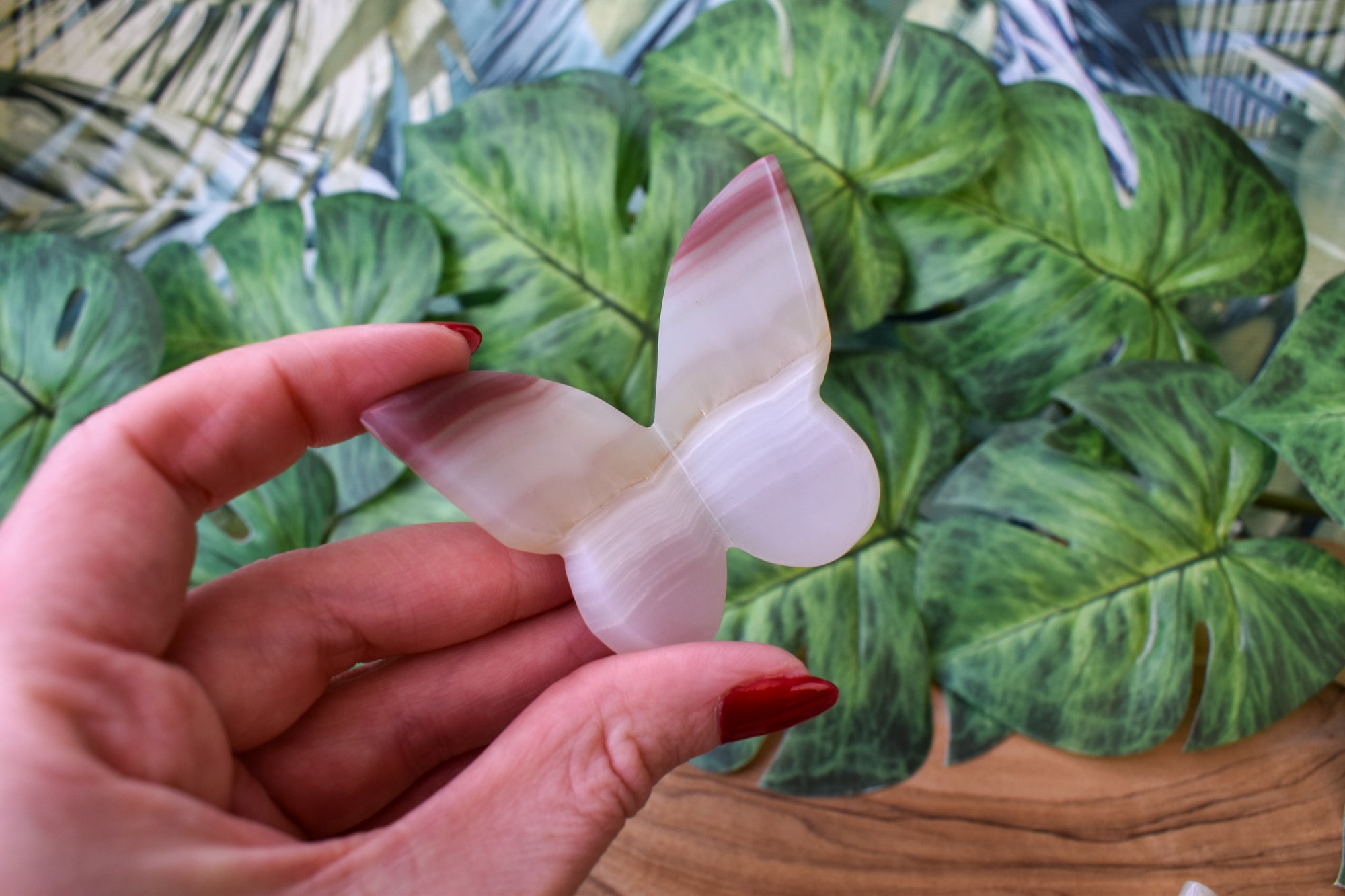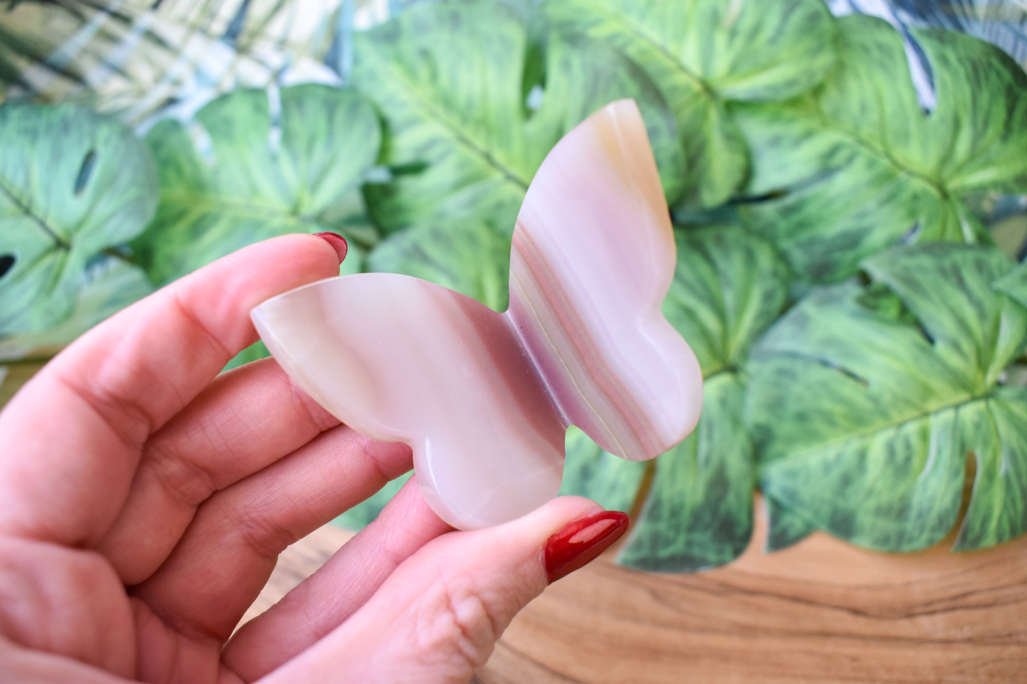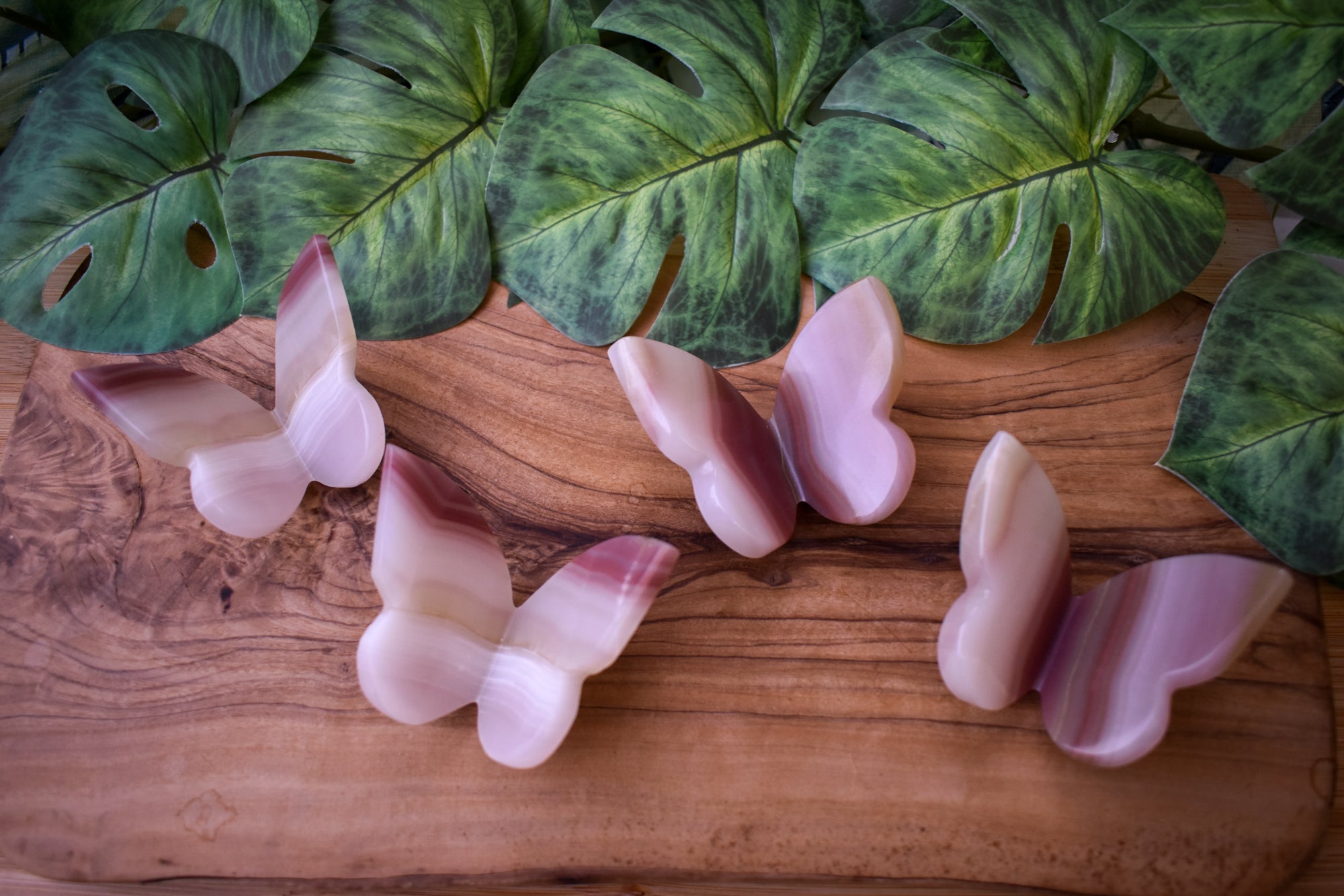 Along with your Pink Banded Calcite 3D Crystal Butterfly, you will also receive one of our helpful crystal description cards, providing information about this gentle and comforting stone.