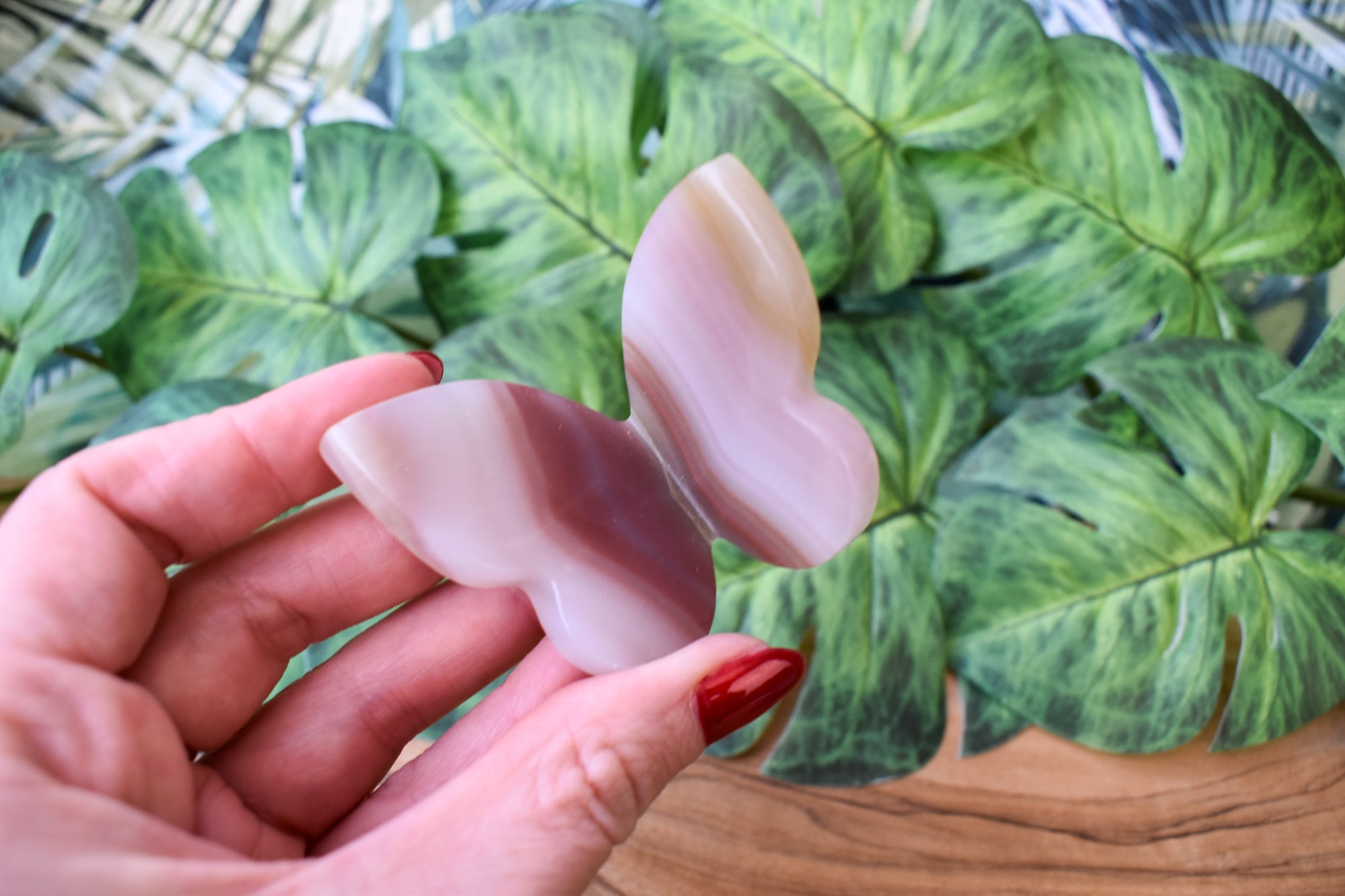 The butterfly symbol represents transformation, growth, and renewal, perfectly complementing Pink Banded Calcite’s ability to support positive change and emotional release. This delicate 3D butterfly carving radiates warm, supportive energy, making it a meaningful spiritual companion as well as a graceful decorative piece.