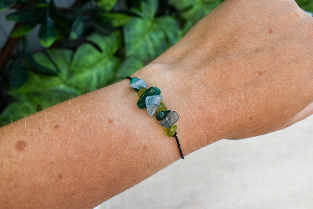 The jewellery is made up of 9 individual crystals, 3 of each crystal type selected for this bracelet. The crystals will vary in shape and size due to the individual nature of crystals.