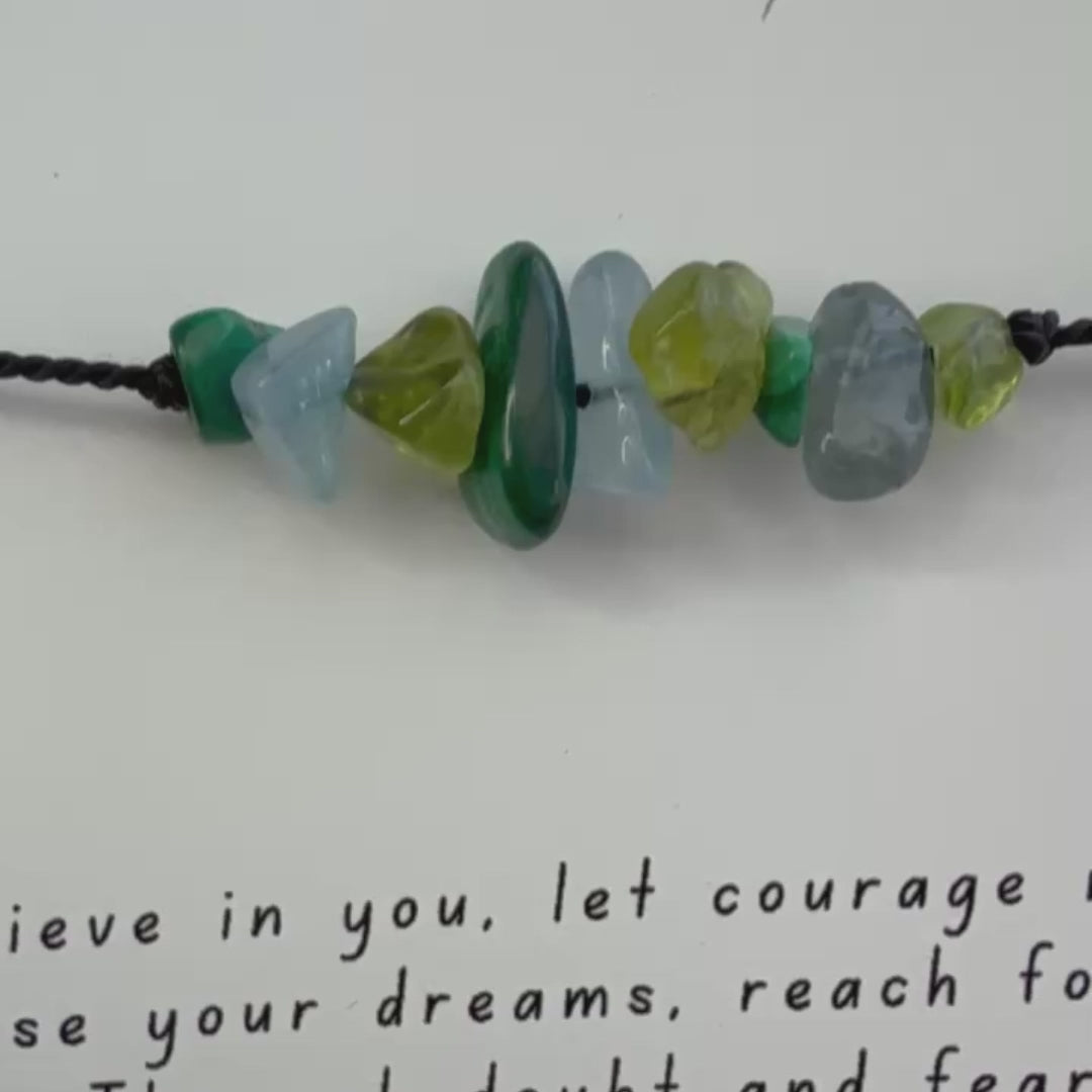 Your stress relief bracelet / anklet will be presented on a beautiful card that includes a thoughtful poem and also gives information on the crystals used. It also comes beautifully packaged as shown in the photos using 100% eco packaging.