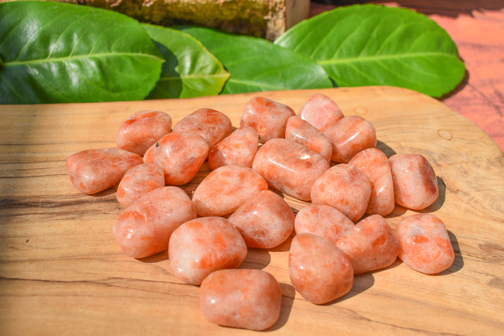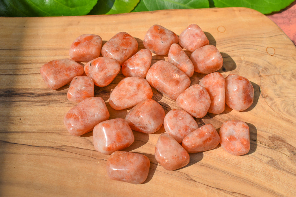 These are grade A sunstone tumble stones. They are a stunning bright orange with abundant orange and gold speckles.