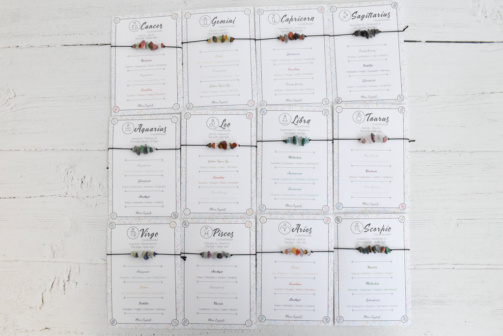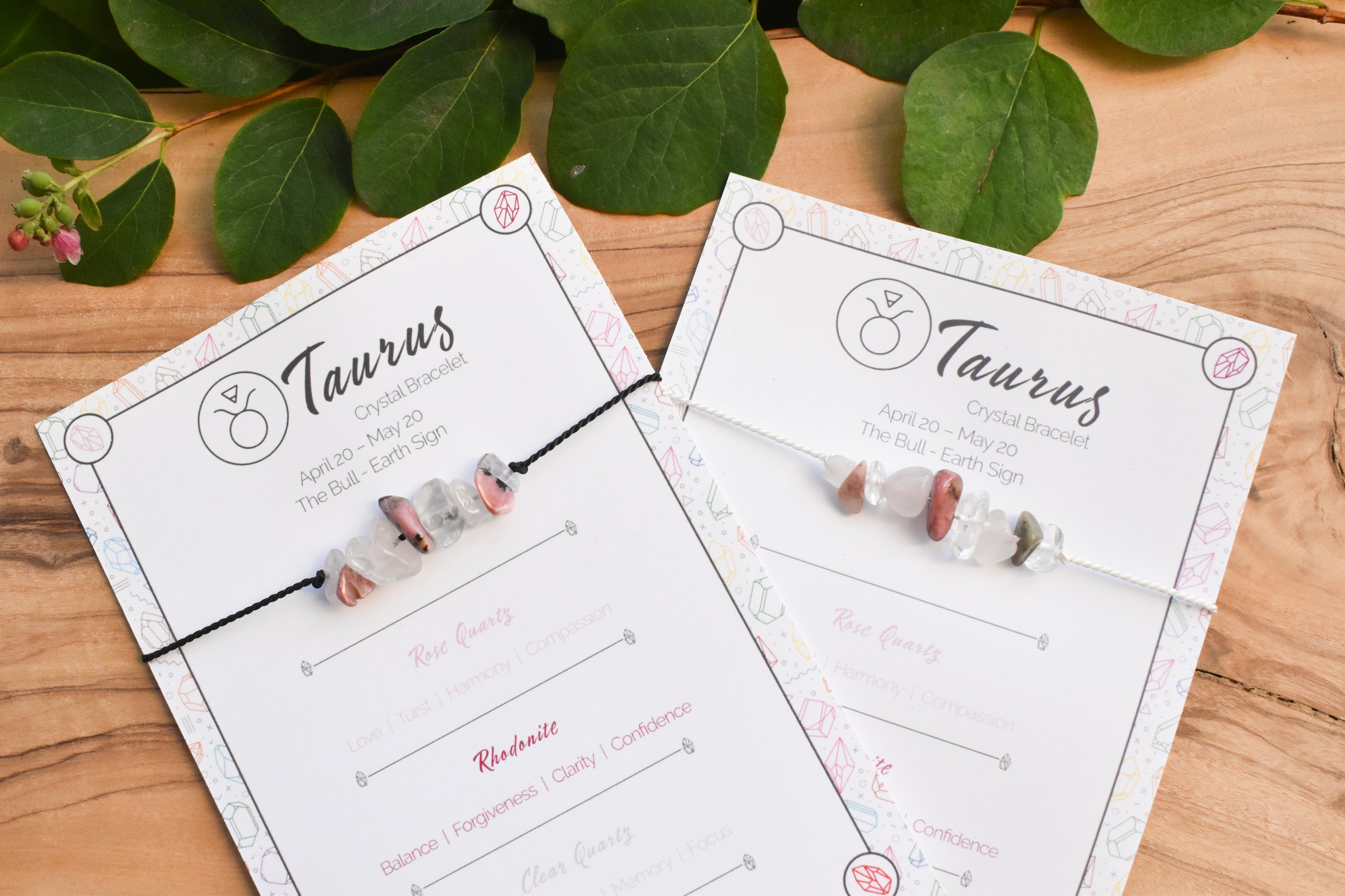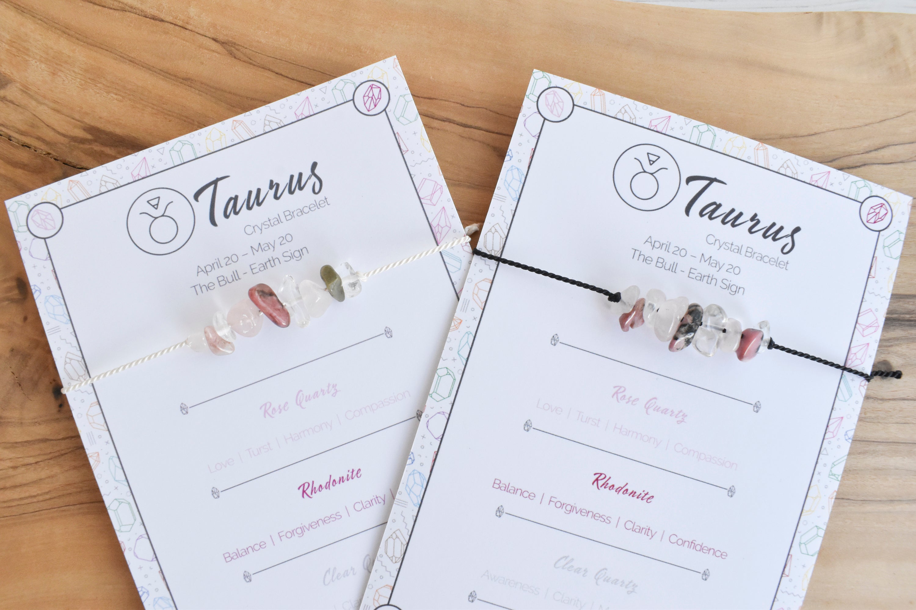 Your Taurus bracelet will be presented on a beautiful information card that gives information on the selected crystals and their healing properties.